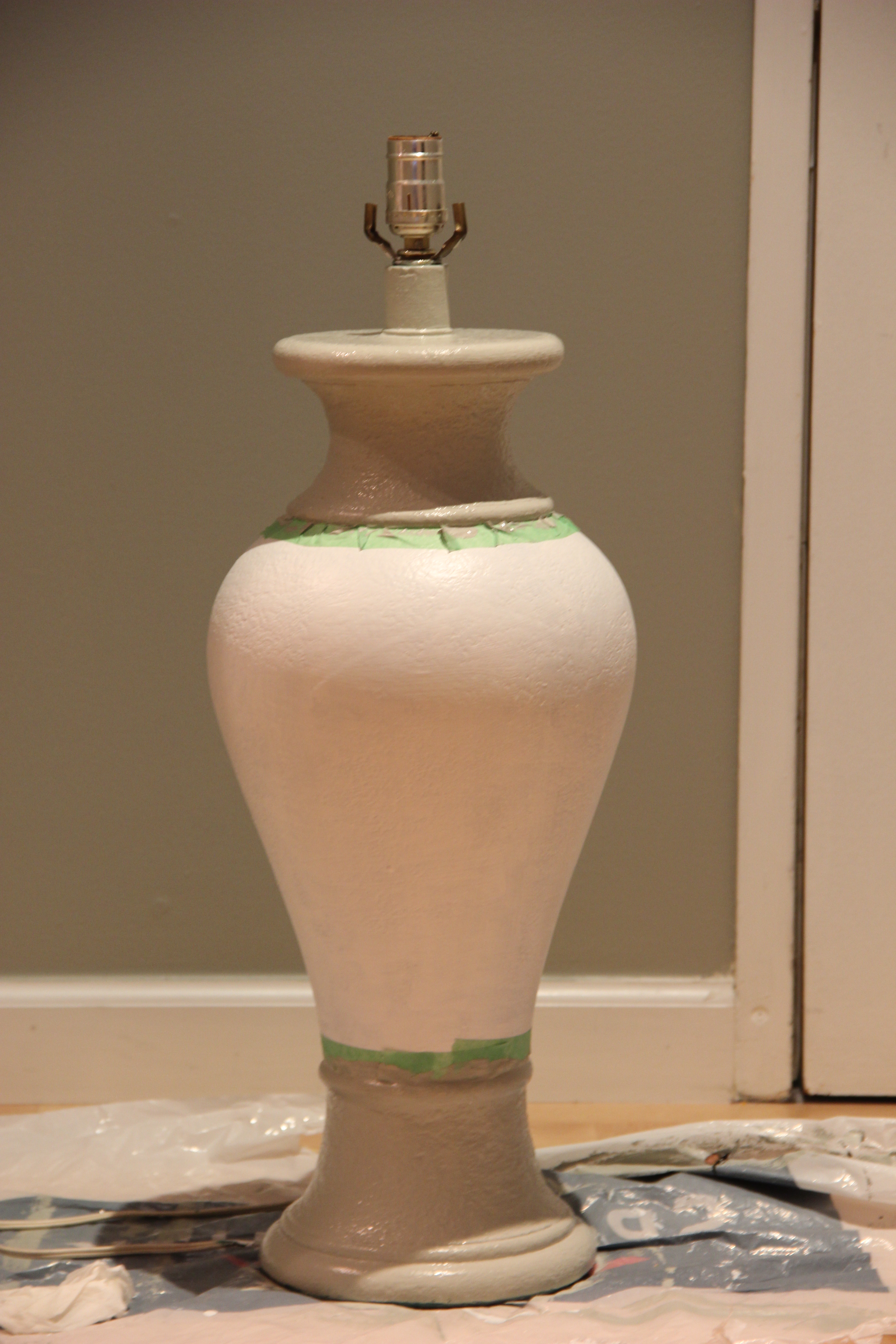 I decided to go with white and light grey for the lamp base, and it took me 20 minutes between two coats to get the painting part done.