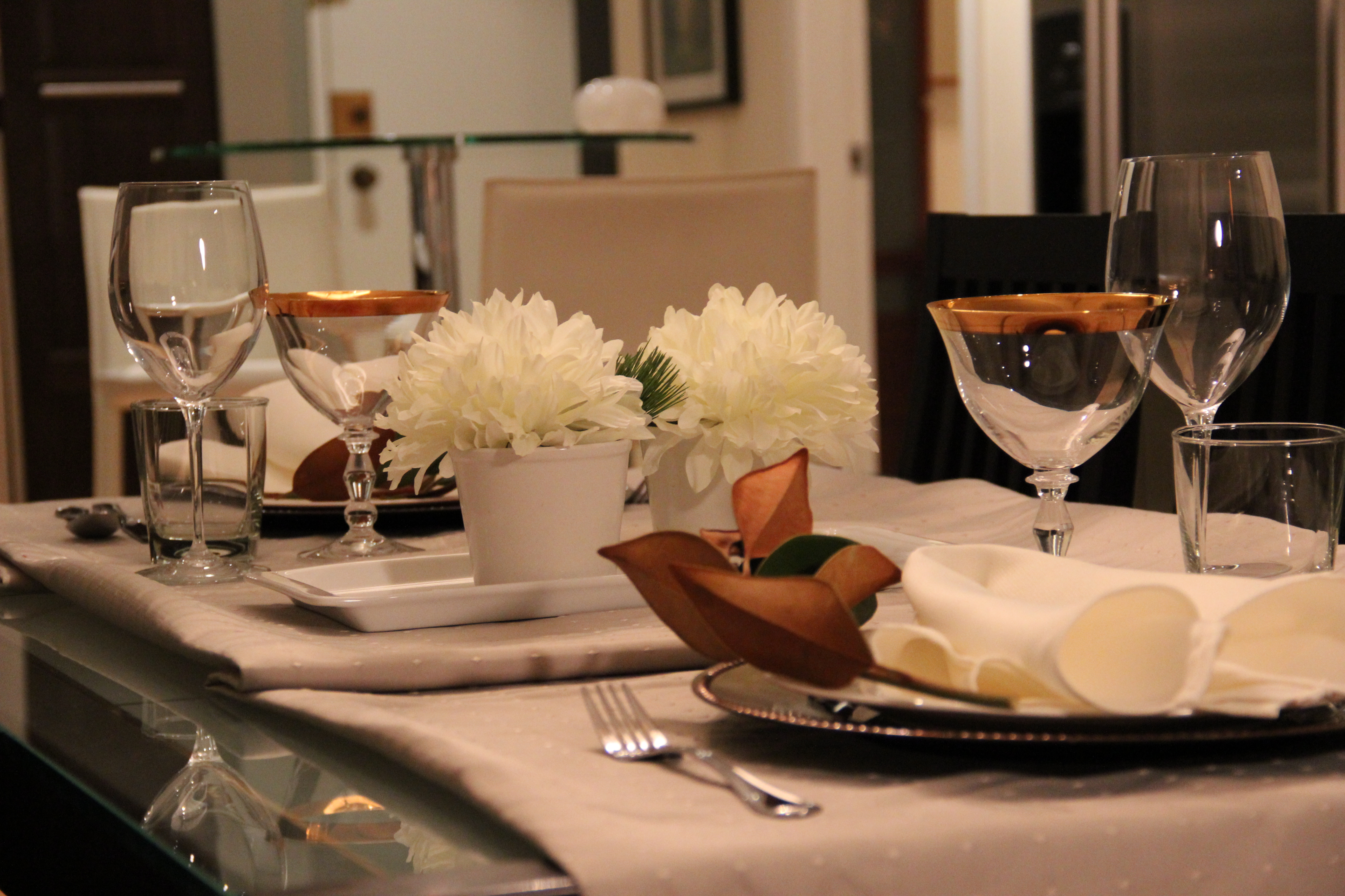 In the middle of the kitchen, right between the kitchen cabinets and the fridge I placed a tall bistro table and two leather chairs which we use as a breakfast area as well as a place to converse and have a glass of vine ( umm…maybe two) while preparing the diner.