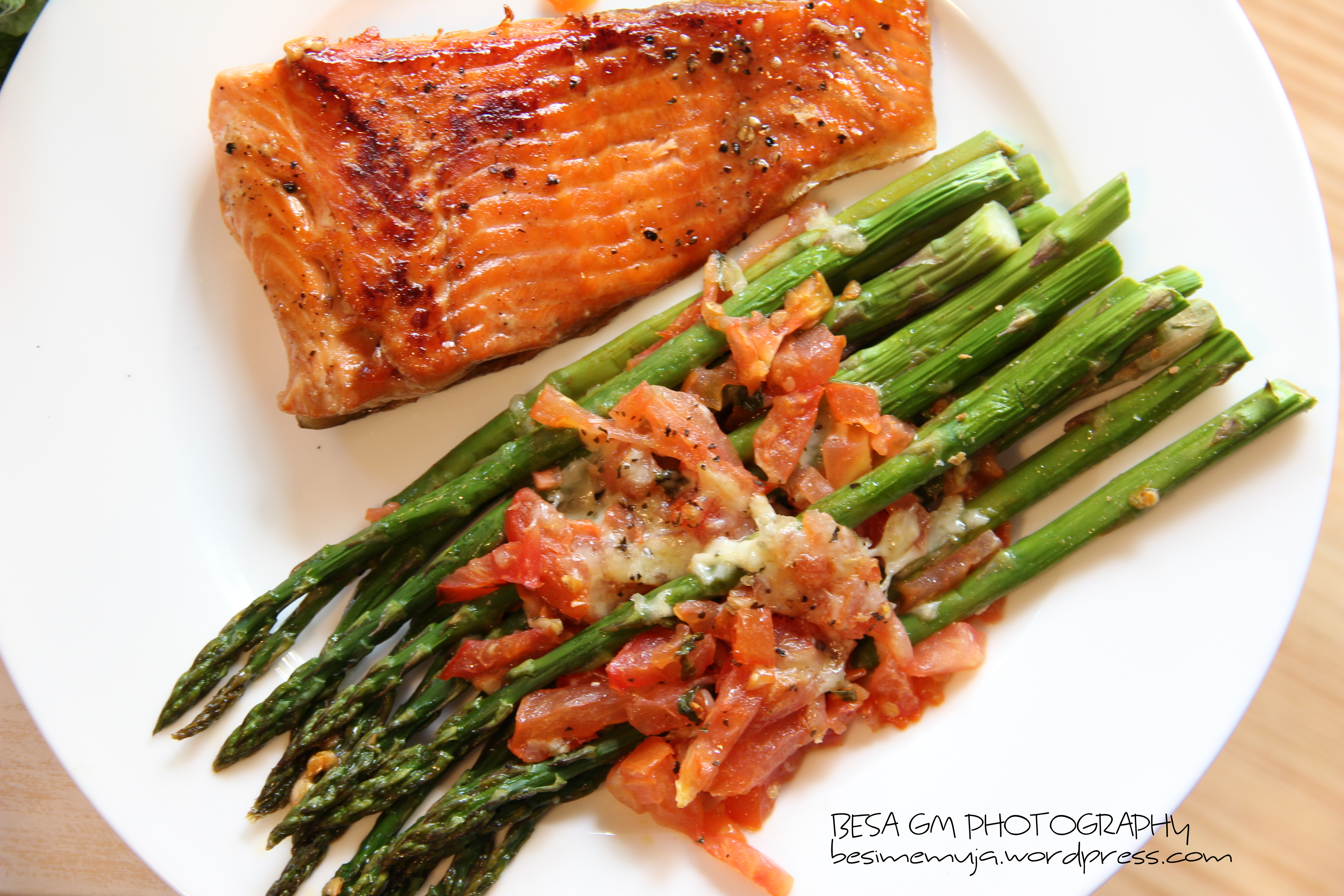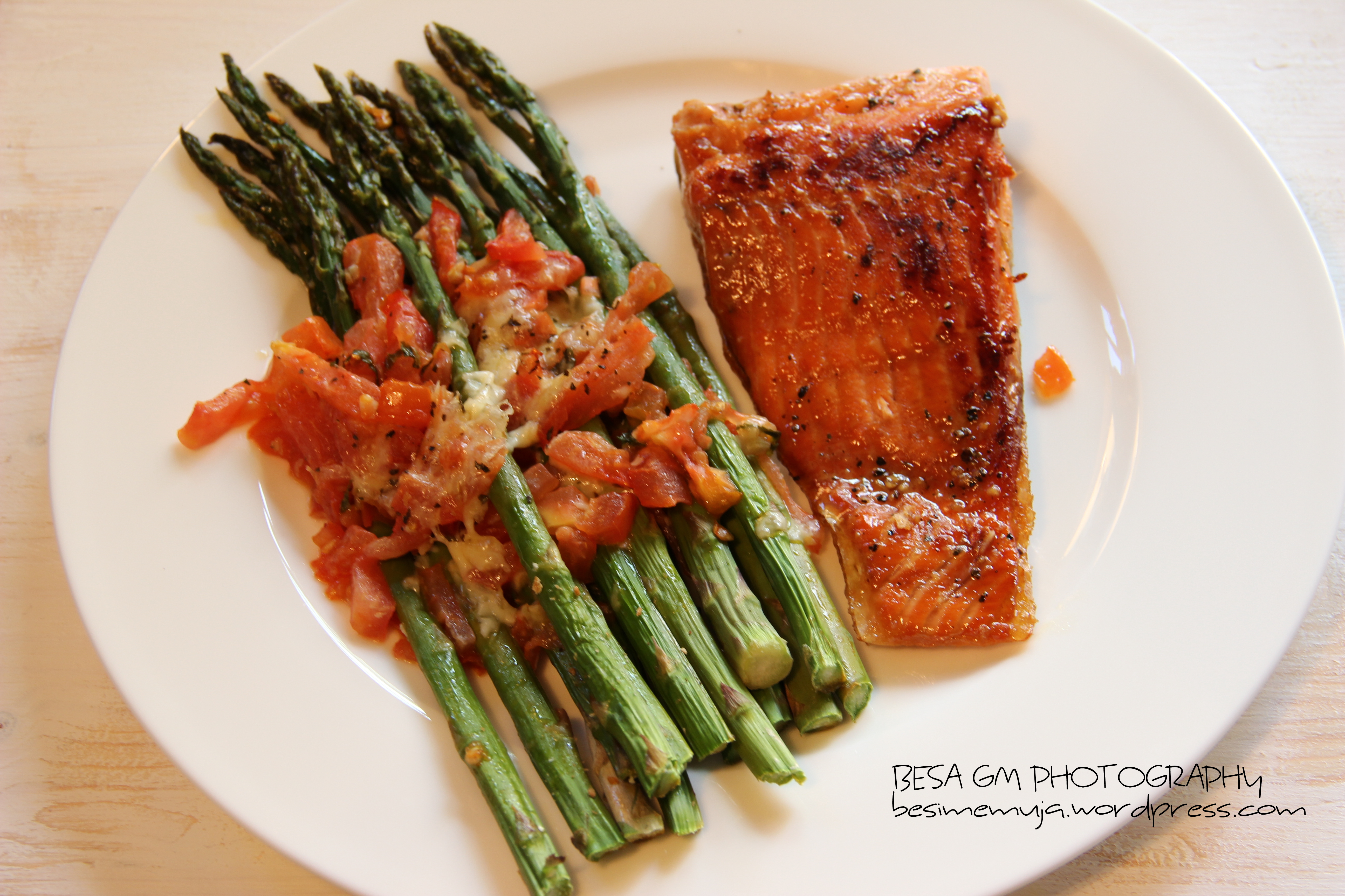 While your asparagus releases the yummy aromas from the oven you can cook fish of your choice and make your favorite salad.