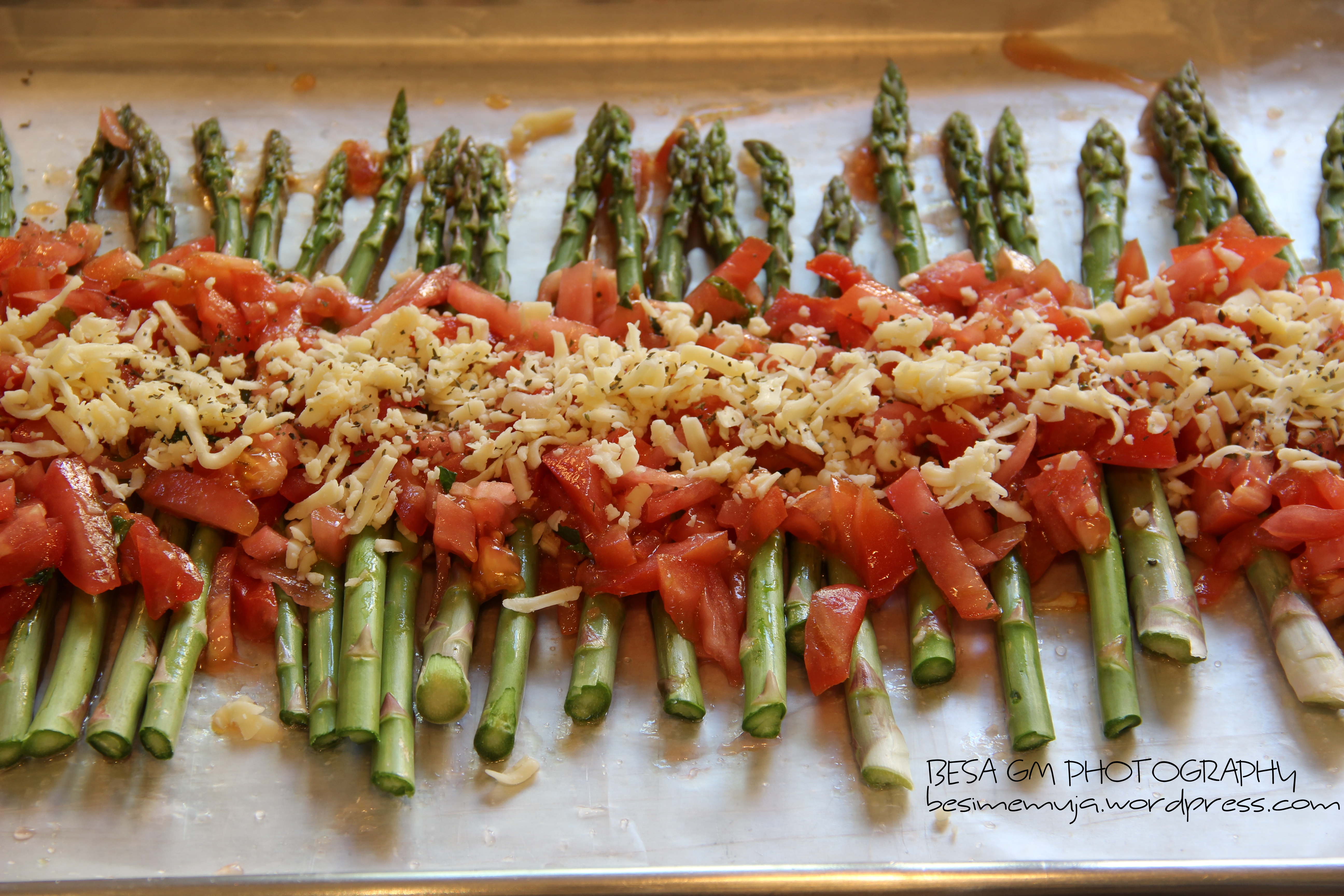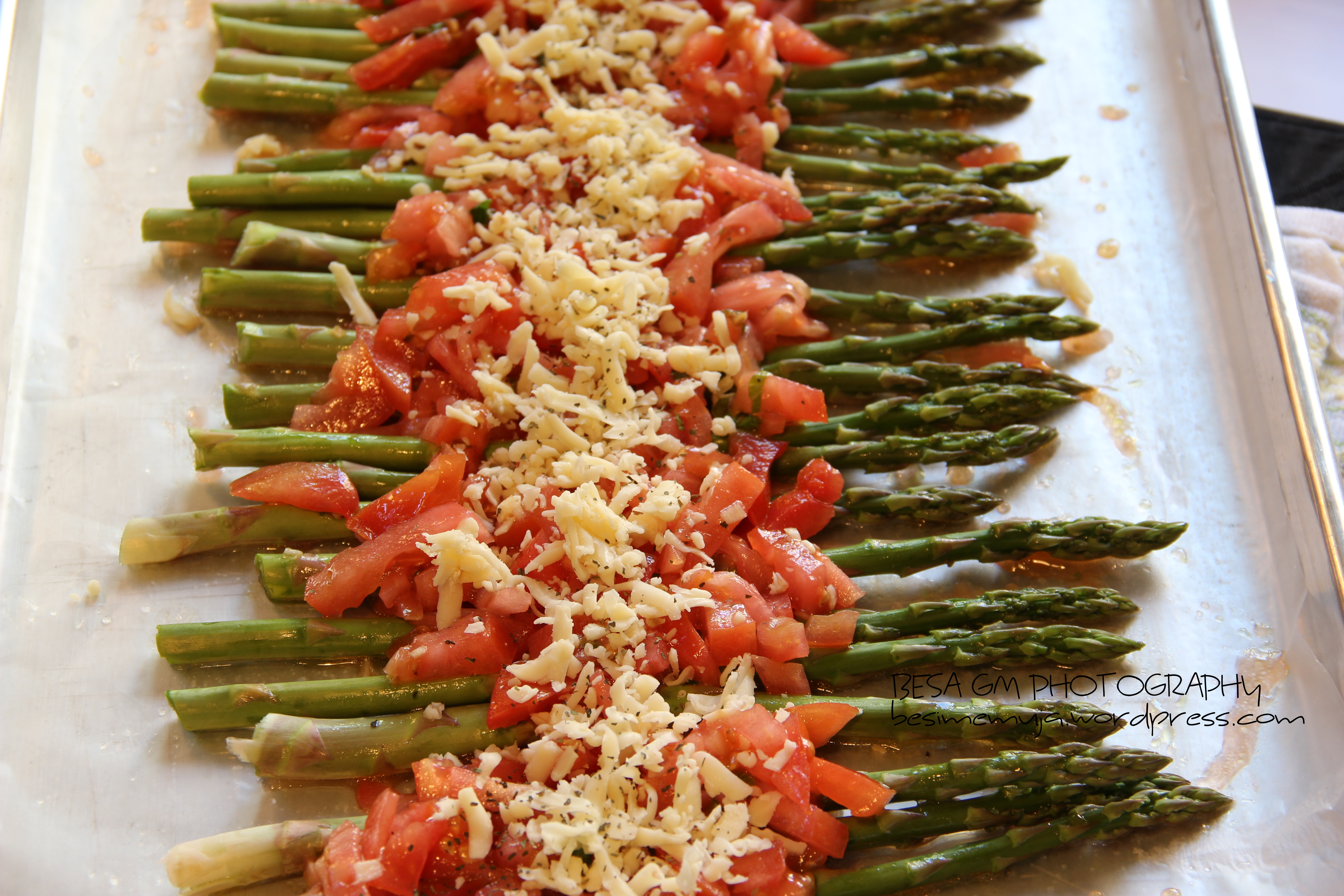 Bake for 15 minutes and then broil for 5 minutes. At this point in the higher rack of your oven you can broil few slices of bread which after taking them out of the oven you can top them with salsa from the baked asparagus. This way you will have some bruschettas aside.