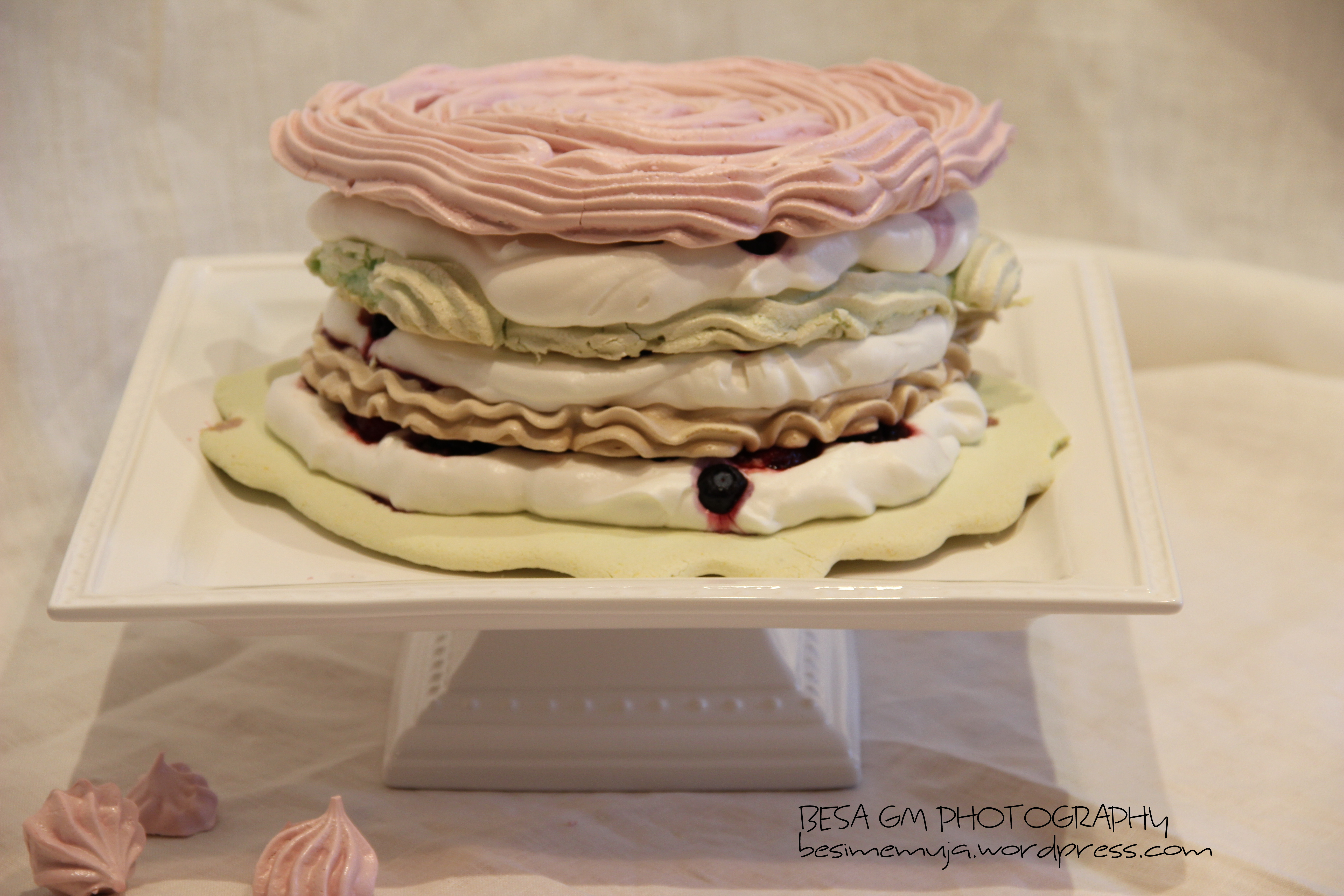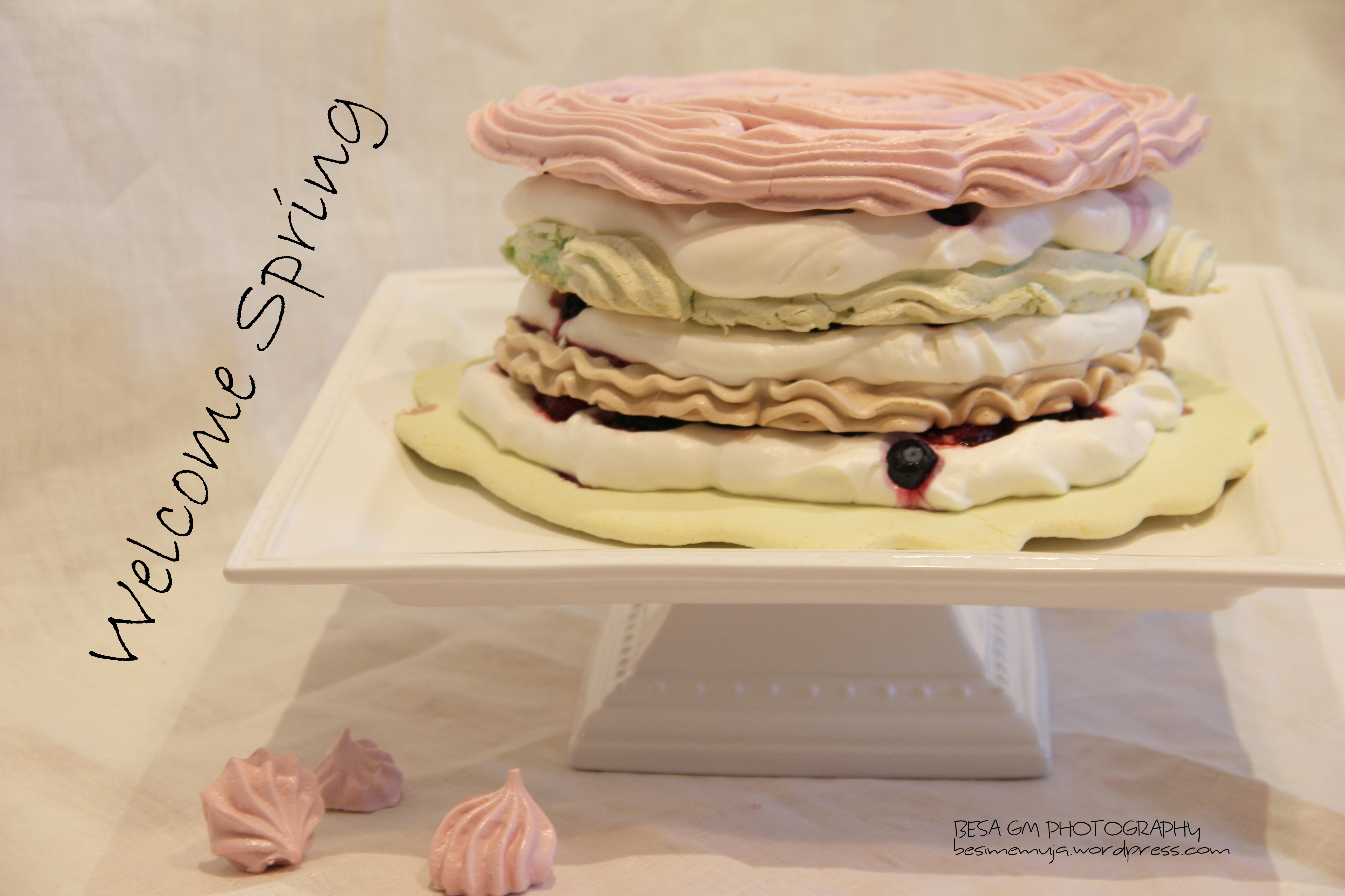 Wishing the spring a warm welcome, yesterday I made this Meringue Berry Cake. It reminds me on my childhood and beautiful, sunny and colorful springs I experienced with my siblings and the meringue cookies that my mother used to make for us at spring time. She did not have a hand mixer (and the standing ones were not even around at that time), or fancy kitchen gadgets, but with her jumbo whisk and few other modest utensils she made her cookies and cakes stand out and “be the talk of the neighborhood”. phot 7