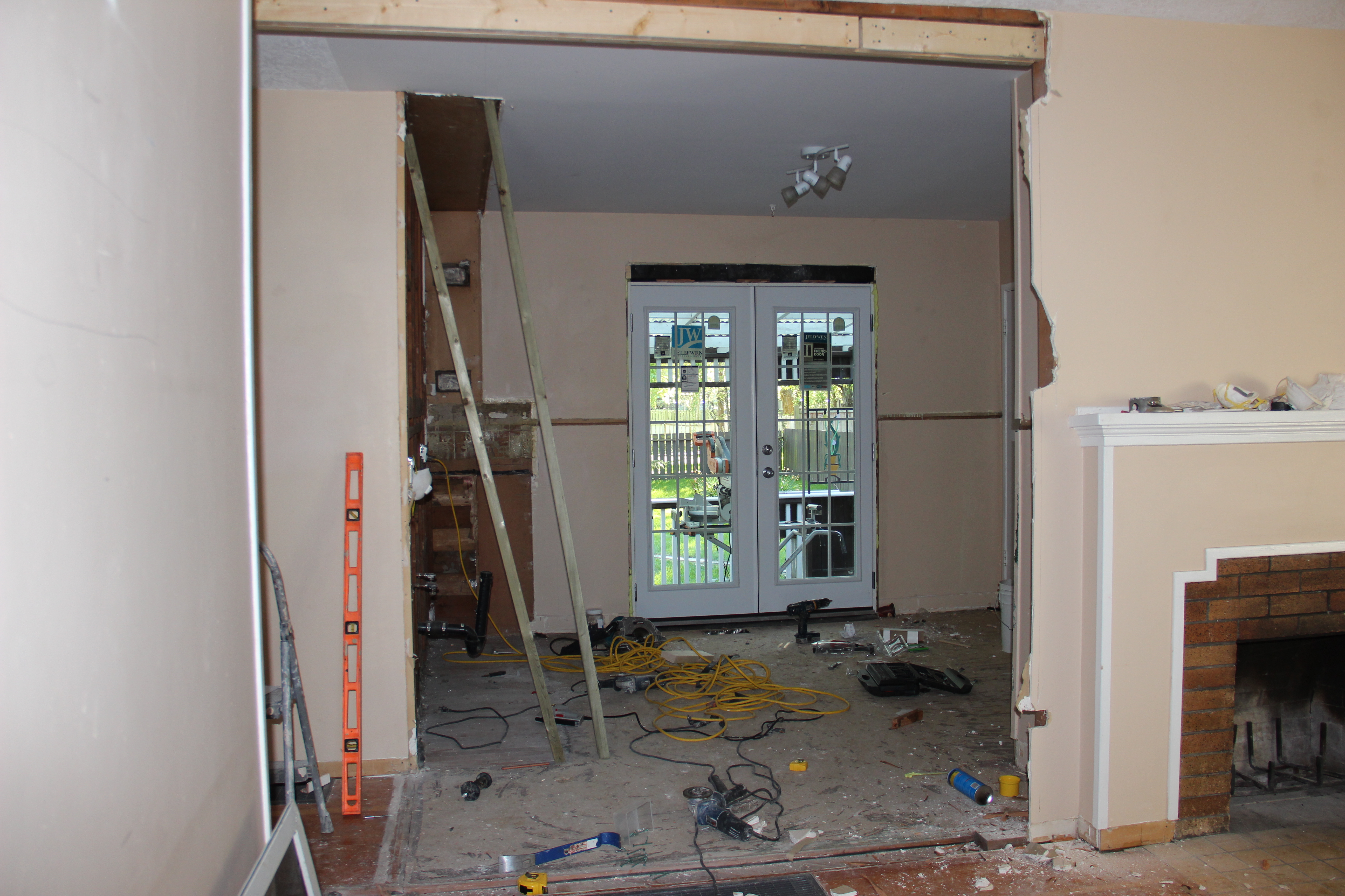 We are also replacing everything in the bathroom, so this is the last shot from the old bathroom and every item in this picture is now in the landfill including the drywall throughout, as well as the flooring. The bathroom walls are being redone using a moisture resistant boards and we are doing new plumbing too.