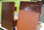 I did not do any prior sanding, as I was not sure whether the veneer could be sanded. However, prior to starting with the paint, I thoroughly cleaned the surface with a dump cloth so they were completely free of dust.