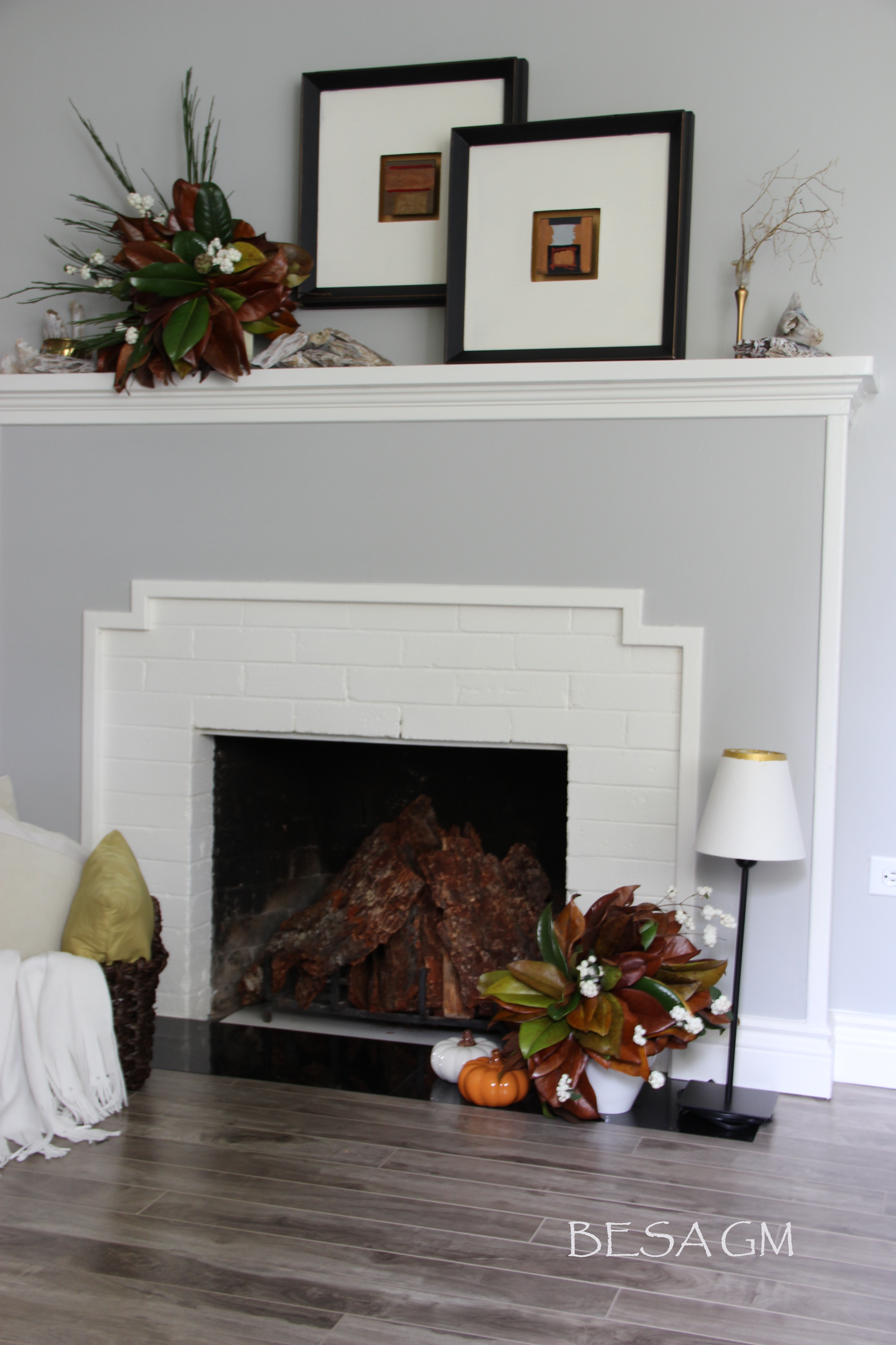 I think that my fall mantel looks pretty and elegant. What do you think? I would love to hear from you about how you have incorporated magnolia leaves into your home decor.