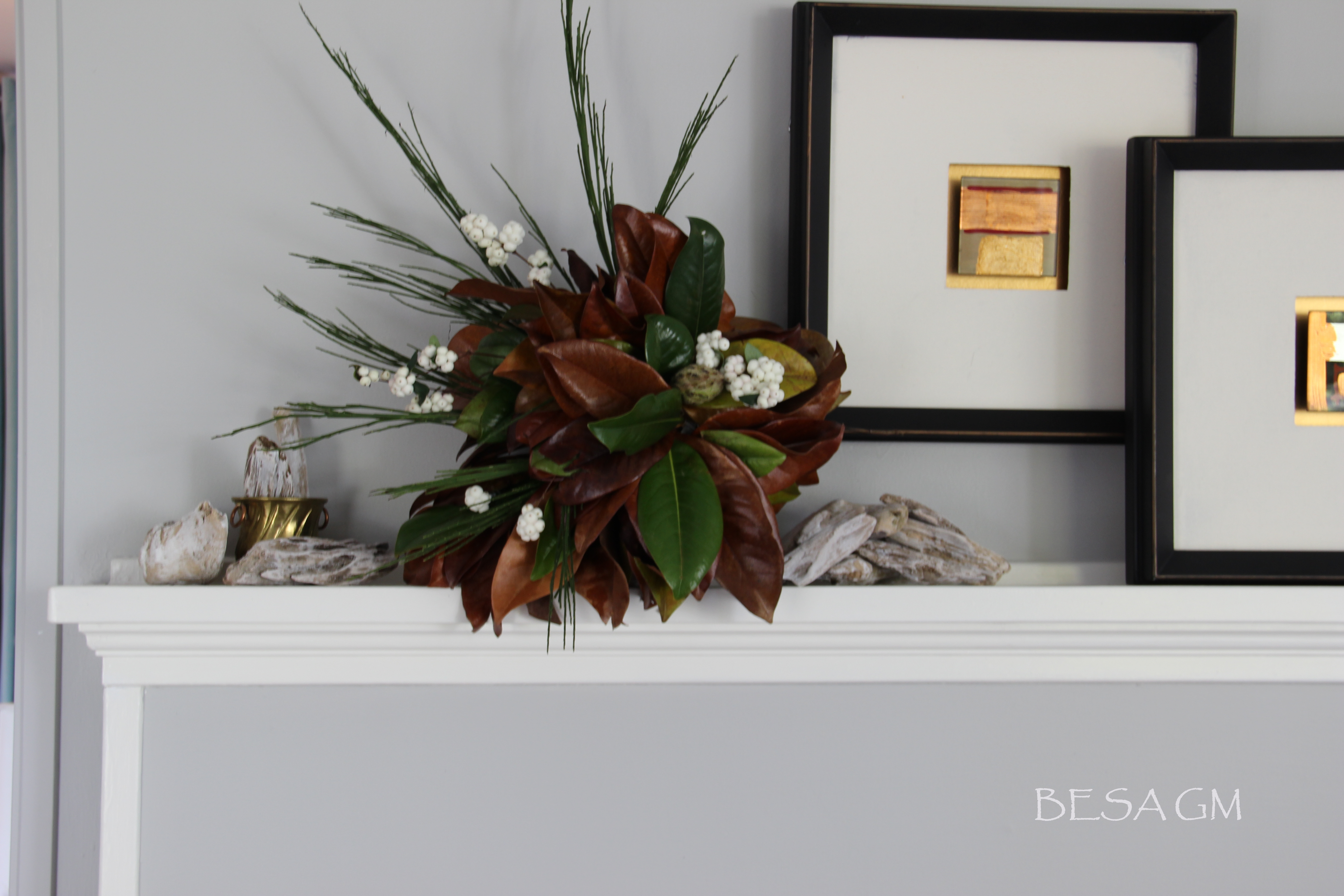Magnolia Leaf Arrangement For My Fall Mantel Decor