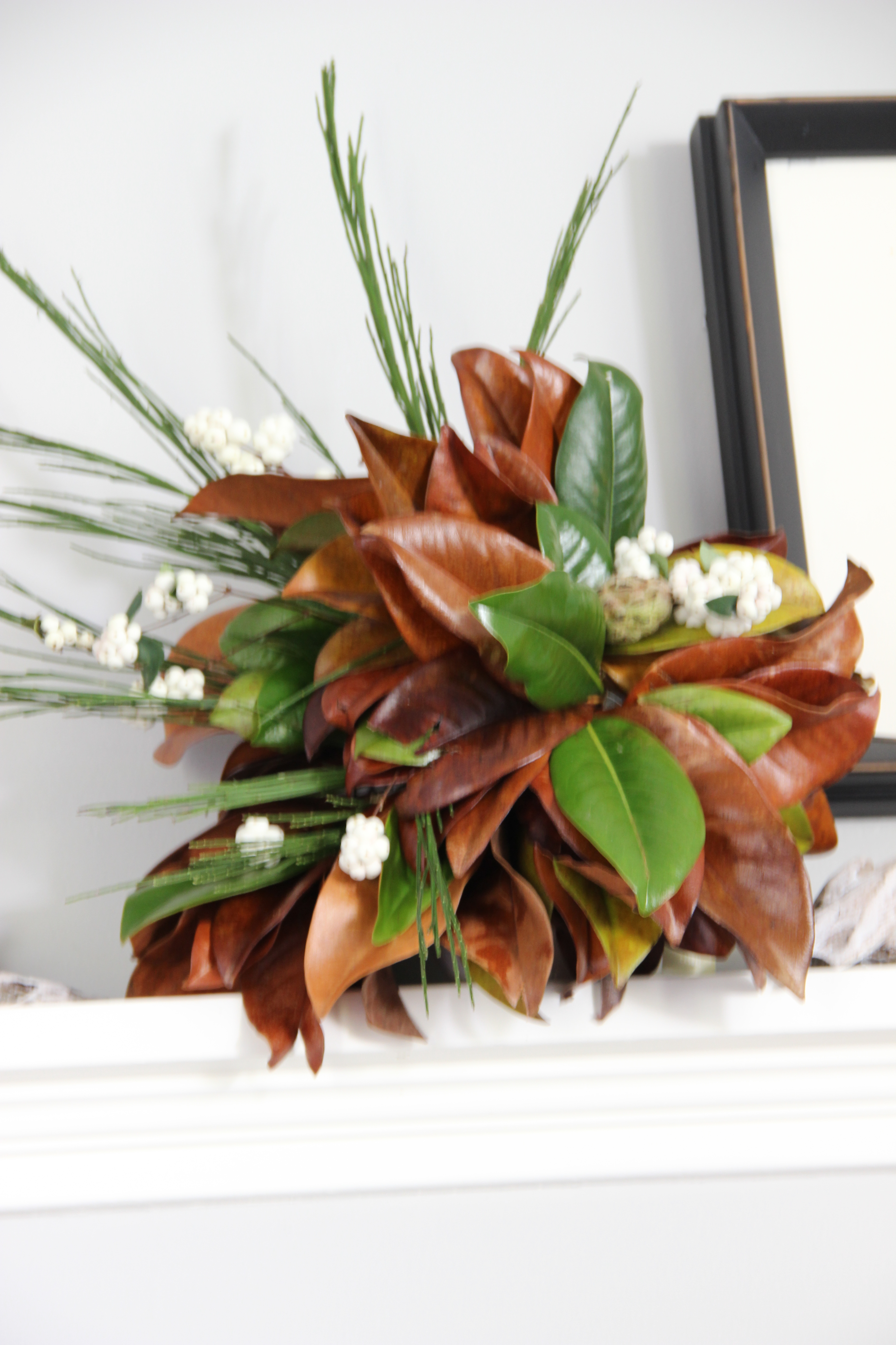 Magnolia Leaf Arrangement For My Fall Mantel Decor