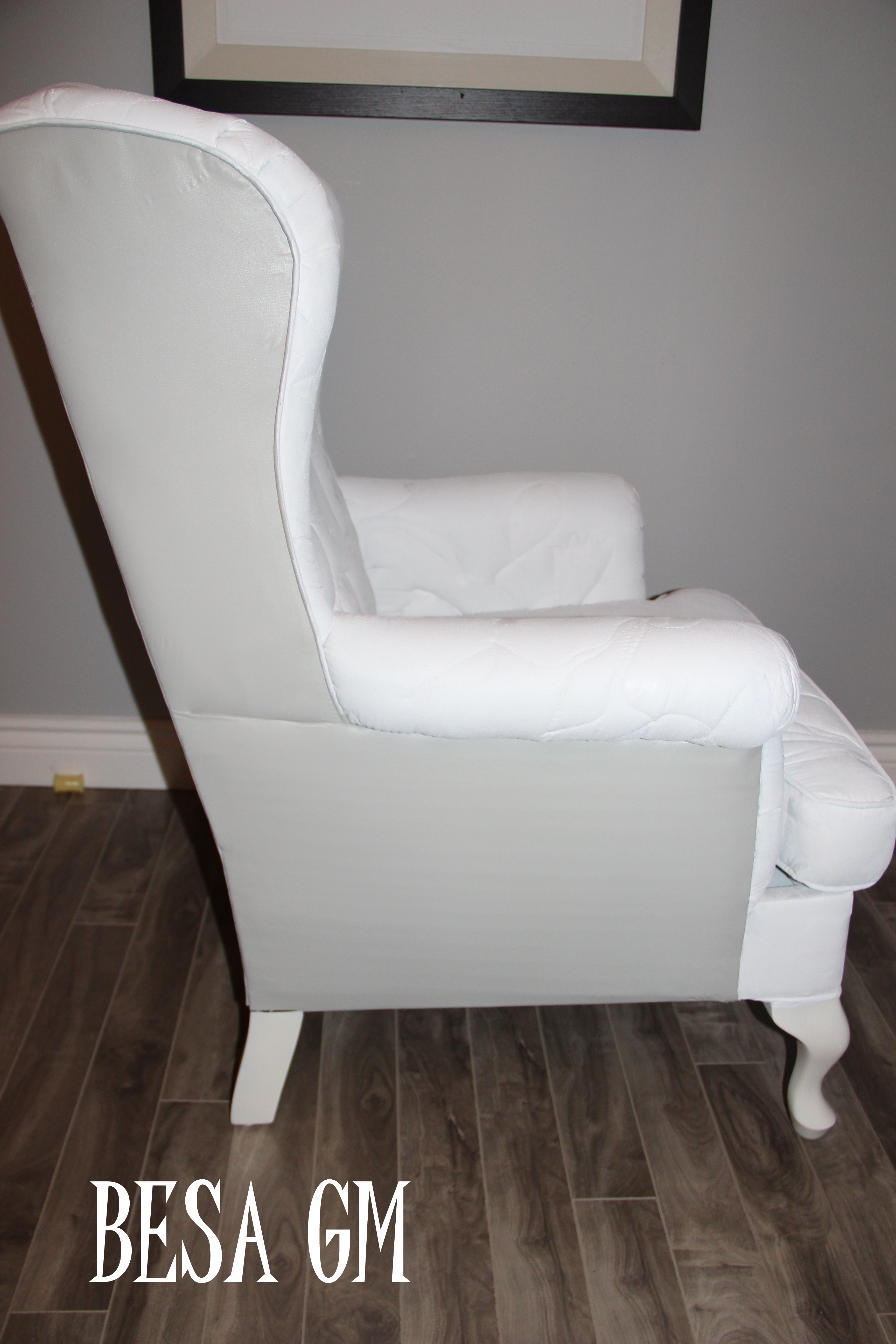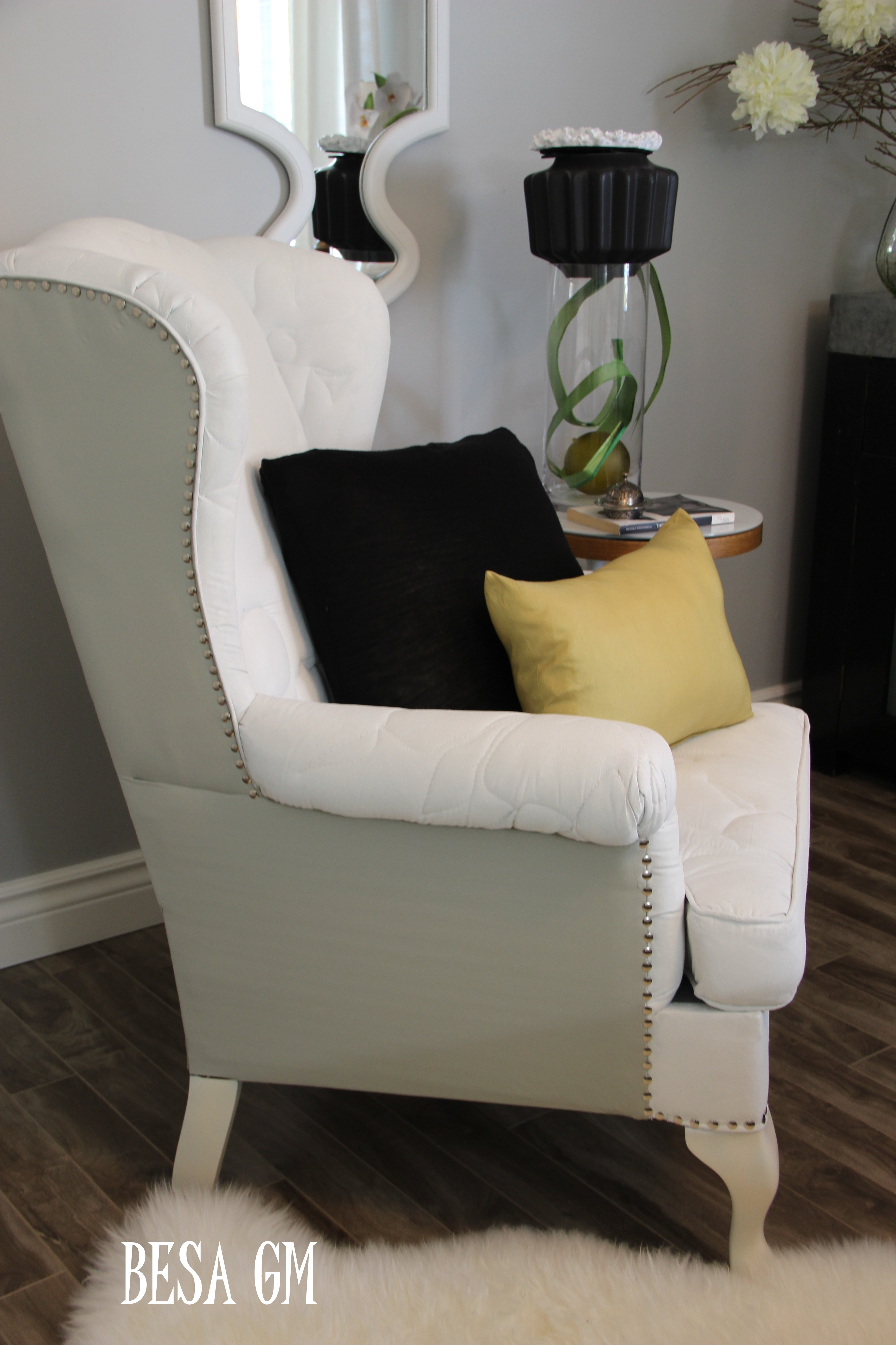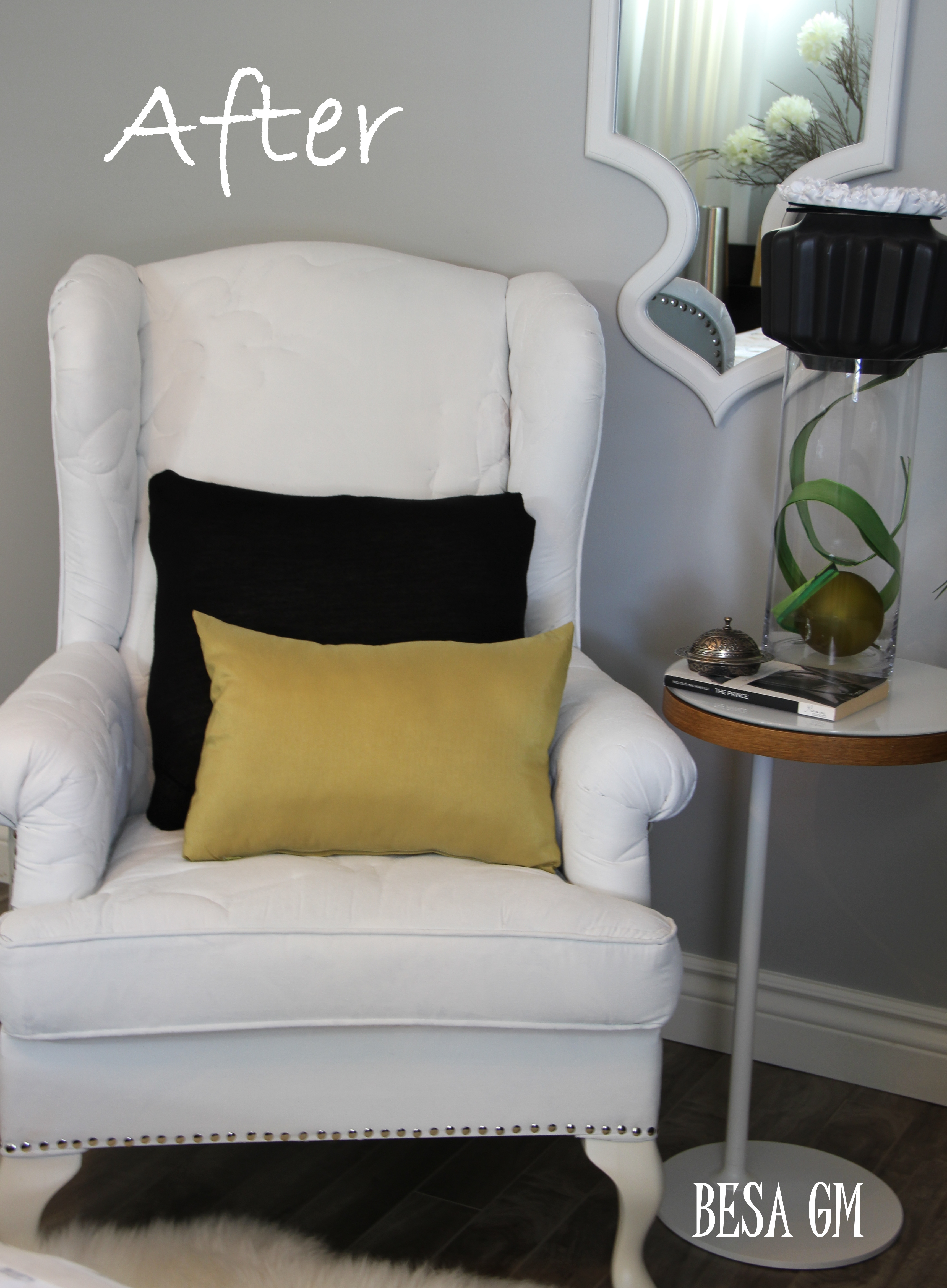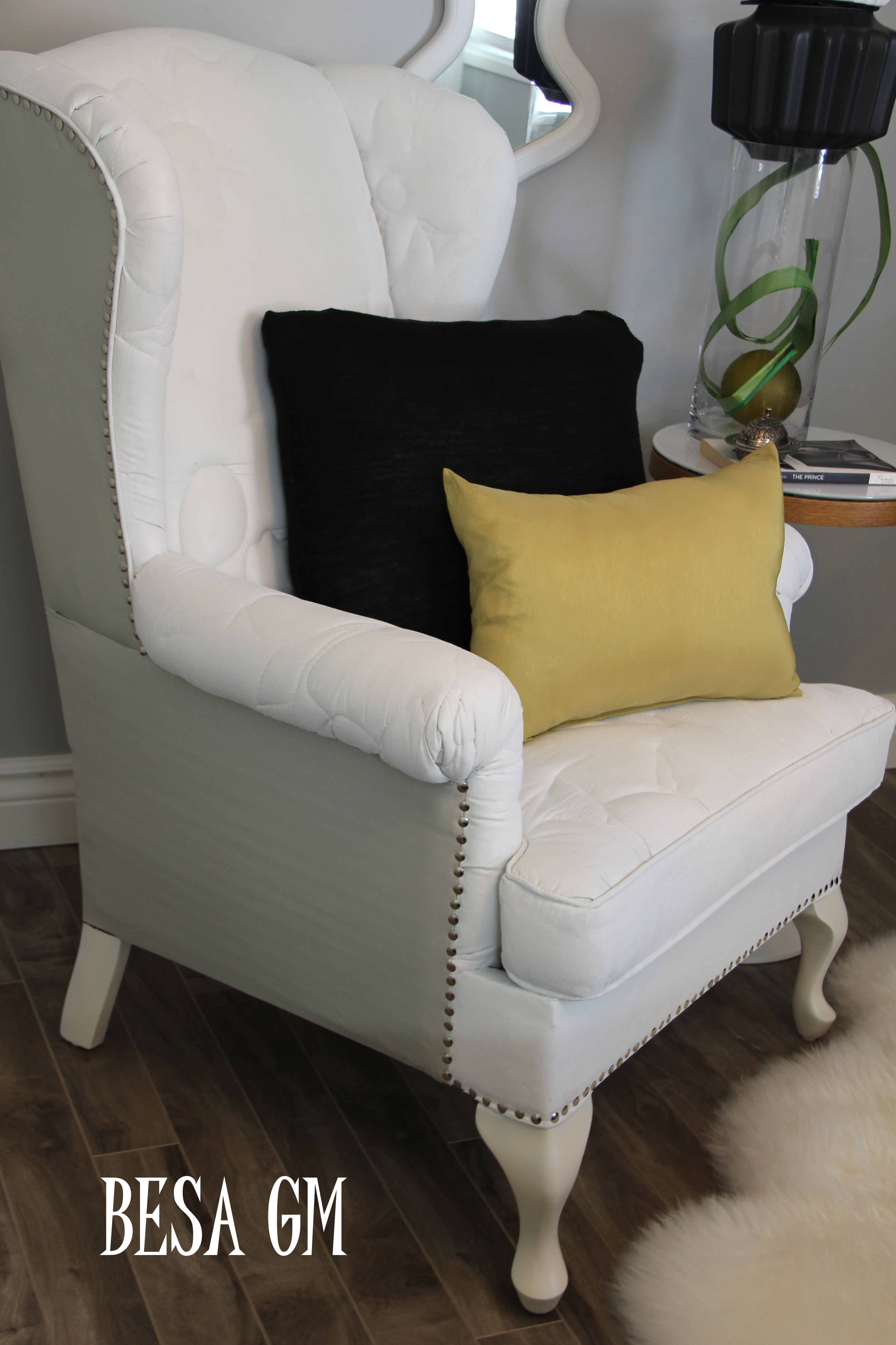 I am happy that my challenge paid of so the ugly wingback chair turned into a beautiful white swan.