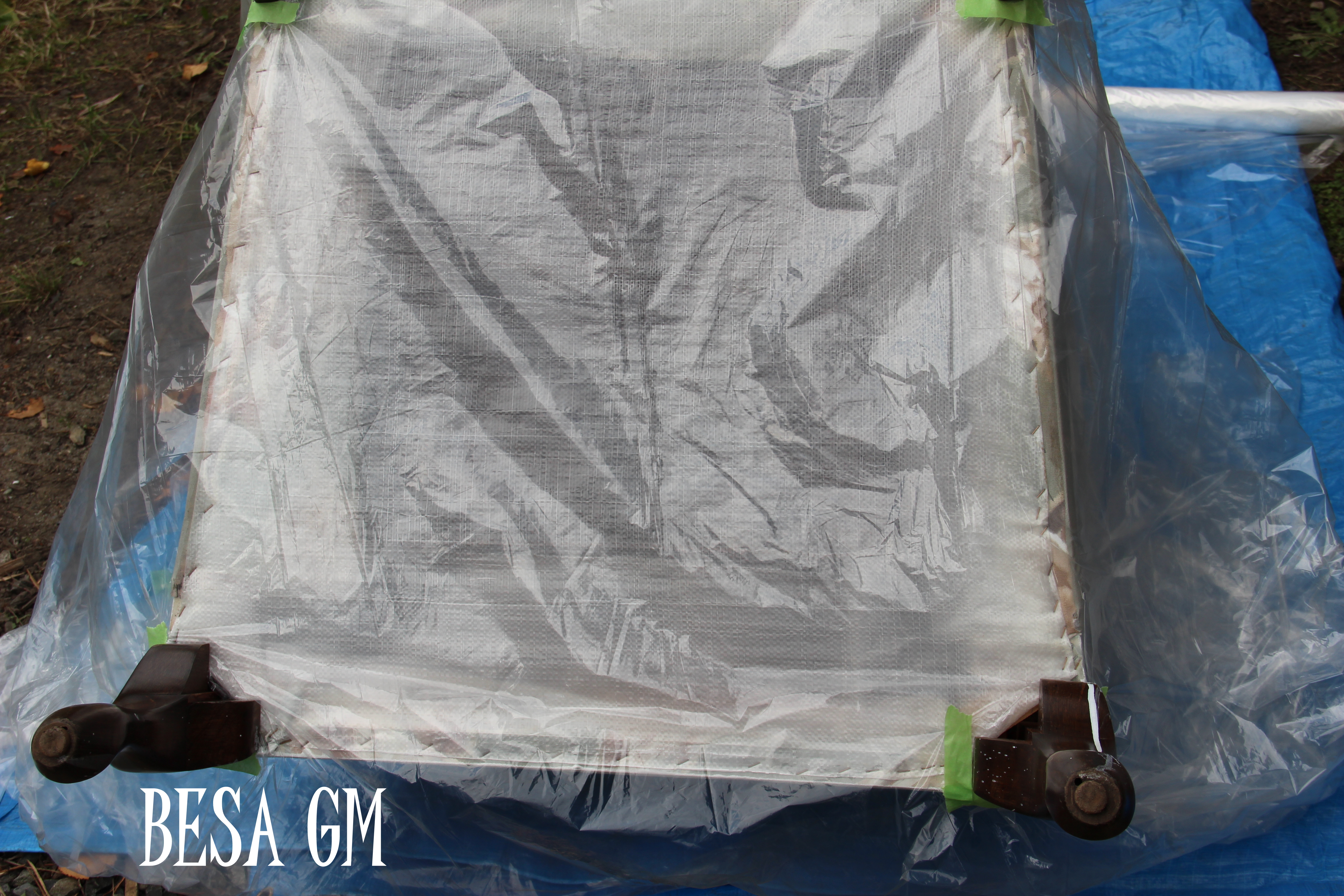 After applying all these coats of paint, the fabric turns into a vinyl/leather like material, so if you like leather you will be okay with it. My husband tried the chair, and his comment was funny: “it feels like you are sitting on heavy starched linens”. It made me laugh to tears.
