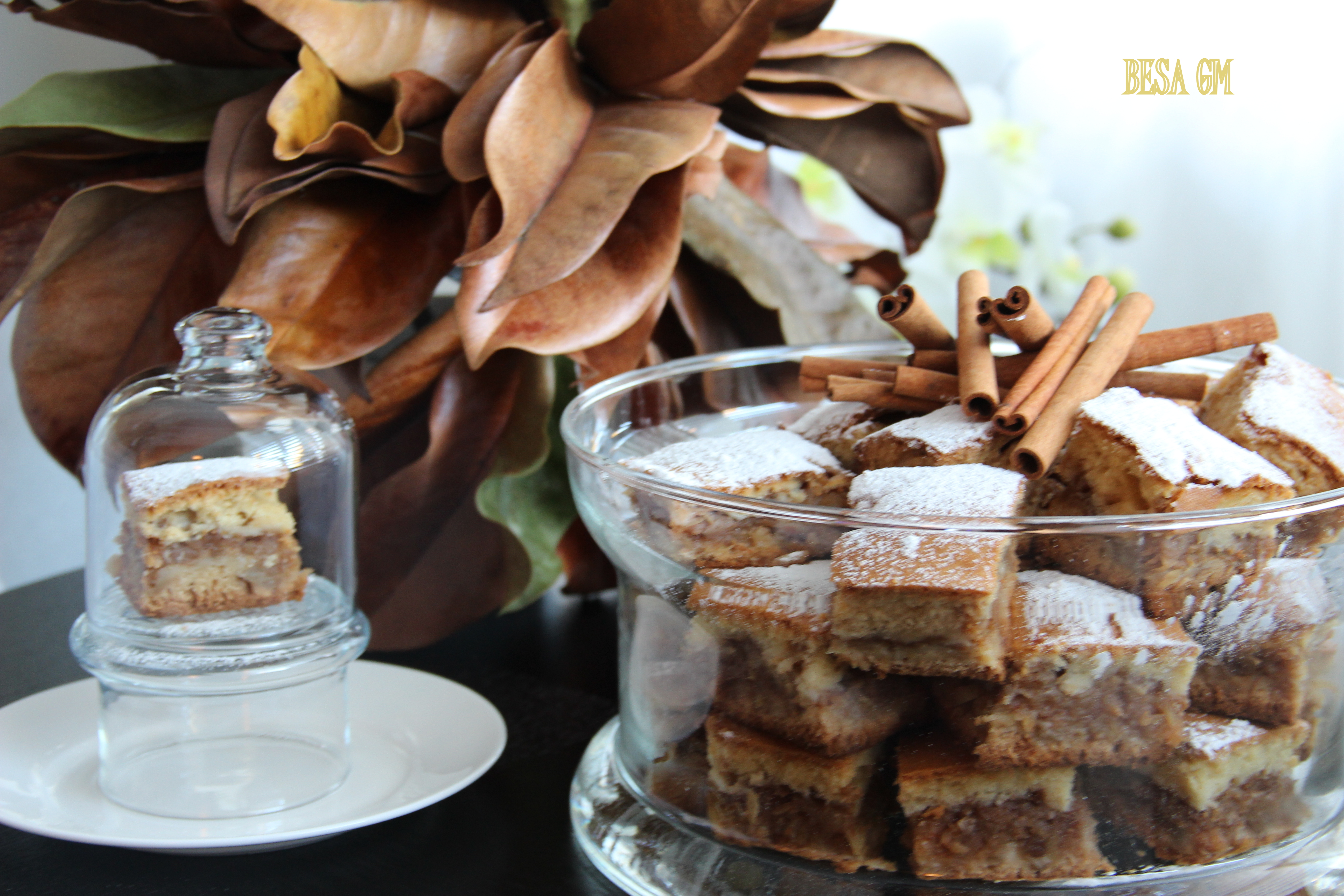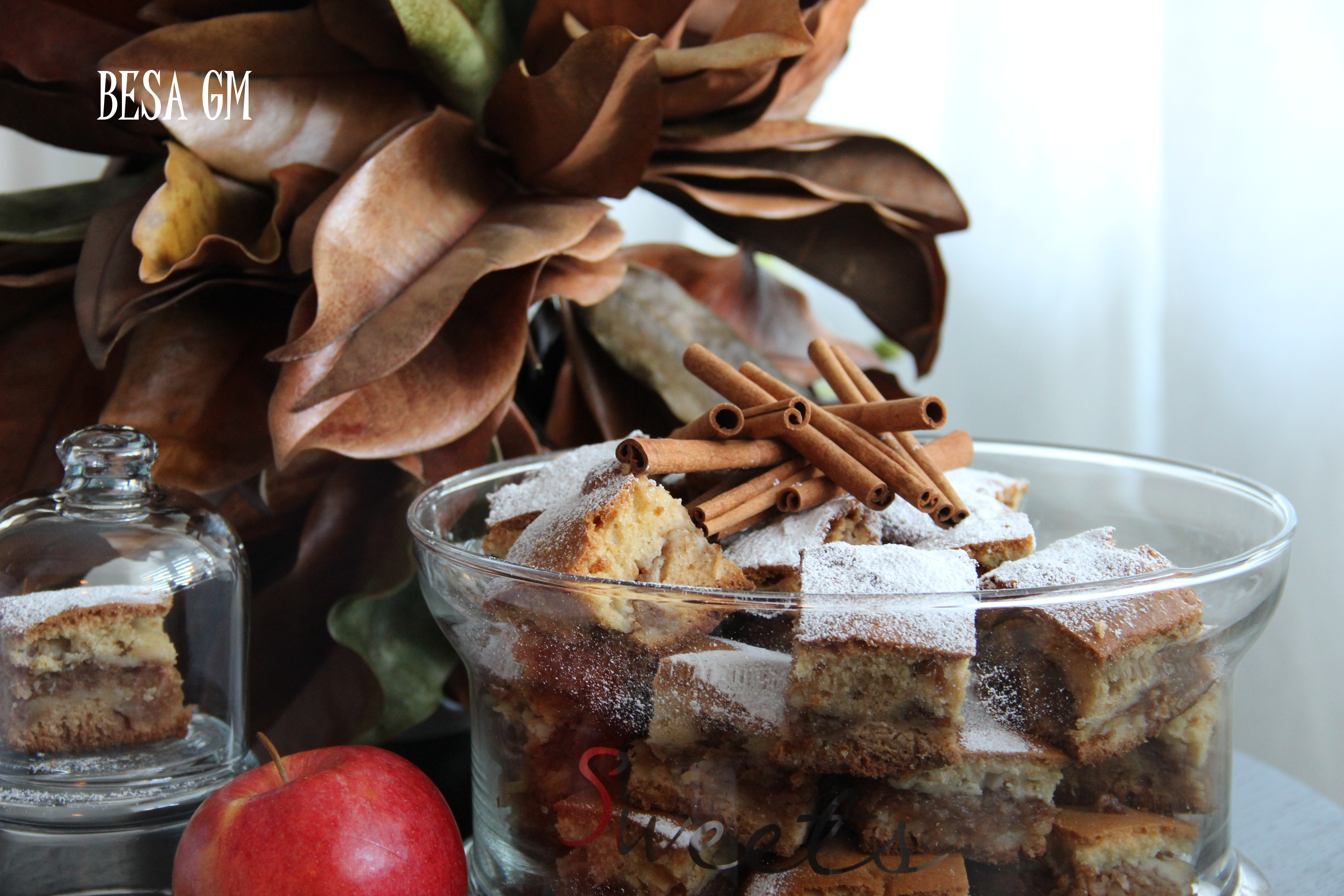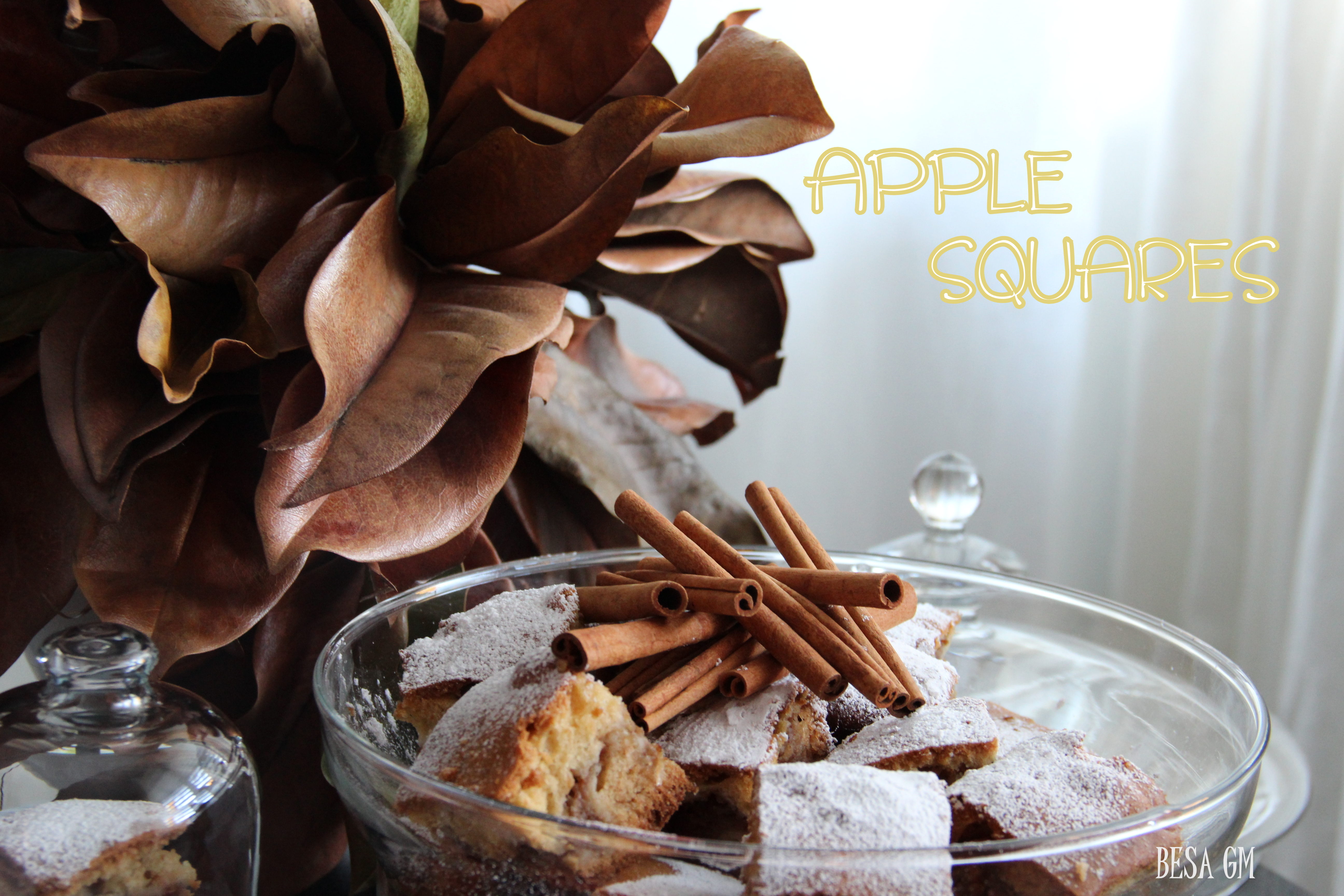 Growing up apples squares made by my mom were my fall favorite. I was not an apple fan back then, but if apples were part of any cake or pie I could eat them with pleasure. However, the apple cake or pie had to have a lot of cinnamon for me to enjoy it fully, so my mom used to add an extra “shot” of cinnamon to suit my taste.