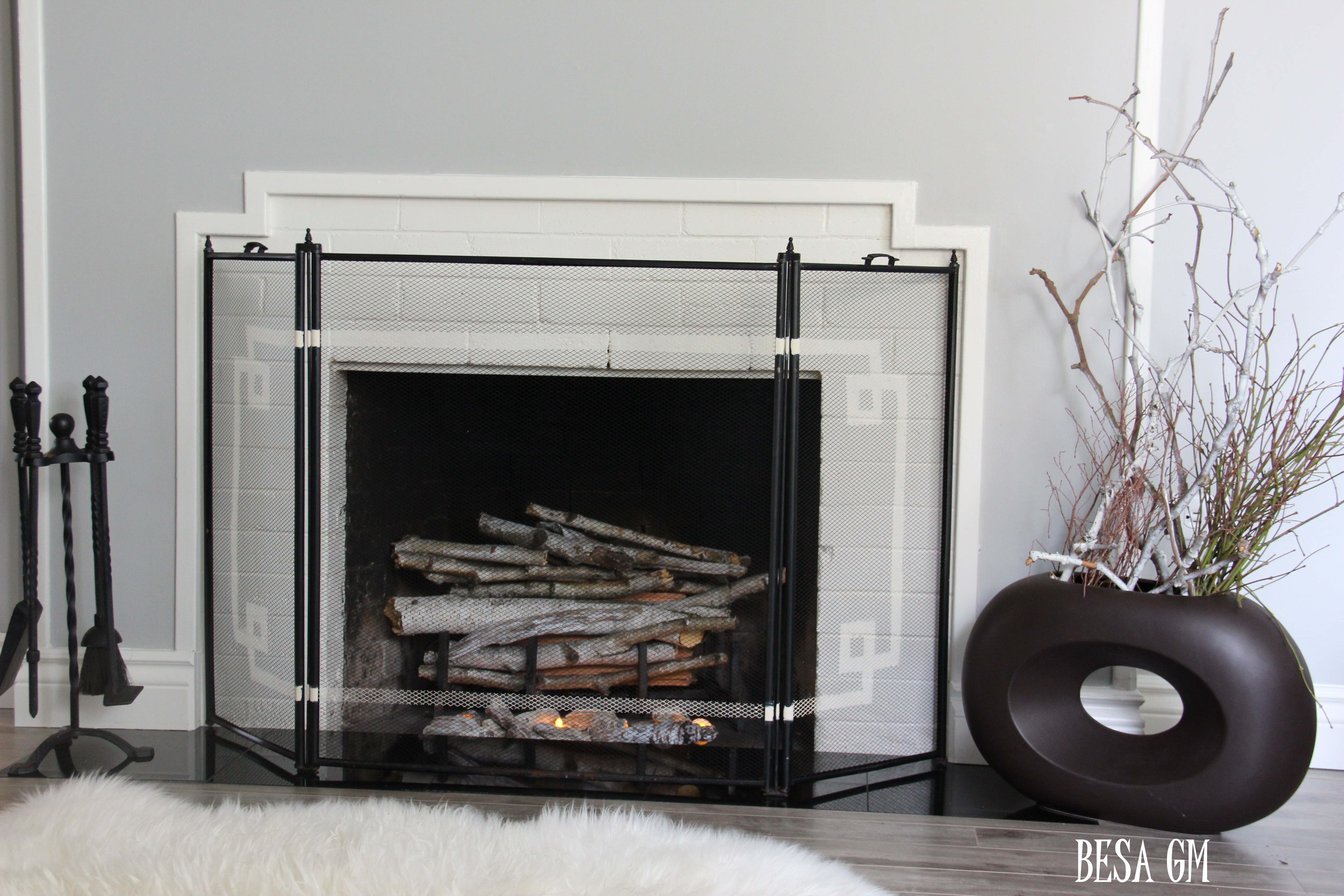 Now I am fully enjoying the fireplace as well as the coziness of the fire coming through the screen which underwent a quick and successful makeover.