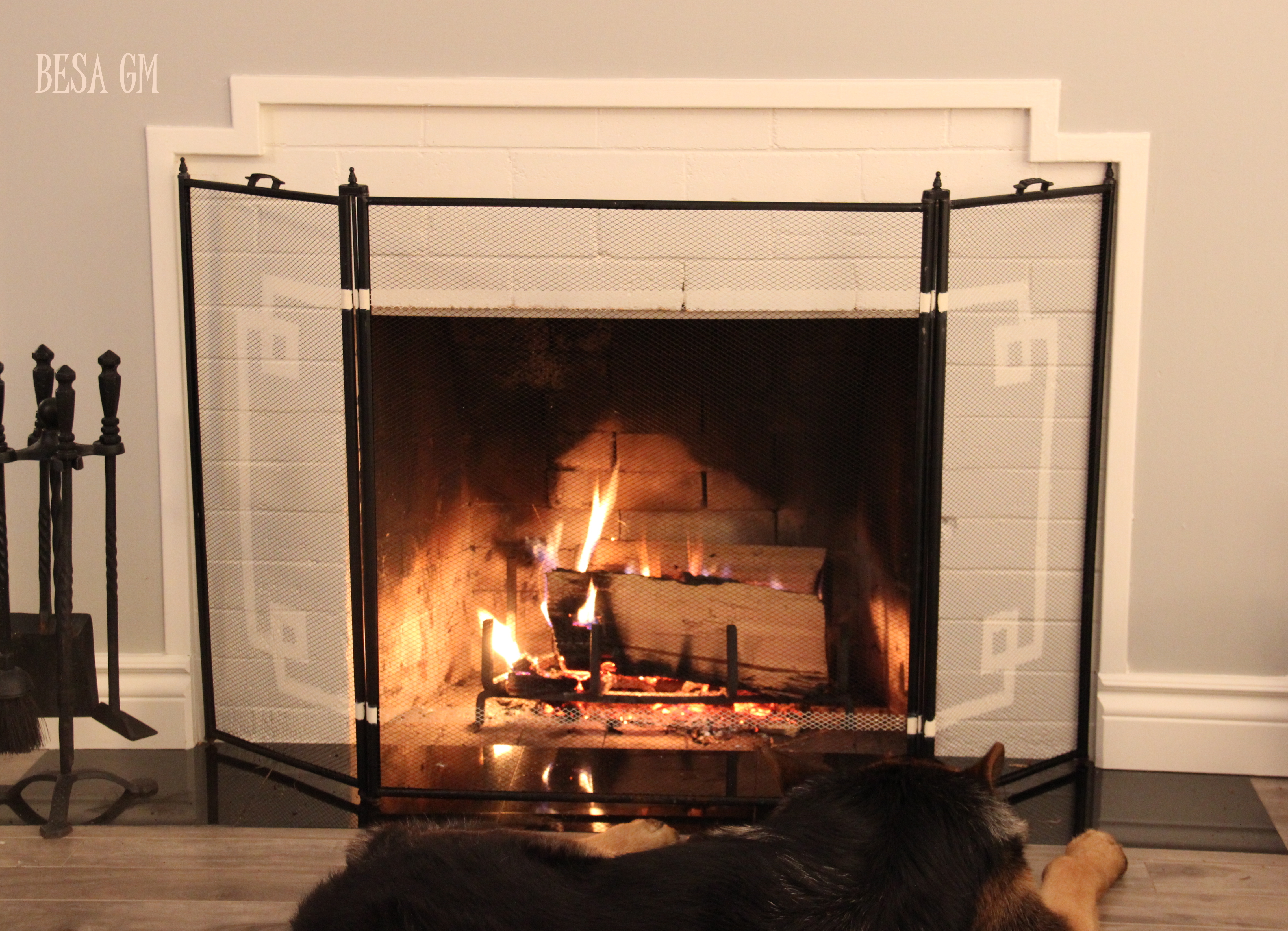 As much as I was enjoying the coziness of the fire, I was pretty much disliking the dated and unattractive fireplace screen that we have.