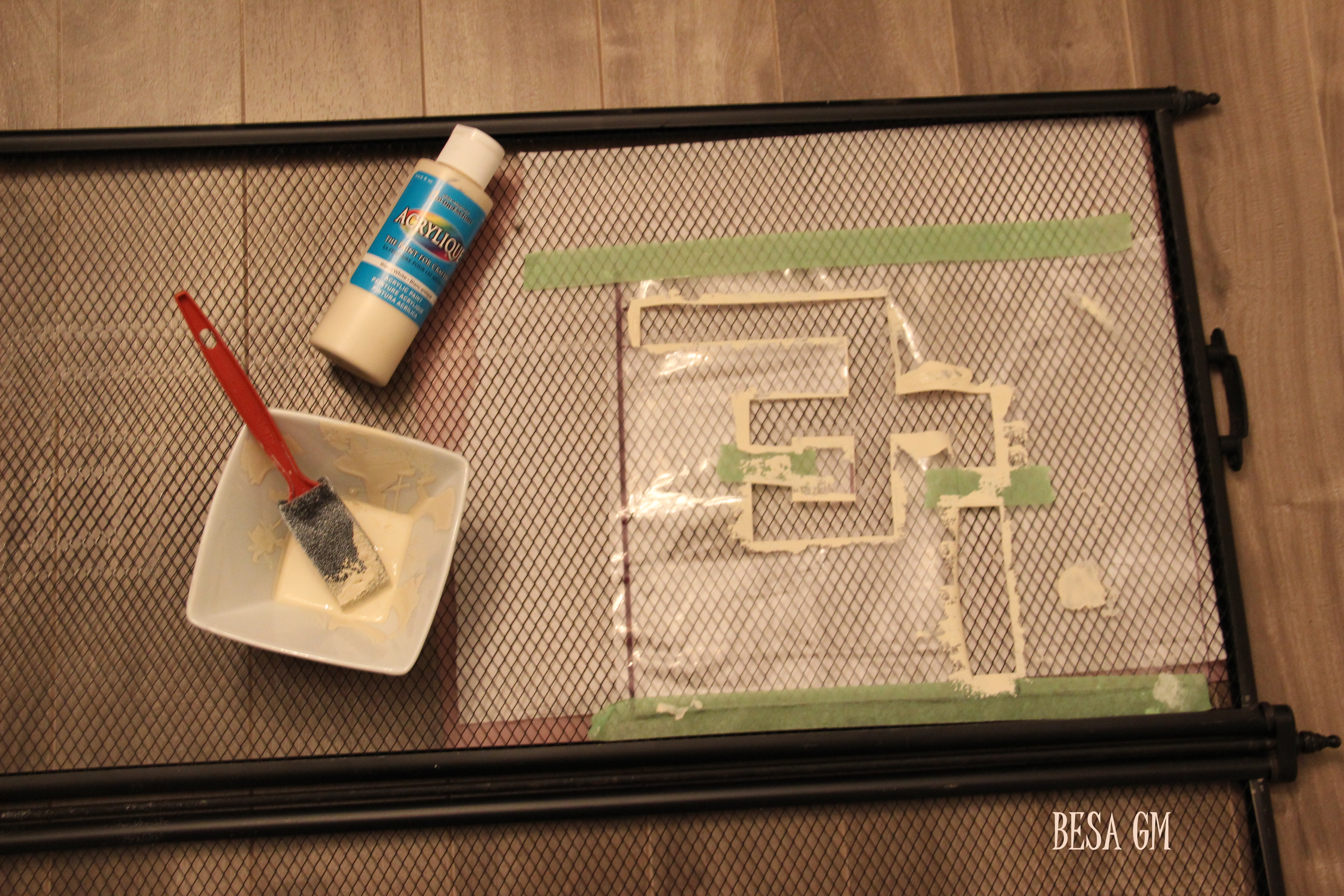 Previously, using the mentioned template I created a stencil. I used this stencil to apply the white paint onto the screen.