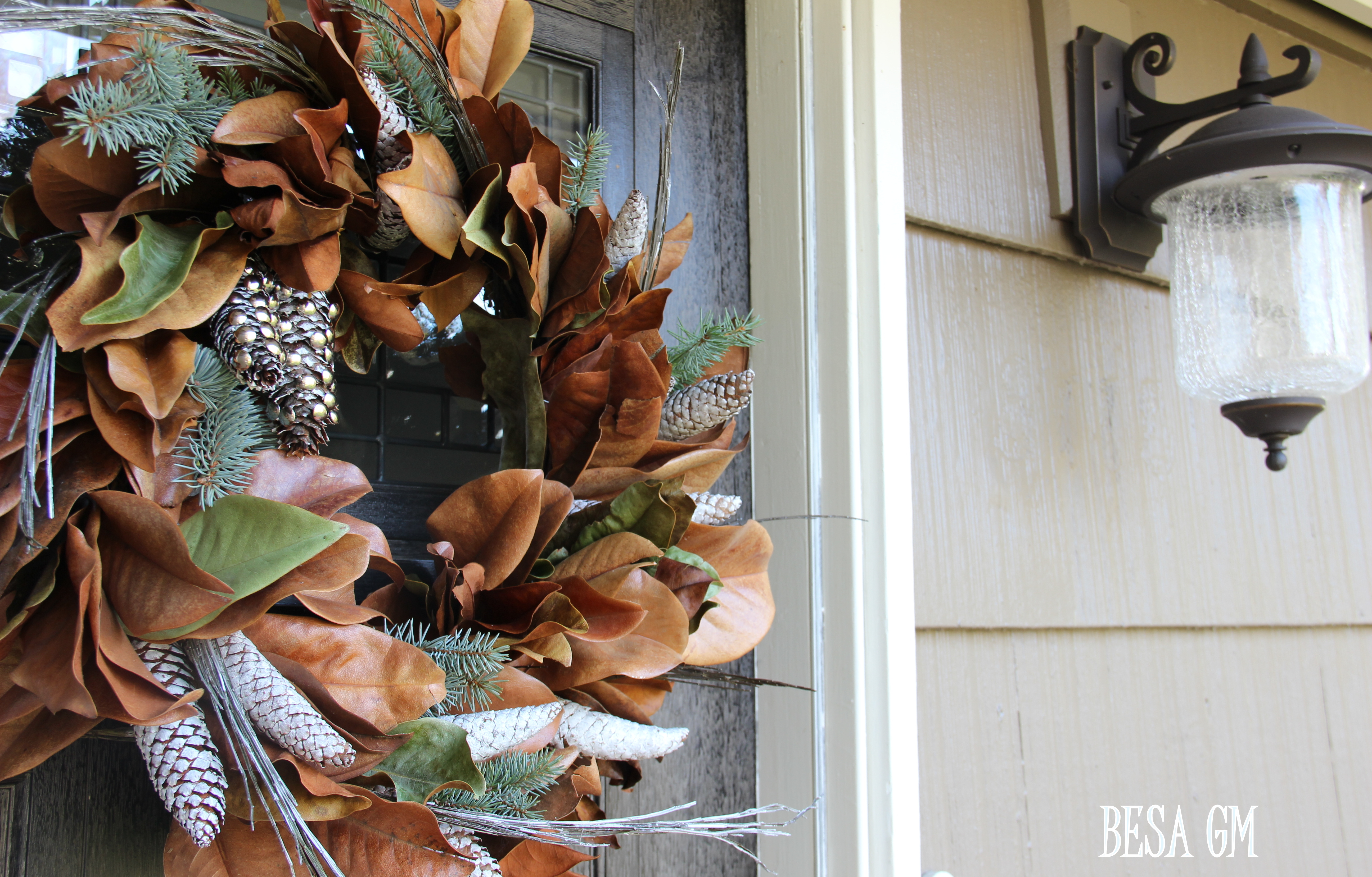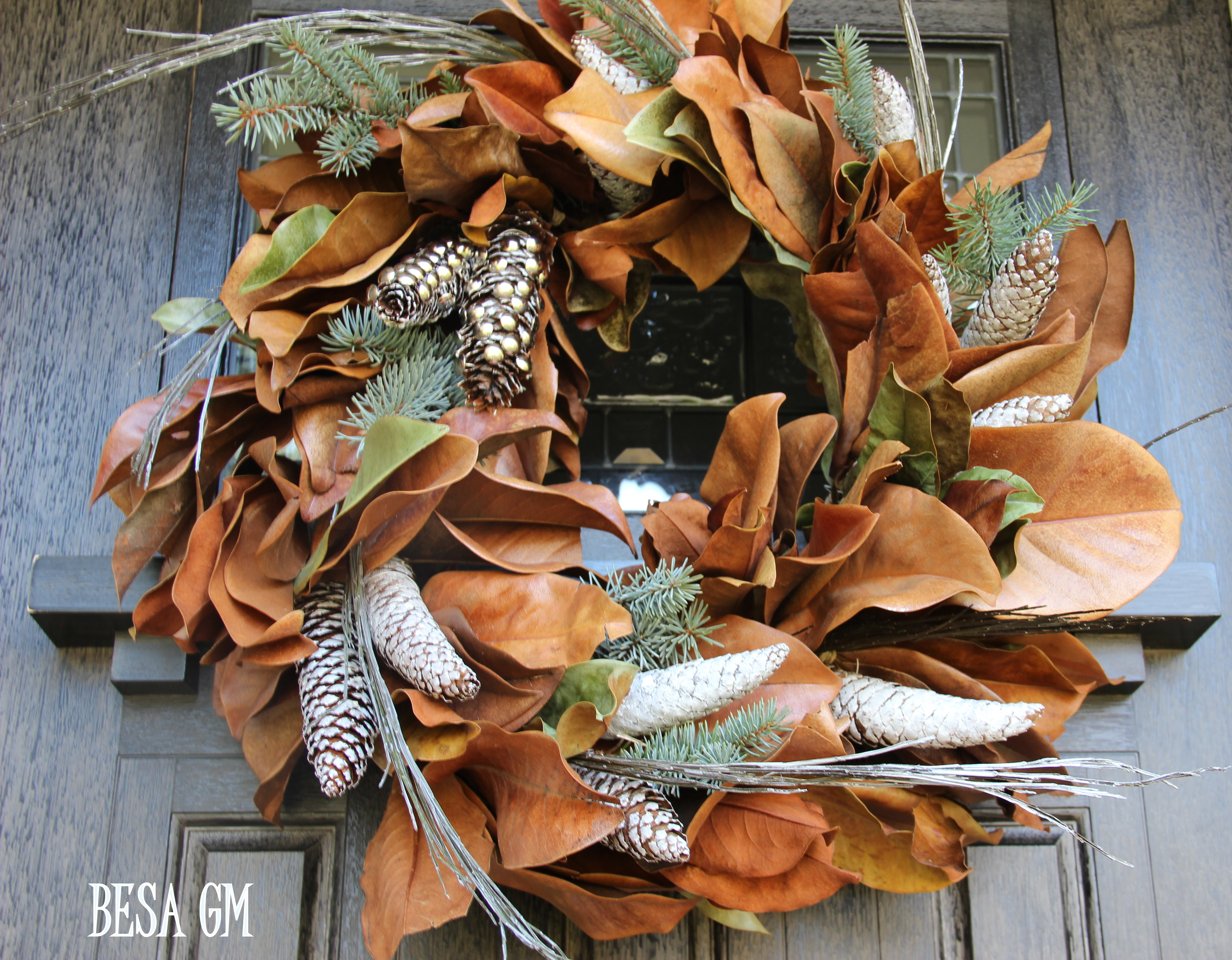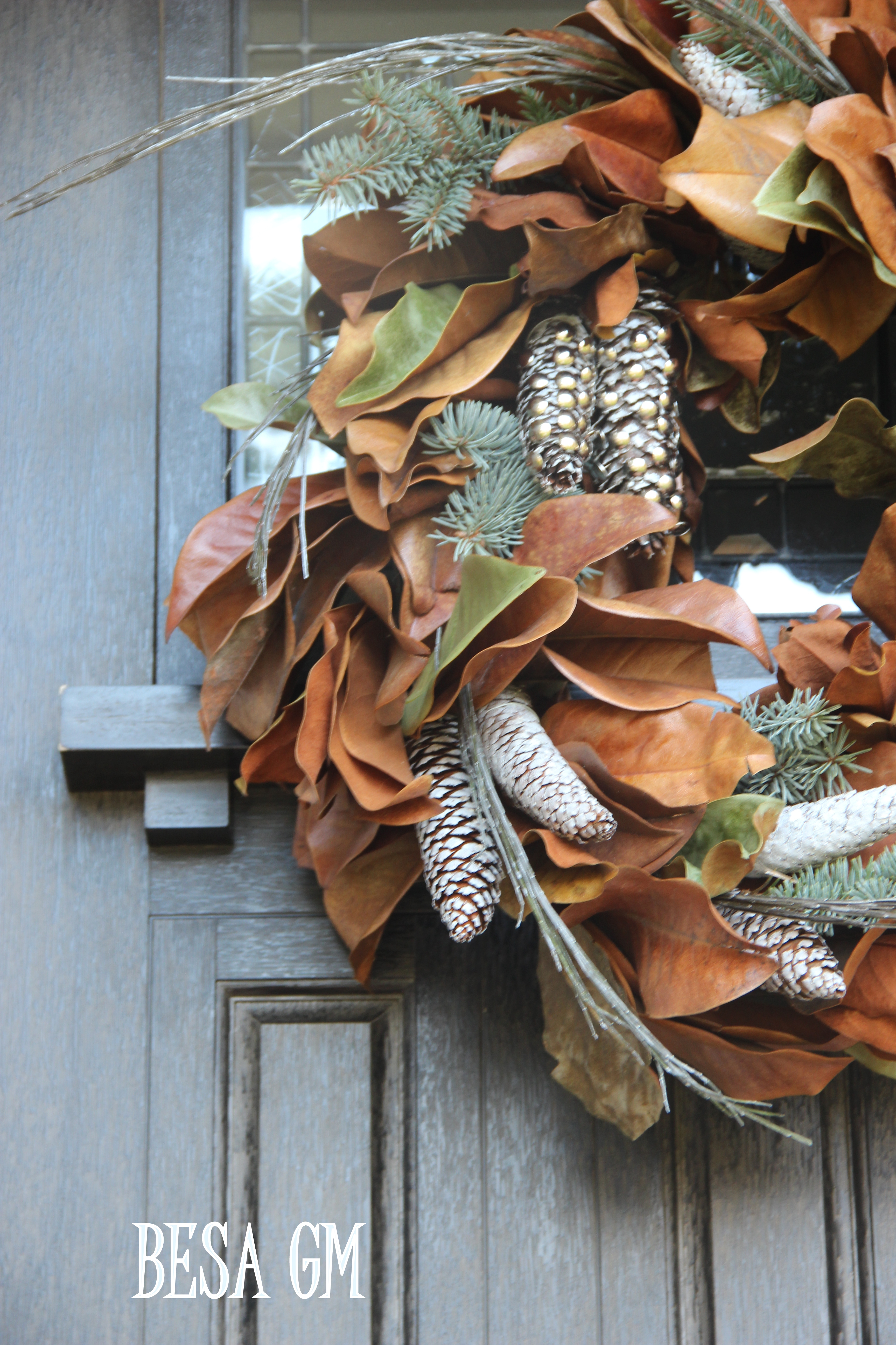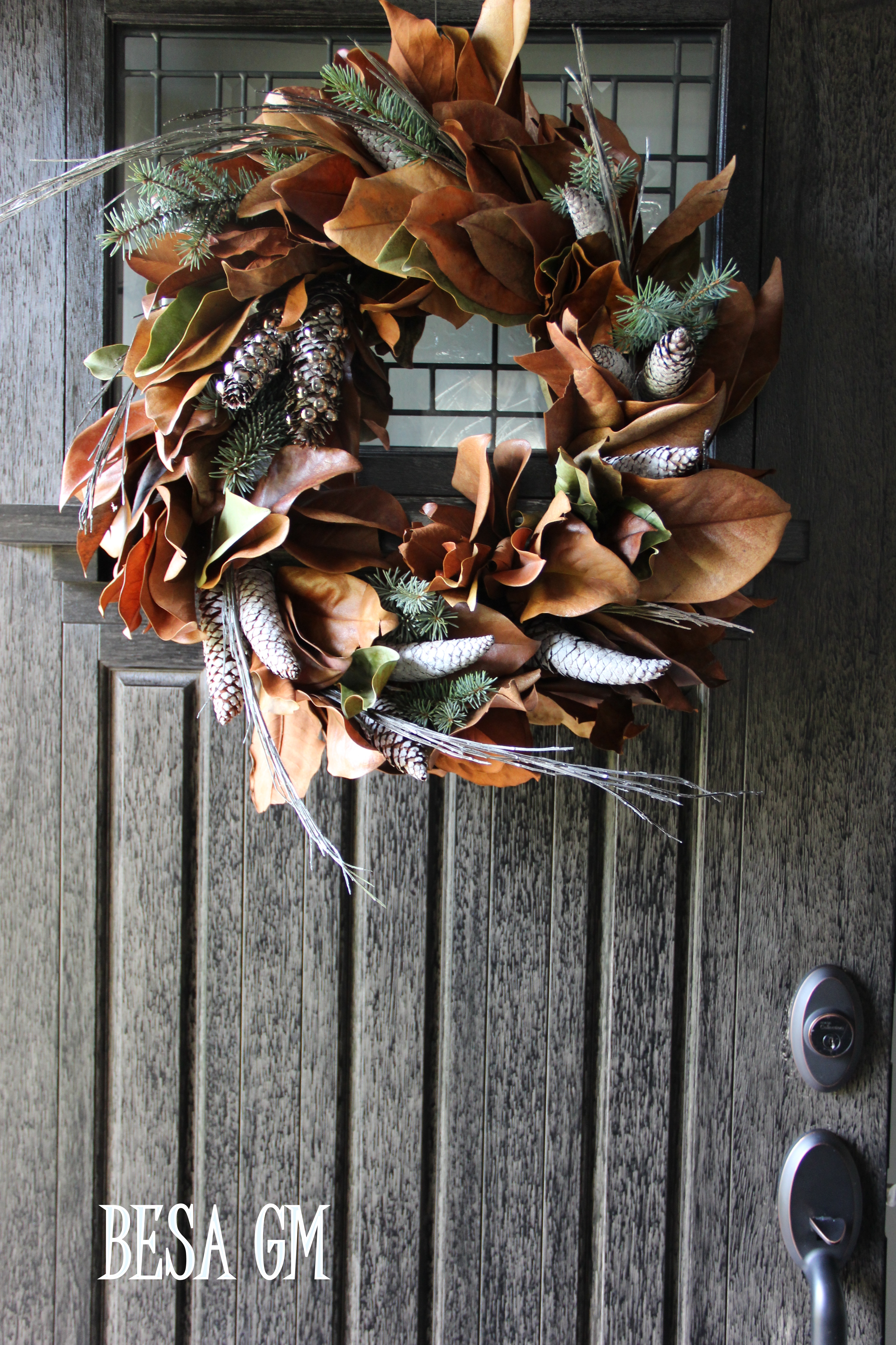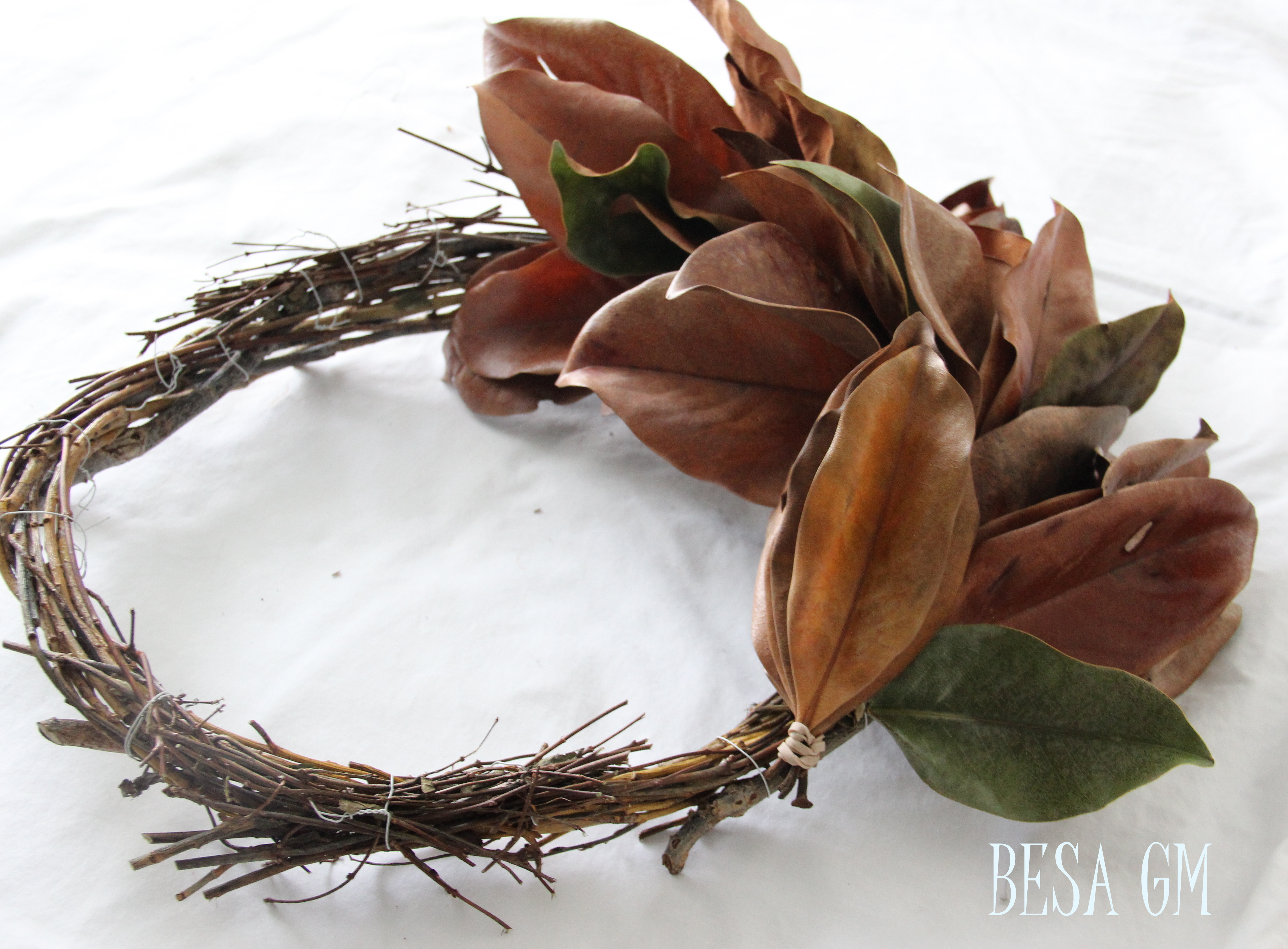 Last night I made this unique wreath reusing magnolia leaves from one of my previous projects.
