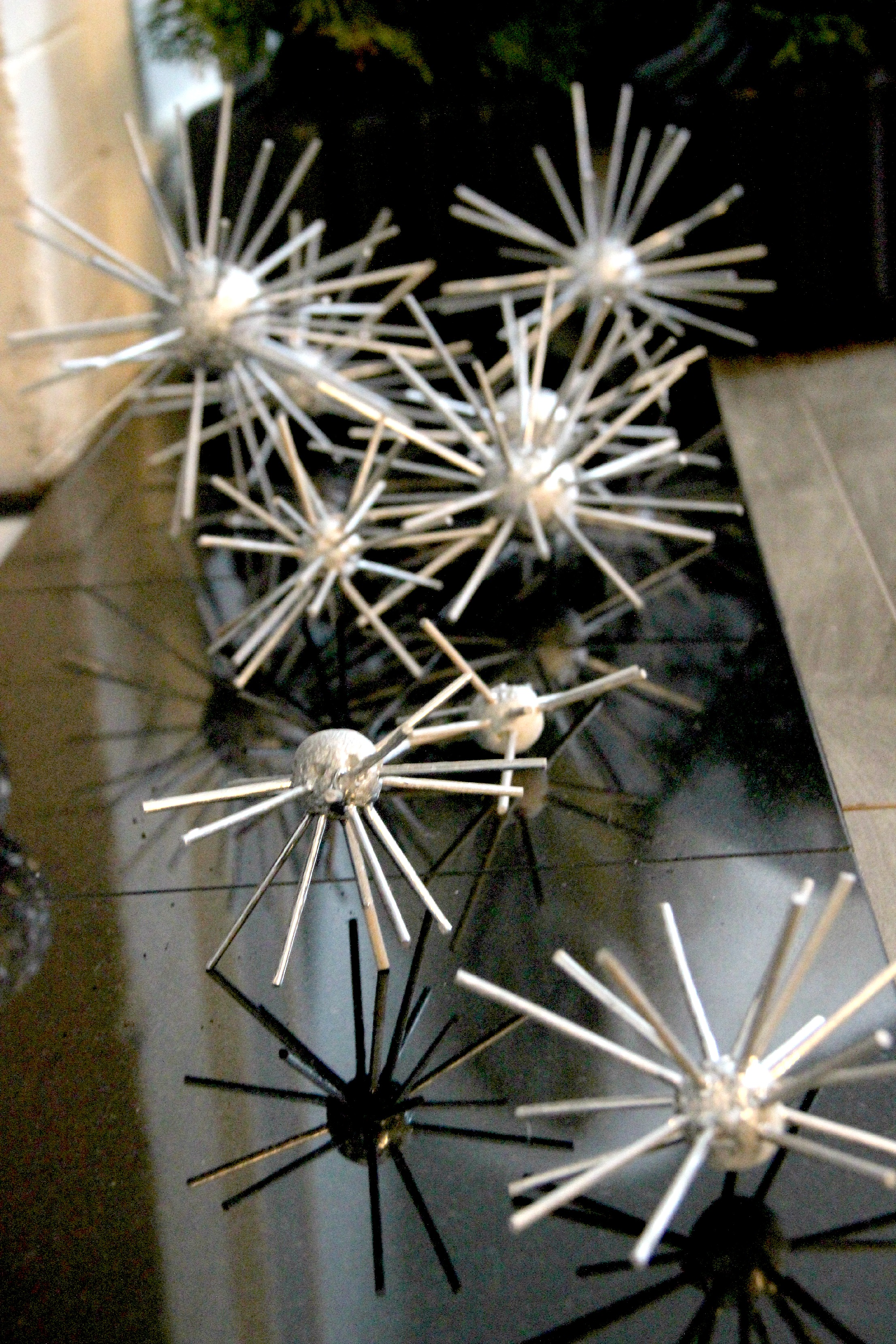 A week ago I made these delicate metallic starburst like ornaments which I will be incorporating in the holiday decor.