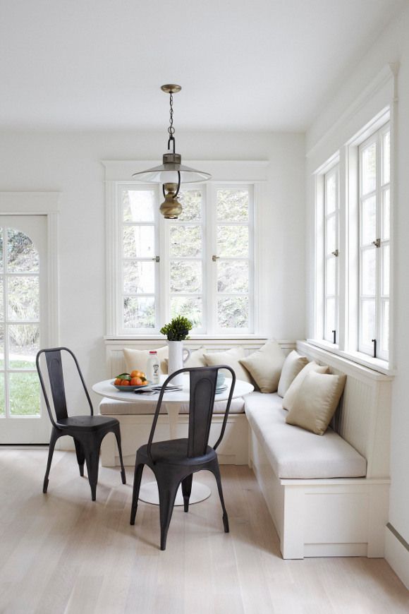 A simple corner banquete paired with these two Xavier Pauchard Tolix chairs, in this light filled kitchen corner, feels so relaxing.