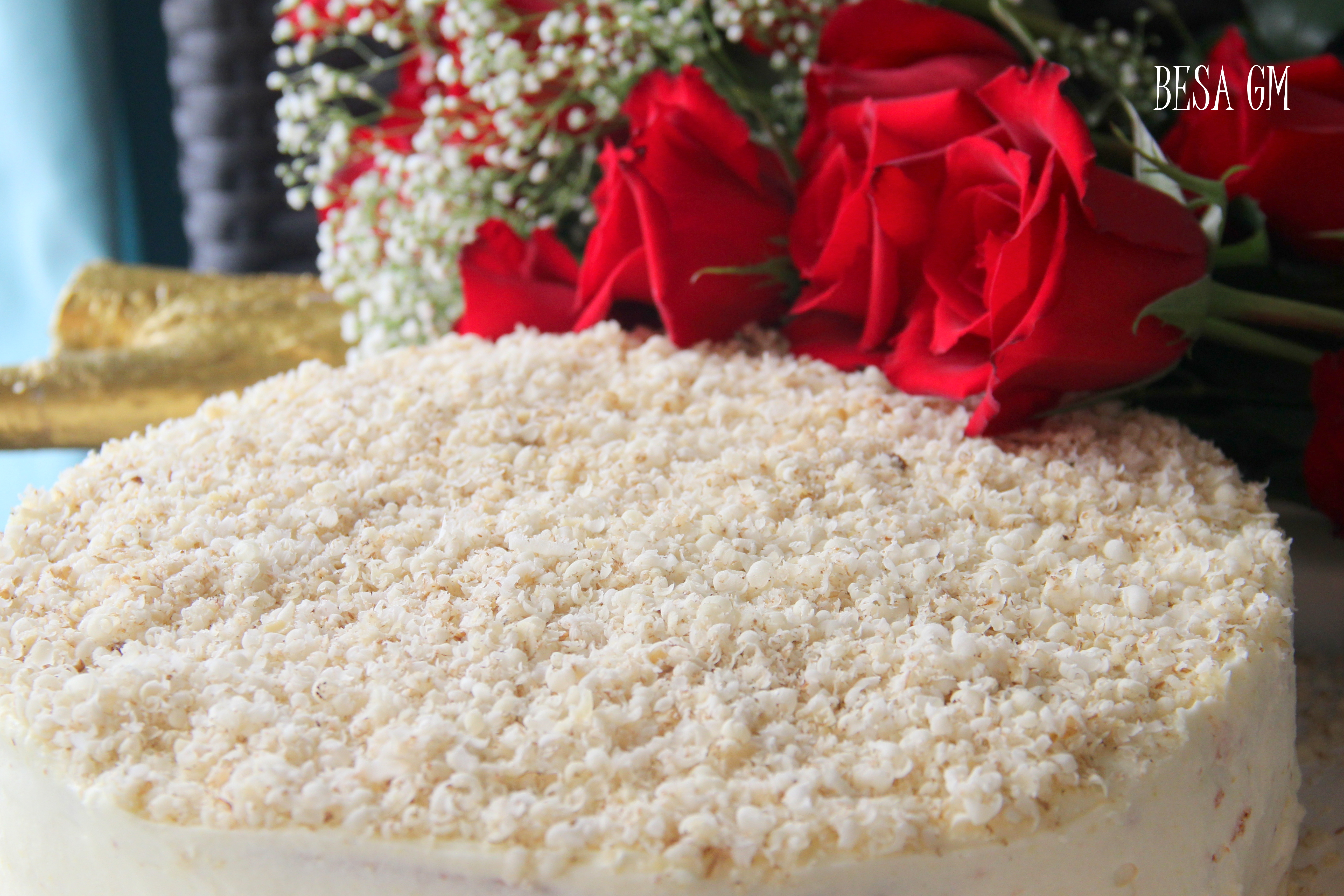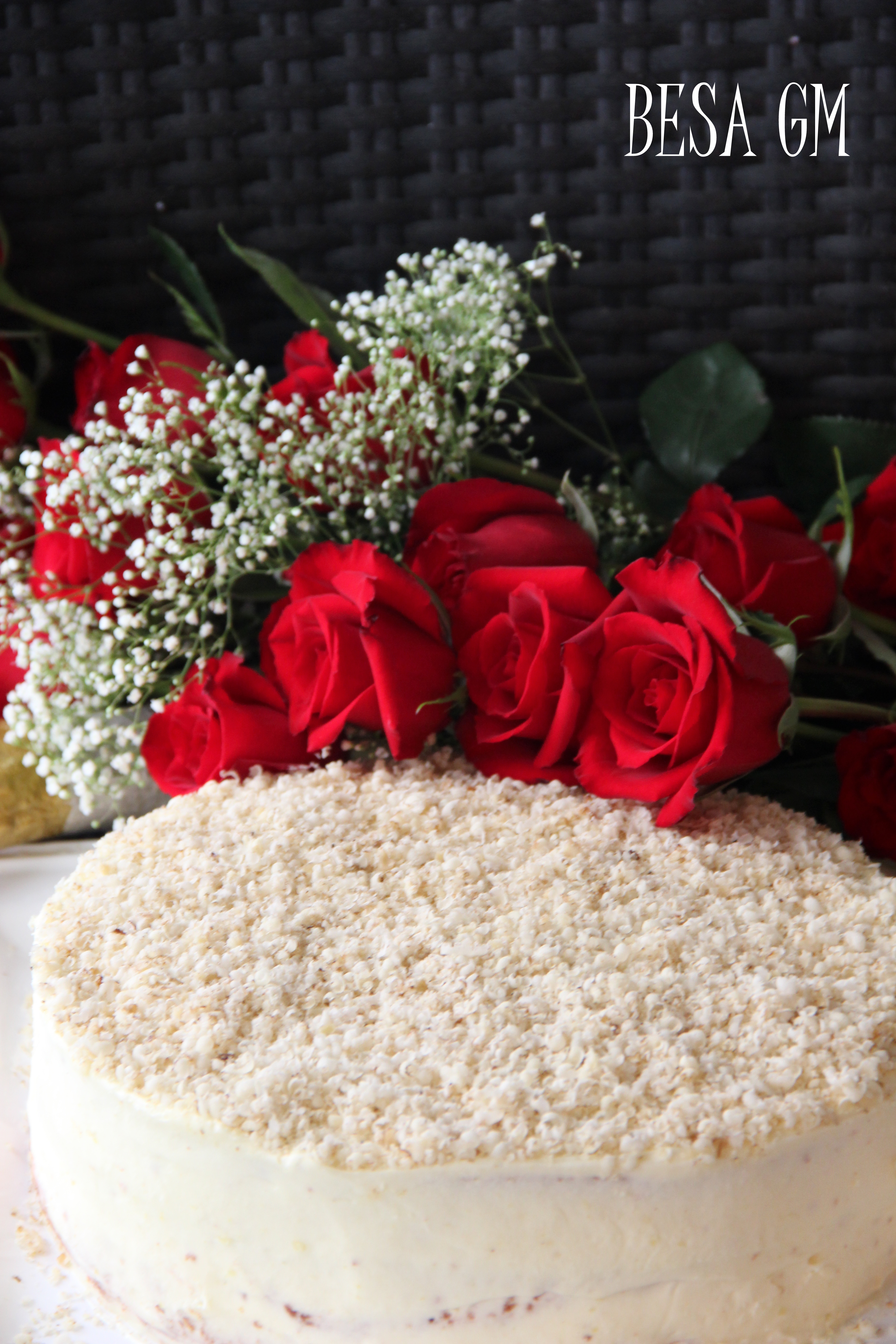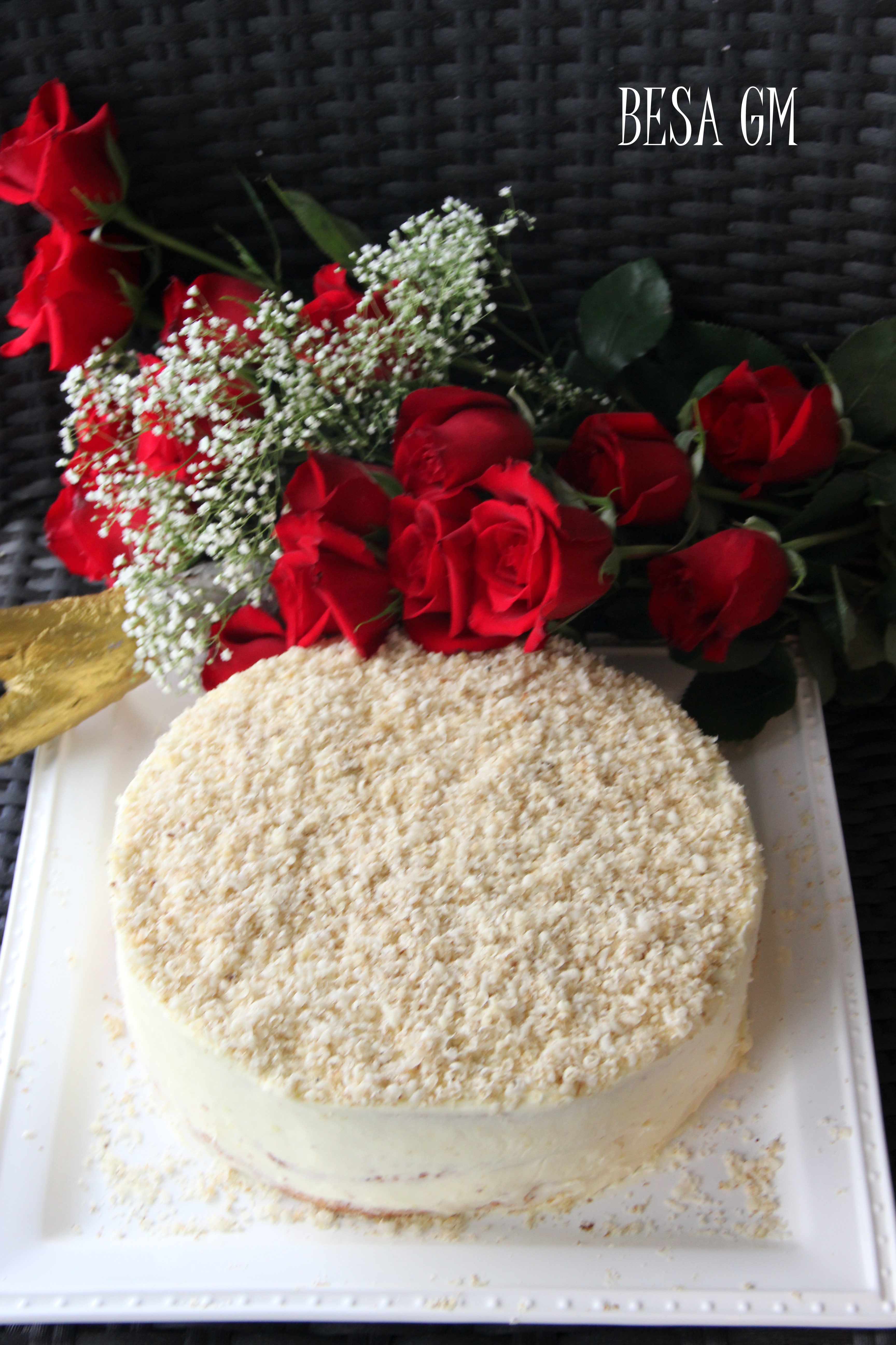 cake with a bouquet of red roses… I’ll prepare for the cake, that is yummy for sure…hmmmp