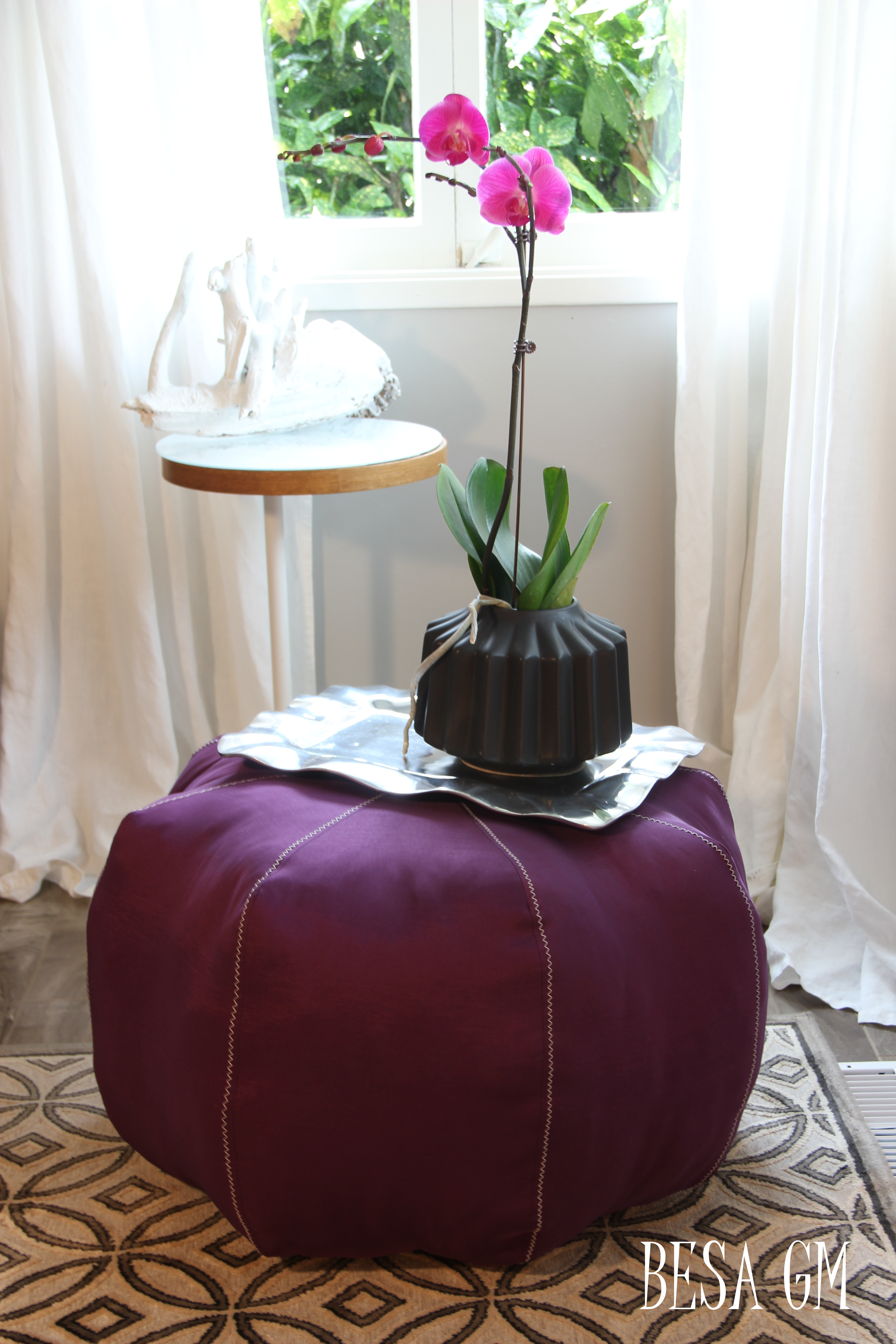 The poufs a.k.a floor pillows are the most versatile accessory ever. You can use them as extra seating, as a footstool, a side table, an accent piece and even a storage. They are small and don’t take up a lot of room and may add a lot of fun, and personality to a space. In addition, like in my case, they can add a splash of color and cheer up a space.
