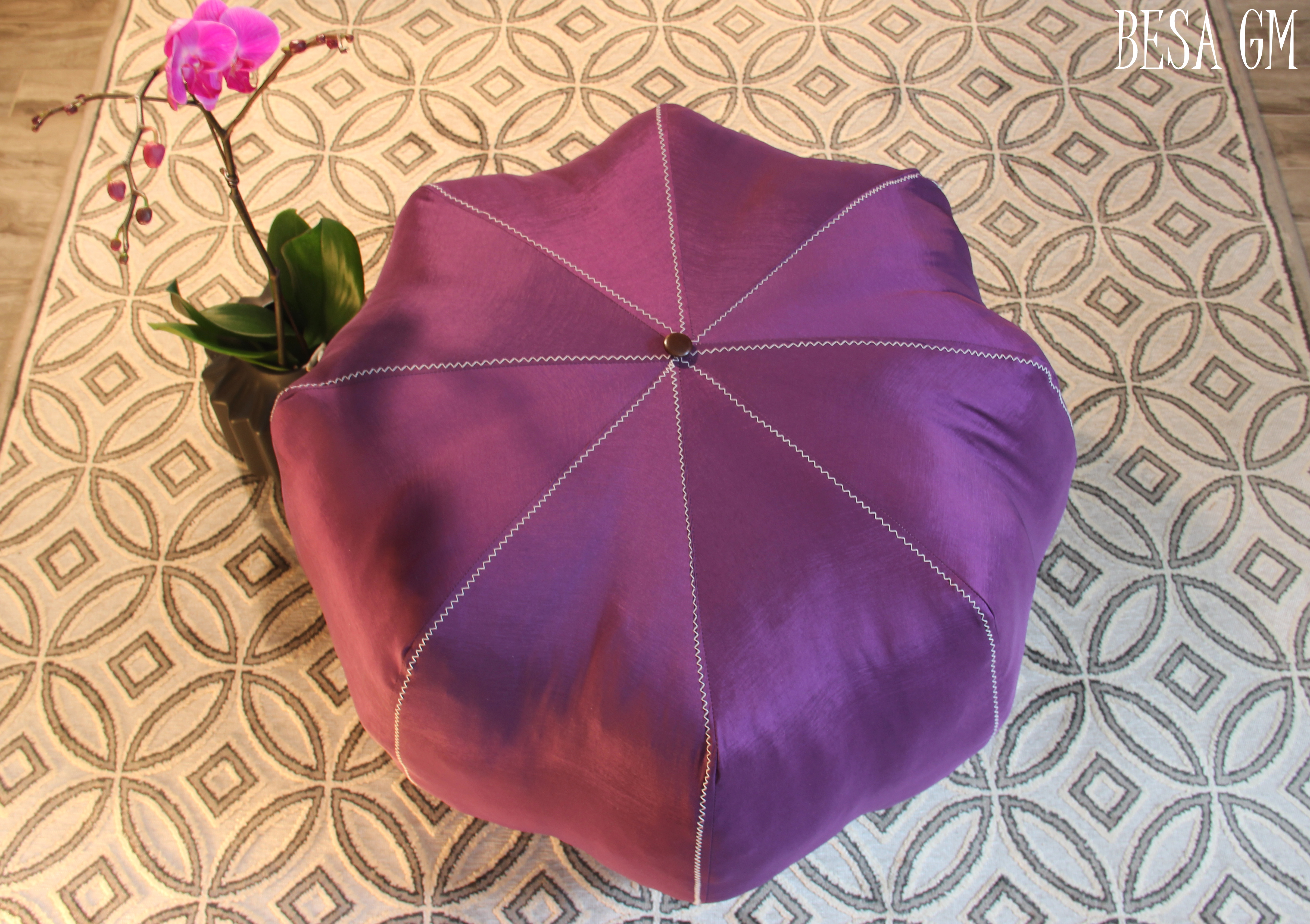 Luckily the color of the mentioned fabric pretty much looks alike the color of the Pantone’s Radiant Orchid, so I decided to make the pouf using this fabric. I also had a lot of stuffing salvaged from the back pillows of my old sofa and a zipper (odd color I know but it was free), so this was another project for which I did not have to spend a dime.