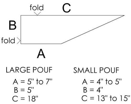 To make the pouf you will need 2 yards of fabric, plenty of stuffing (you can also use clothing, bed sheets, comforters, paper etc) and of course you will need a sewing machine, measuring tape, scissors,upholstery thread, 36 inch long paper to make a pattern, zipper and a button to finish off the pouf.