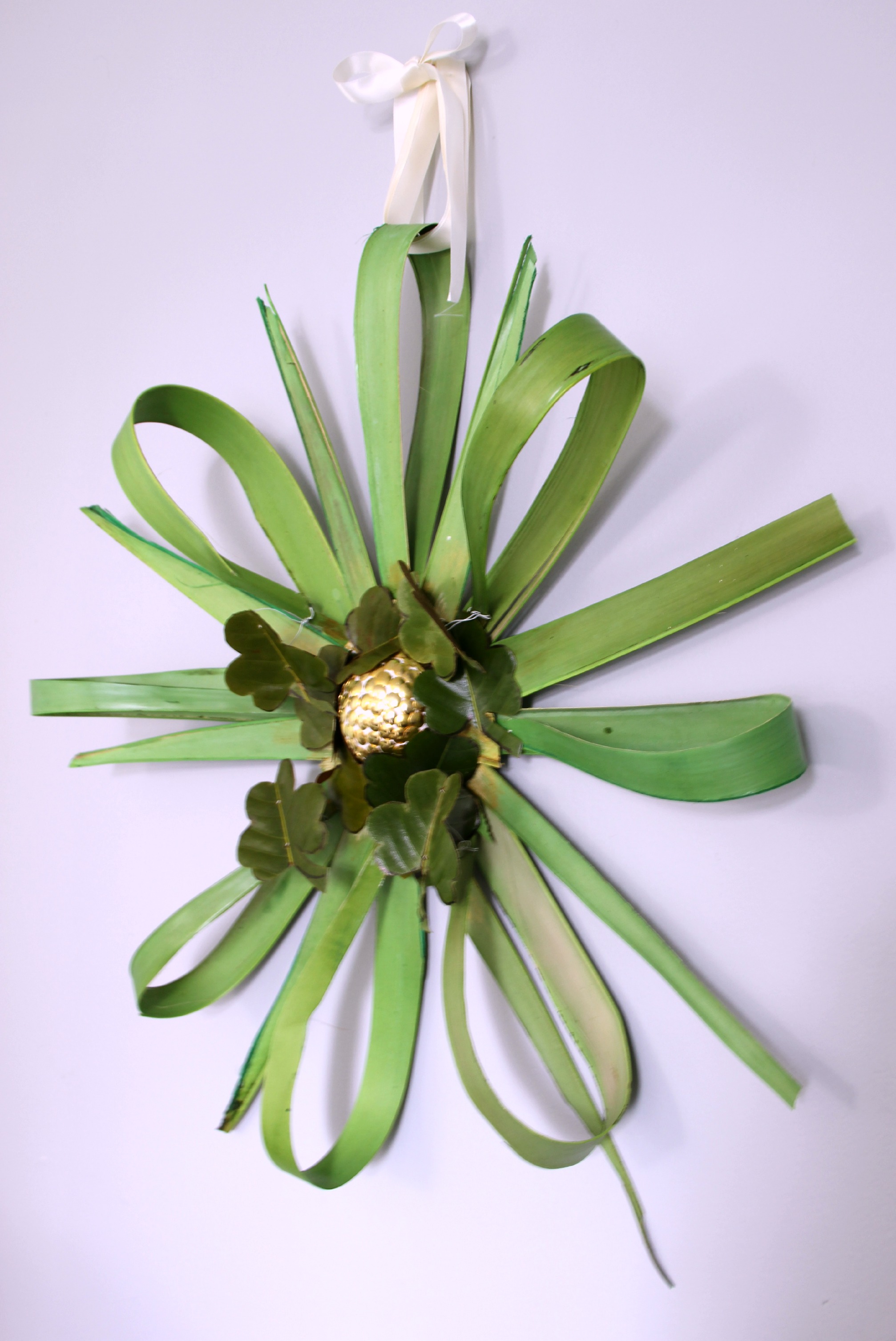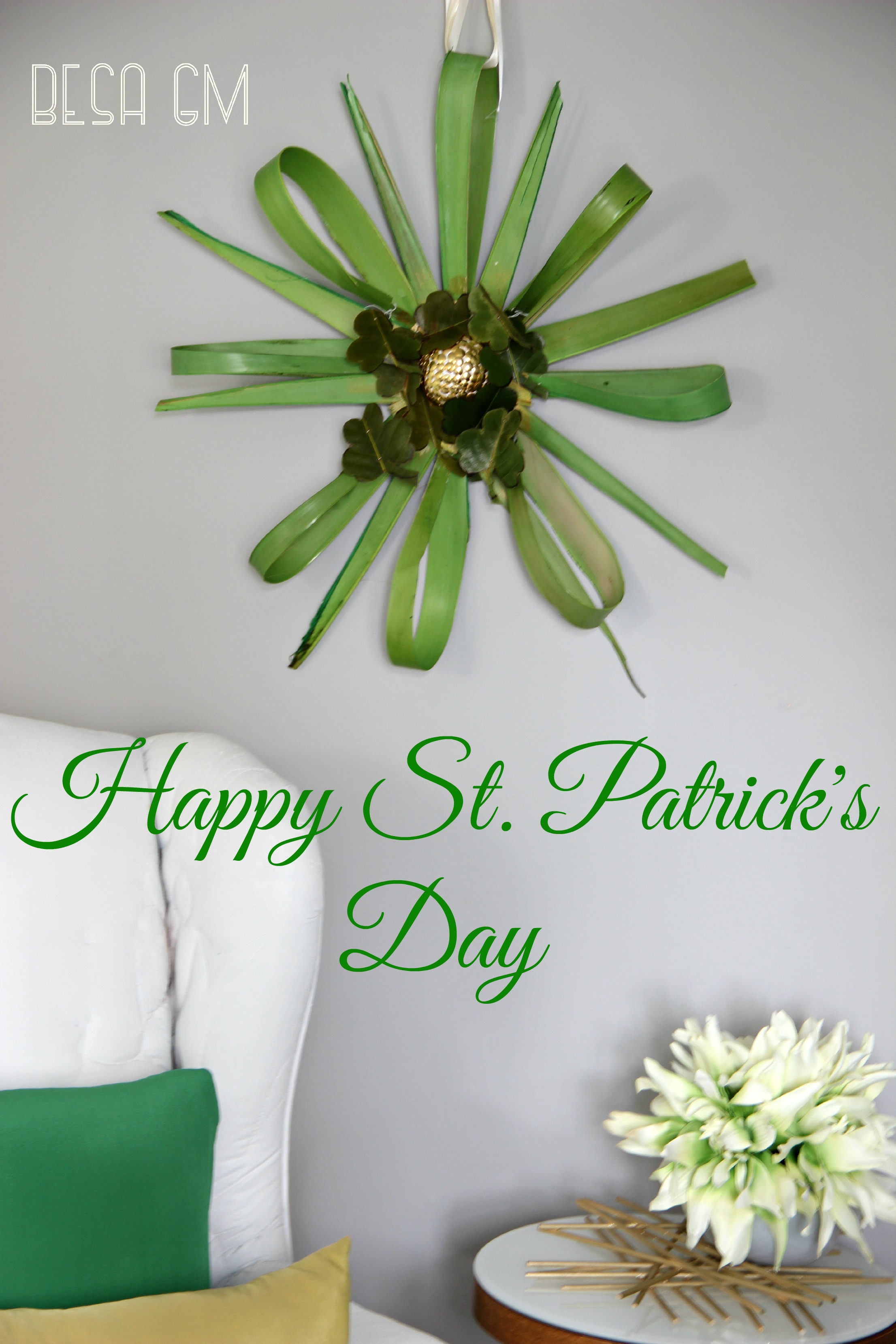 I decided to incorporate green in my home decor to mark this celebration so I created this simple green starburst. I have put this piece together by using dried greenery, fresh magnolia leaves, and thumbtacks.