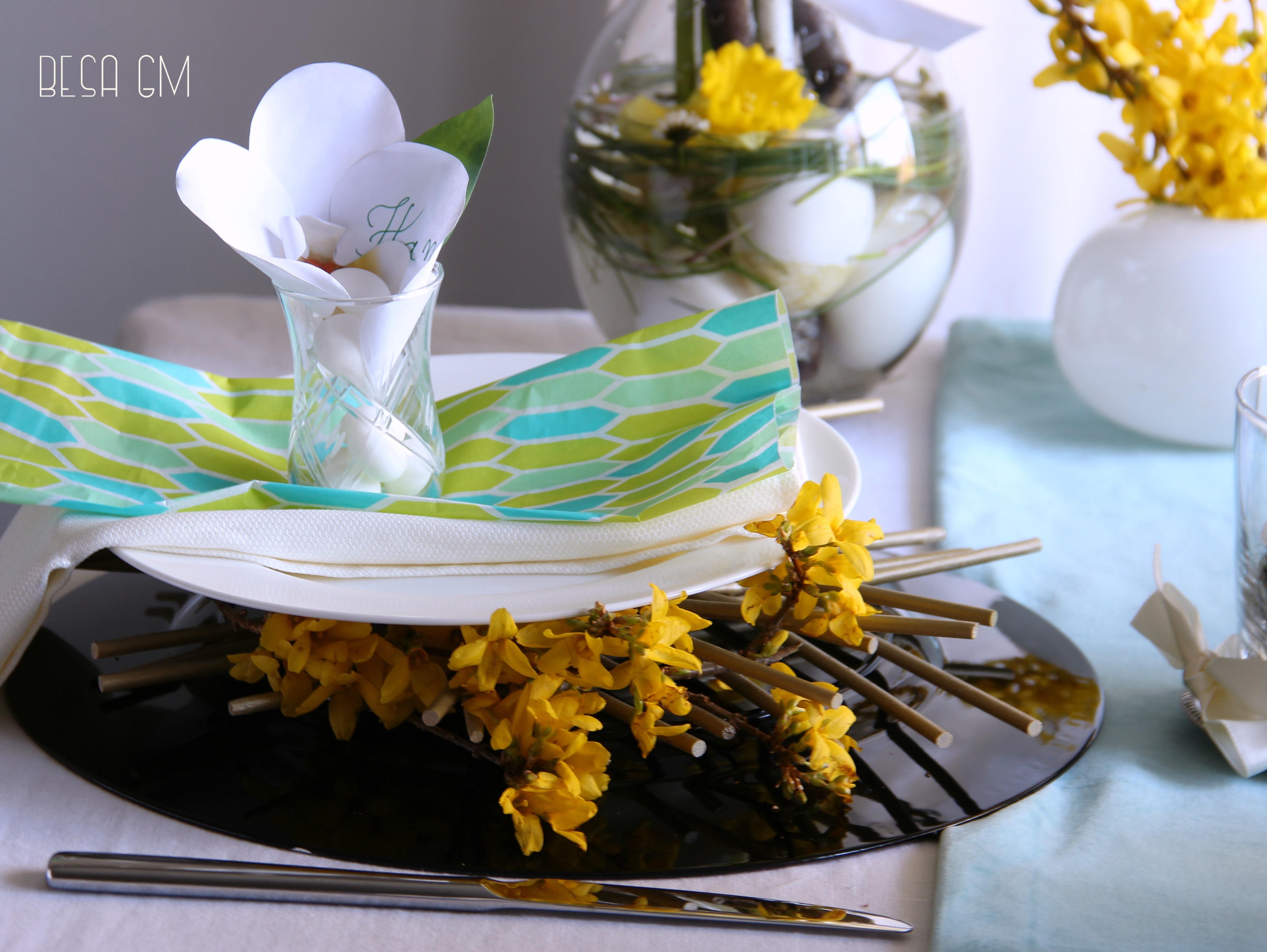 To create this tablescape I used what I already had, and yet this simple table setting turned lovely, colorful and very, very springy.