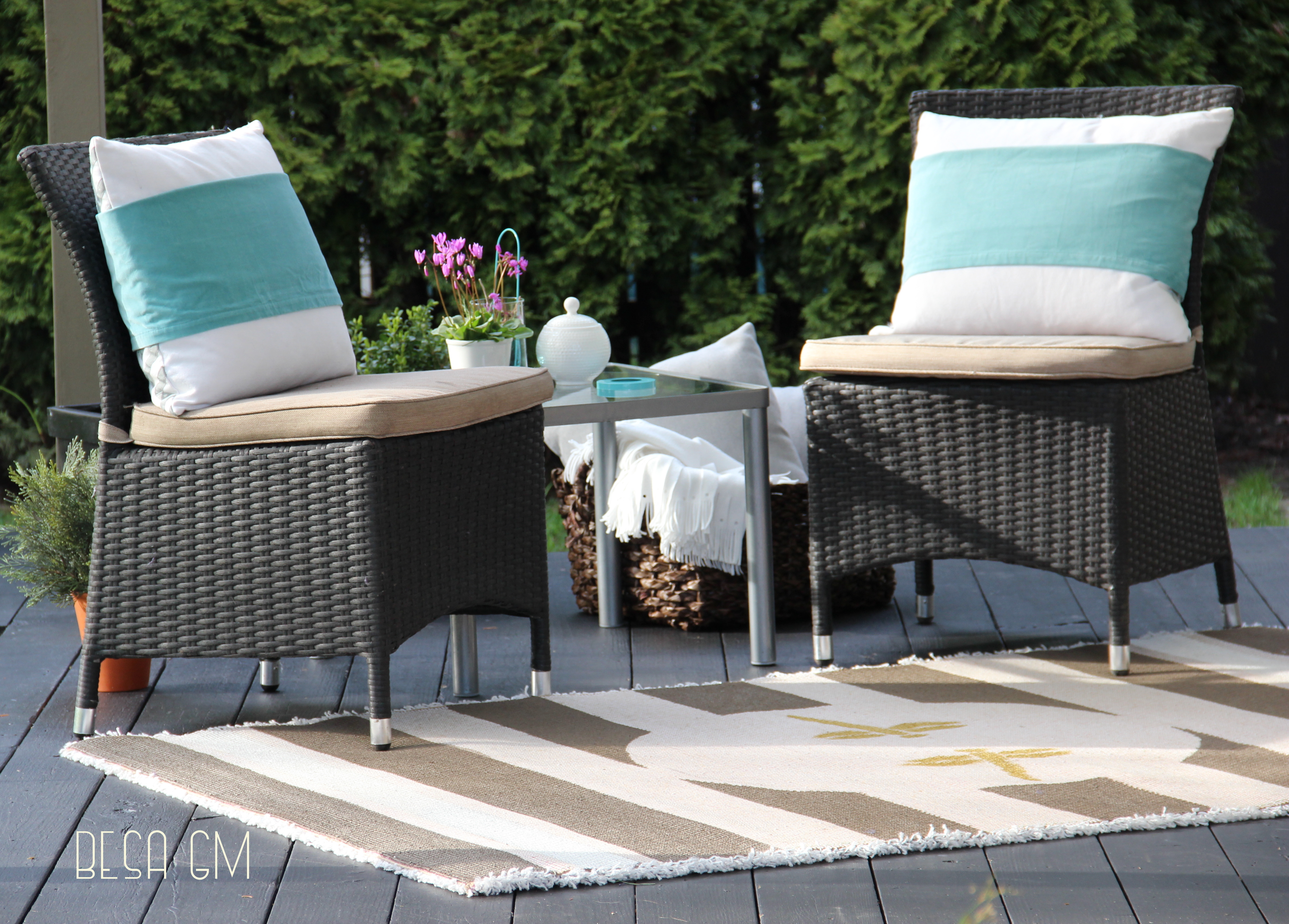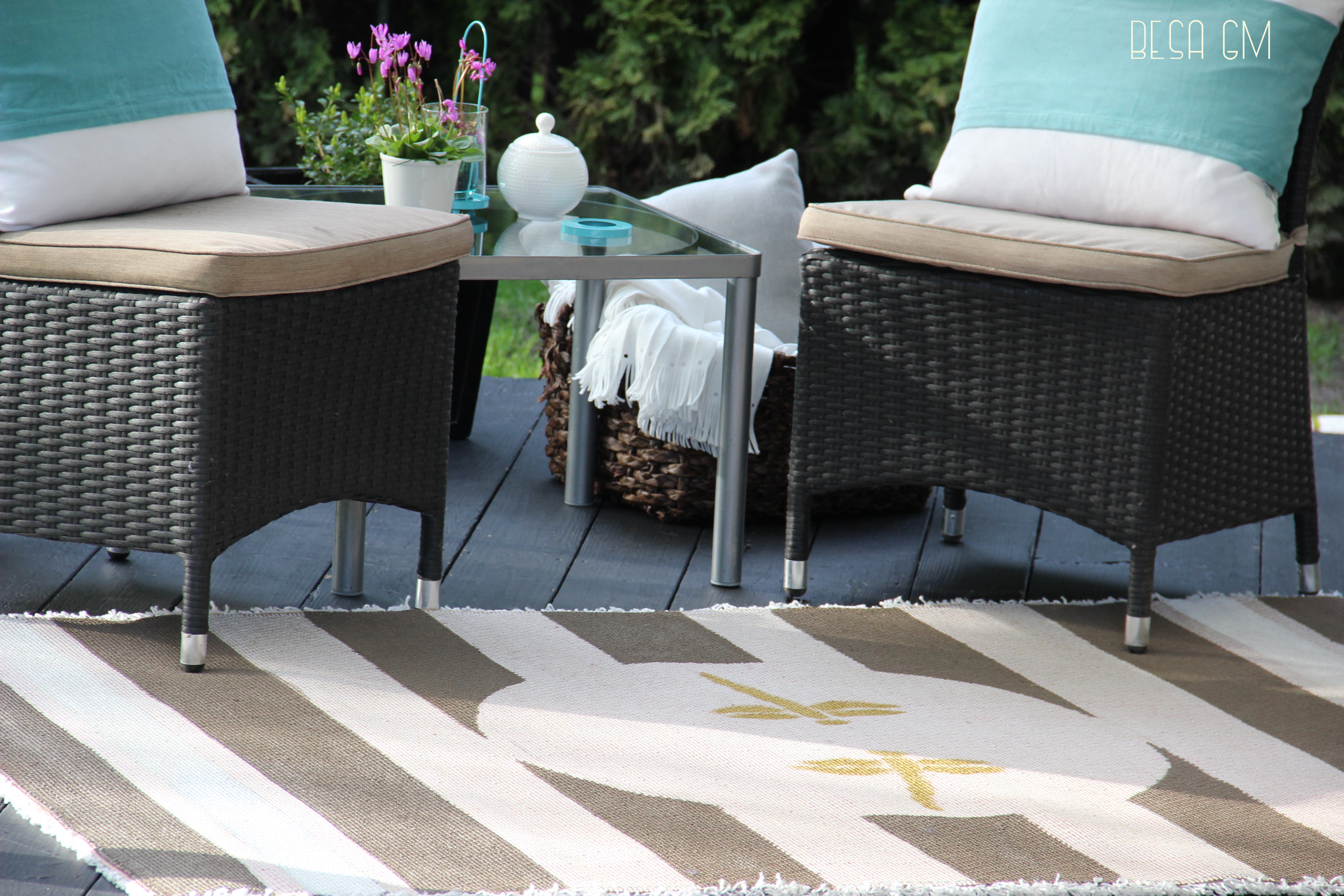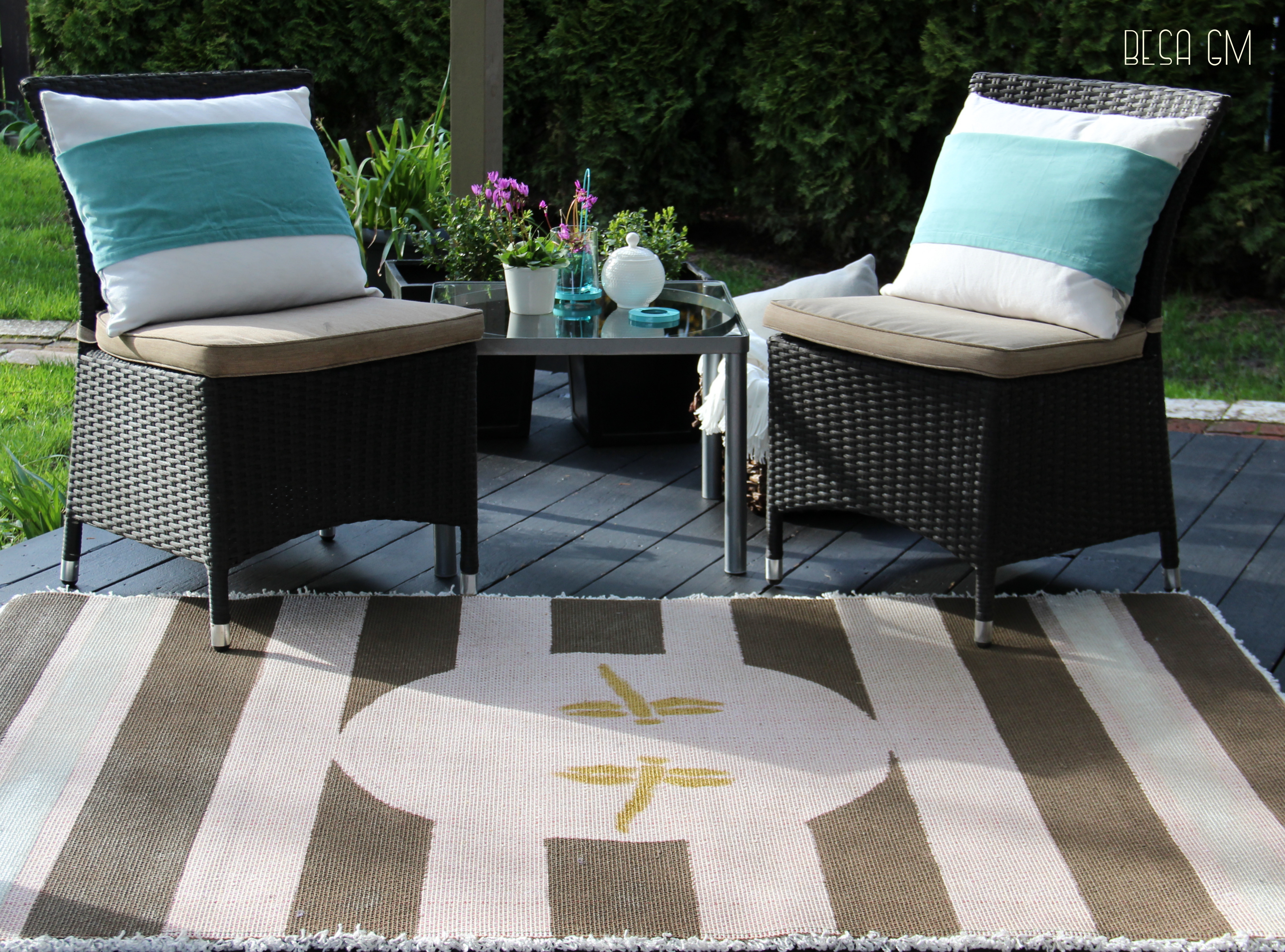 This was a non costly project, as I already had paint leftovers from other projects, and I only spent about 2 hours for painting. I only painted the dark stripes, as the back side of the rug was white.