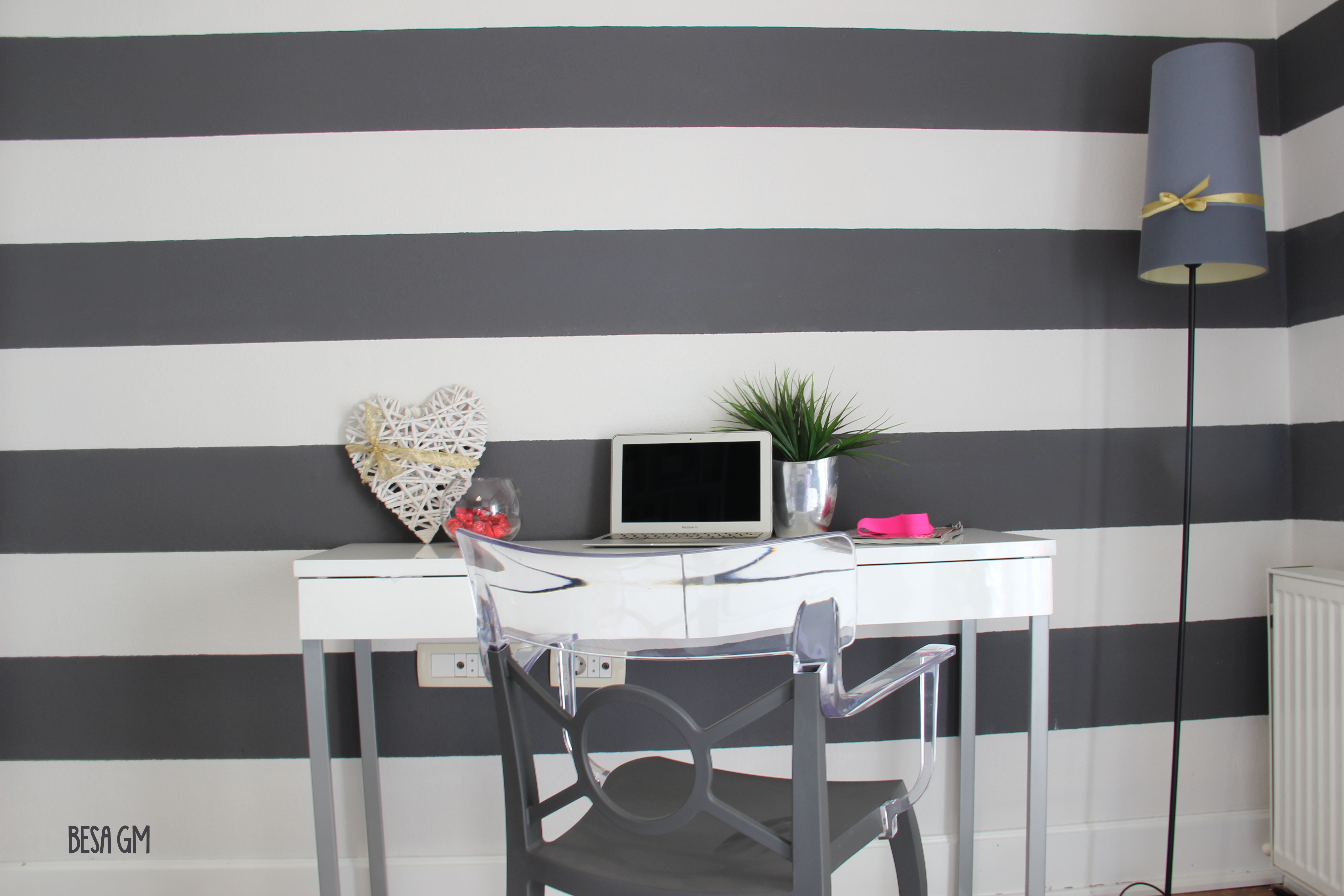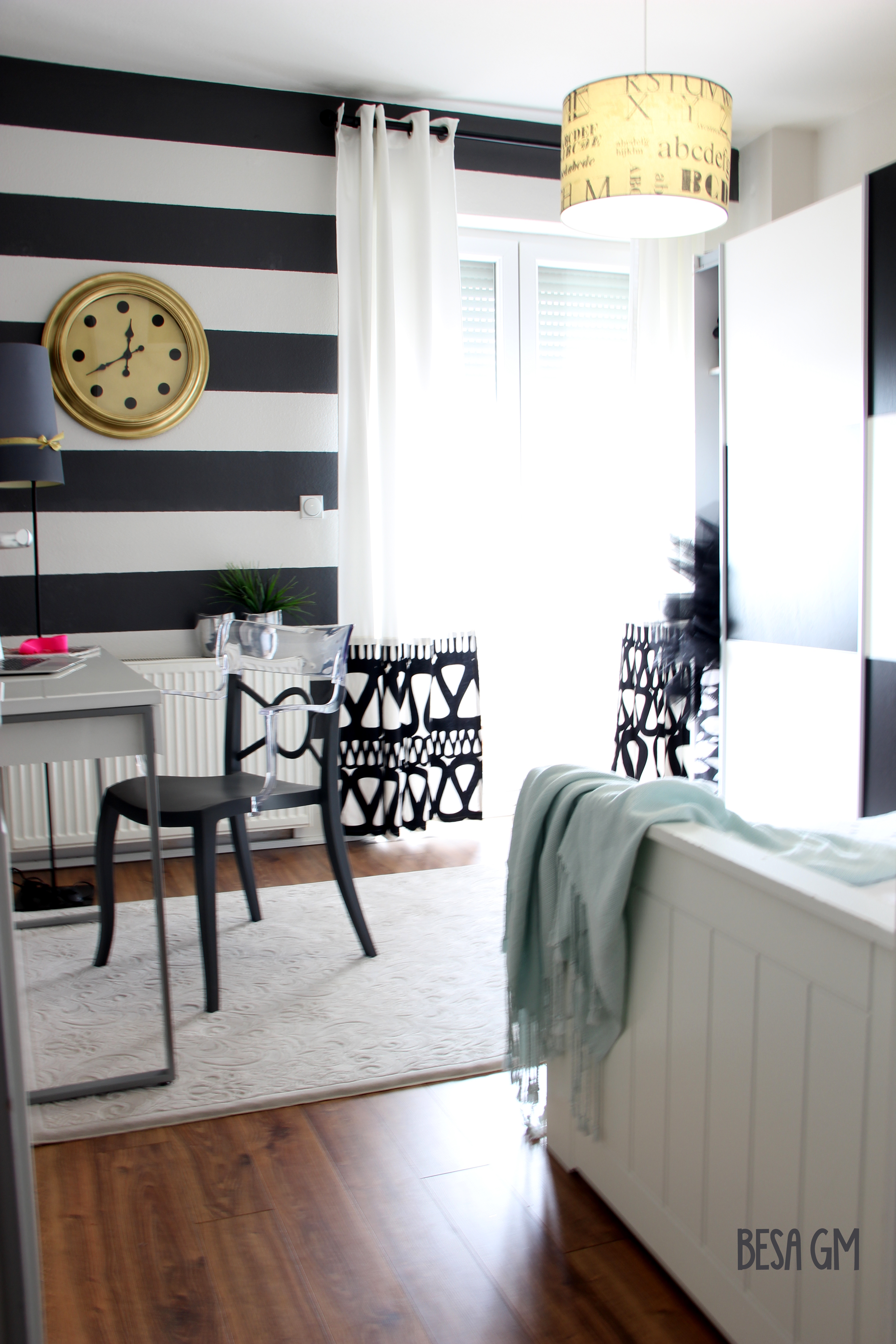 I am so happy and exited that my niece’s bedroom project is finally finished. This was an easy and fun design project to work on, since the major work was done by the painter who did the horizontal stripes on a very rough surfaced wall.