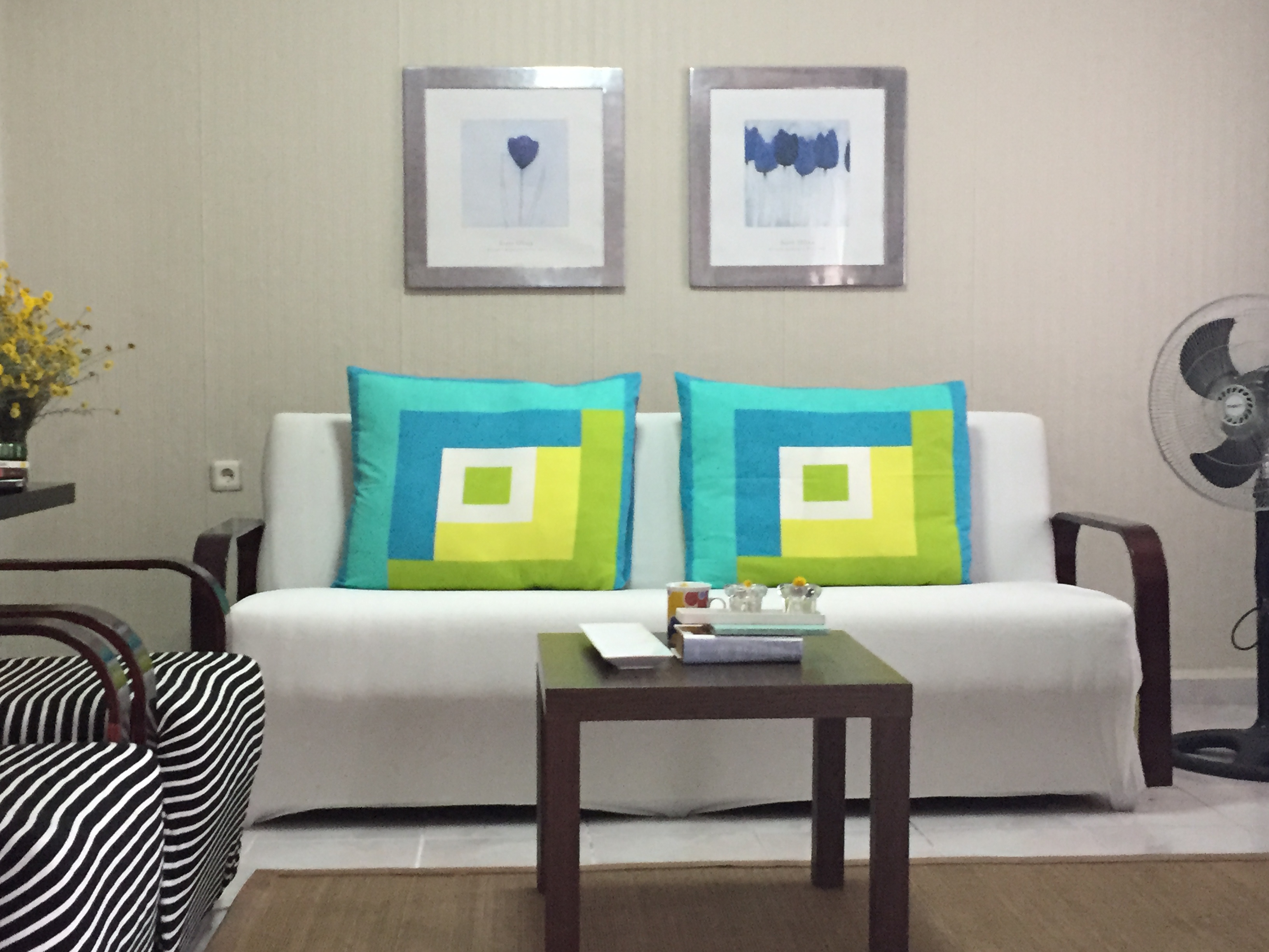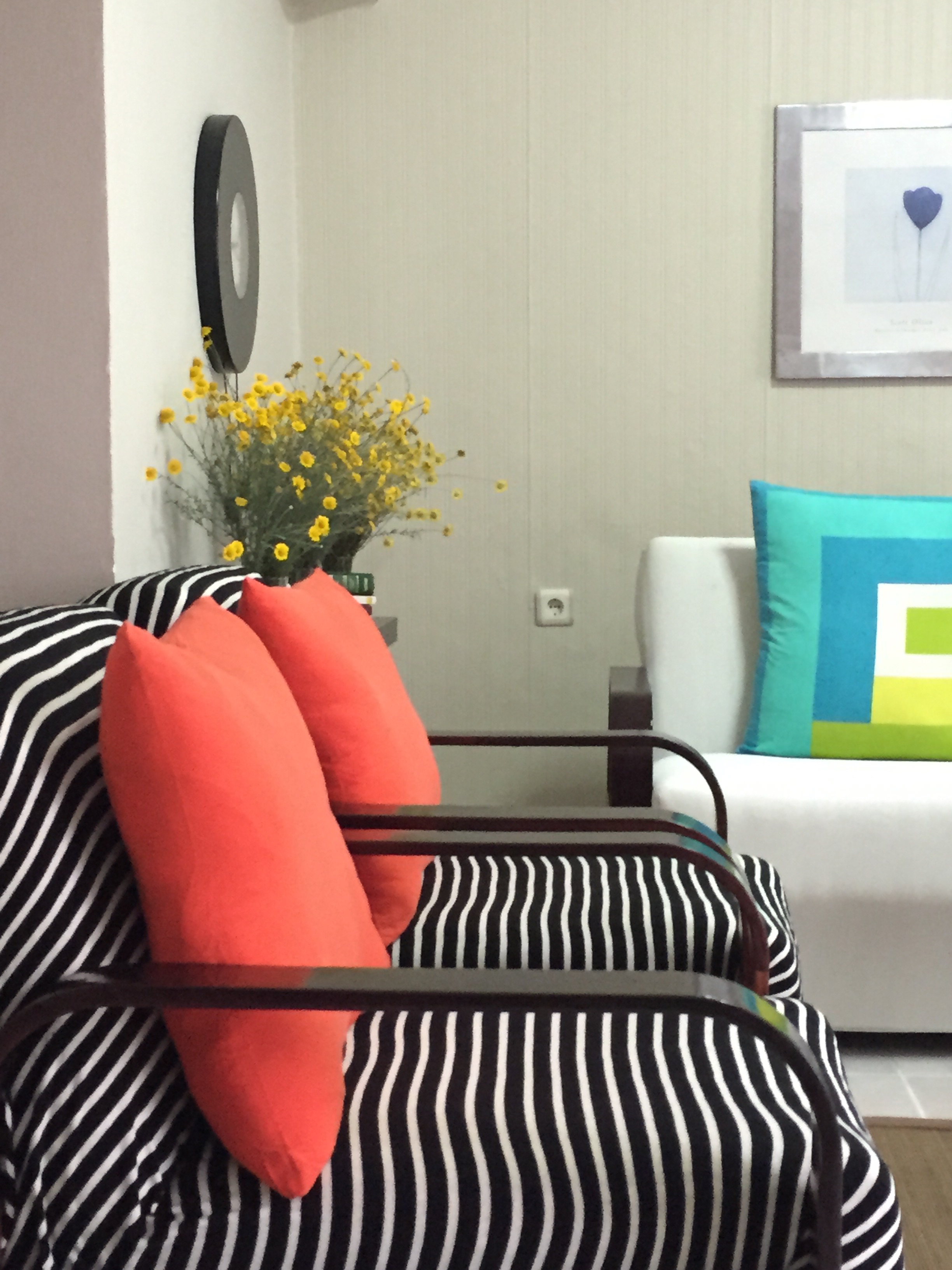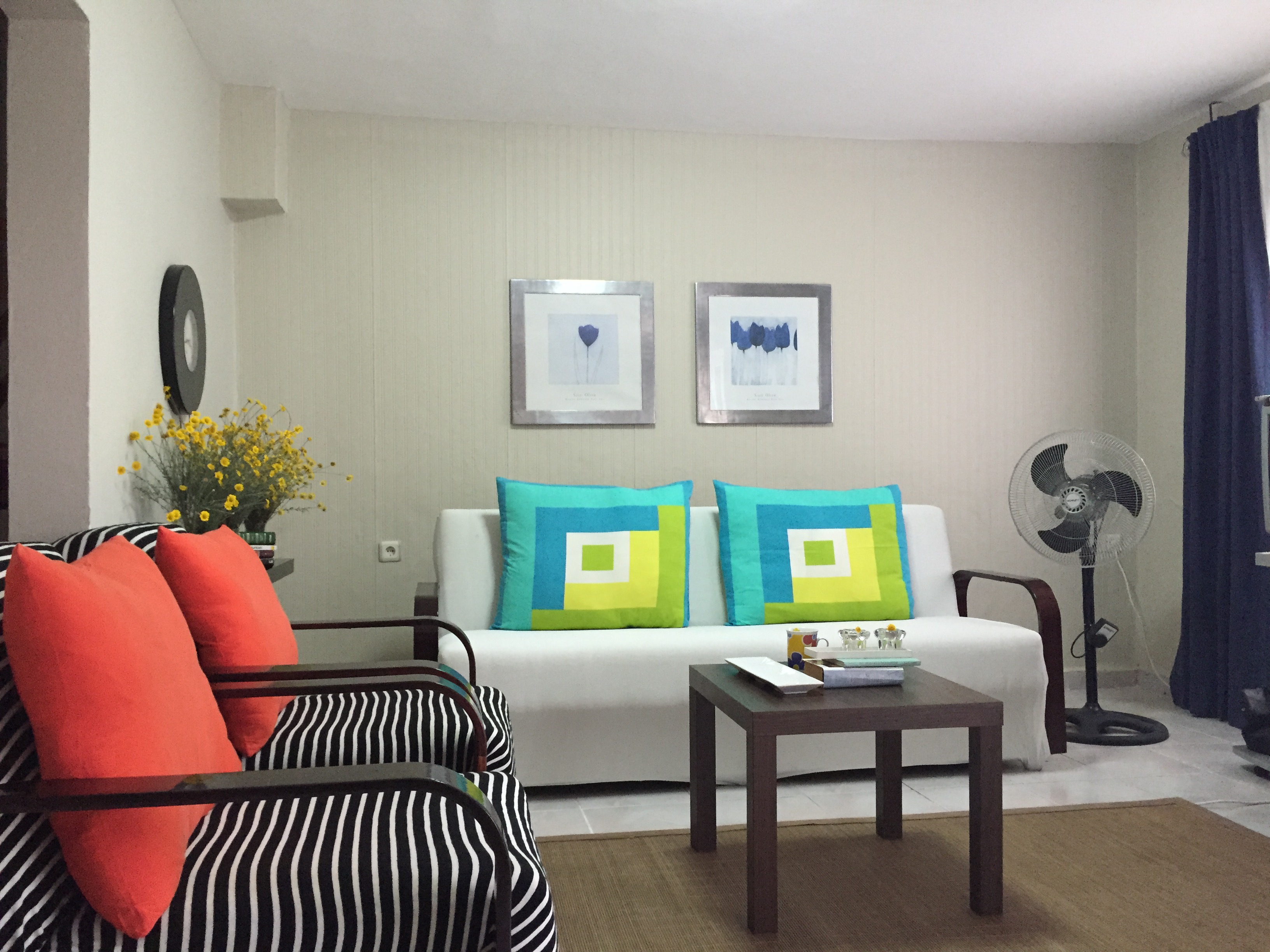 Ne fund mobiljet i dekorova me disa kellefe te jastekve me ngjyrera te cilat i kisha ne shtepi, dhe keshtu e krijova nje dukje krejtesishte te re te dhomes se dites.