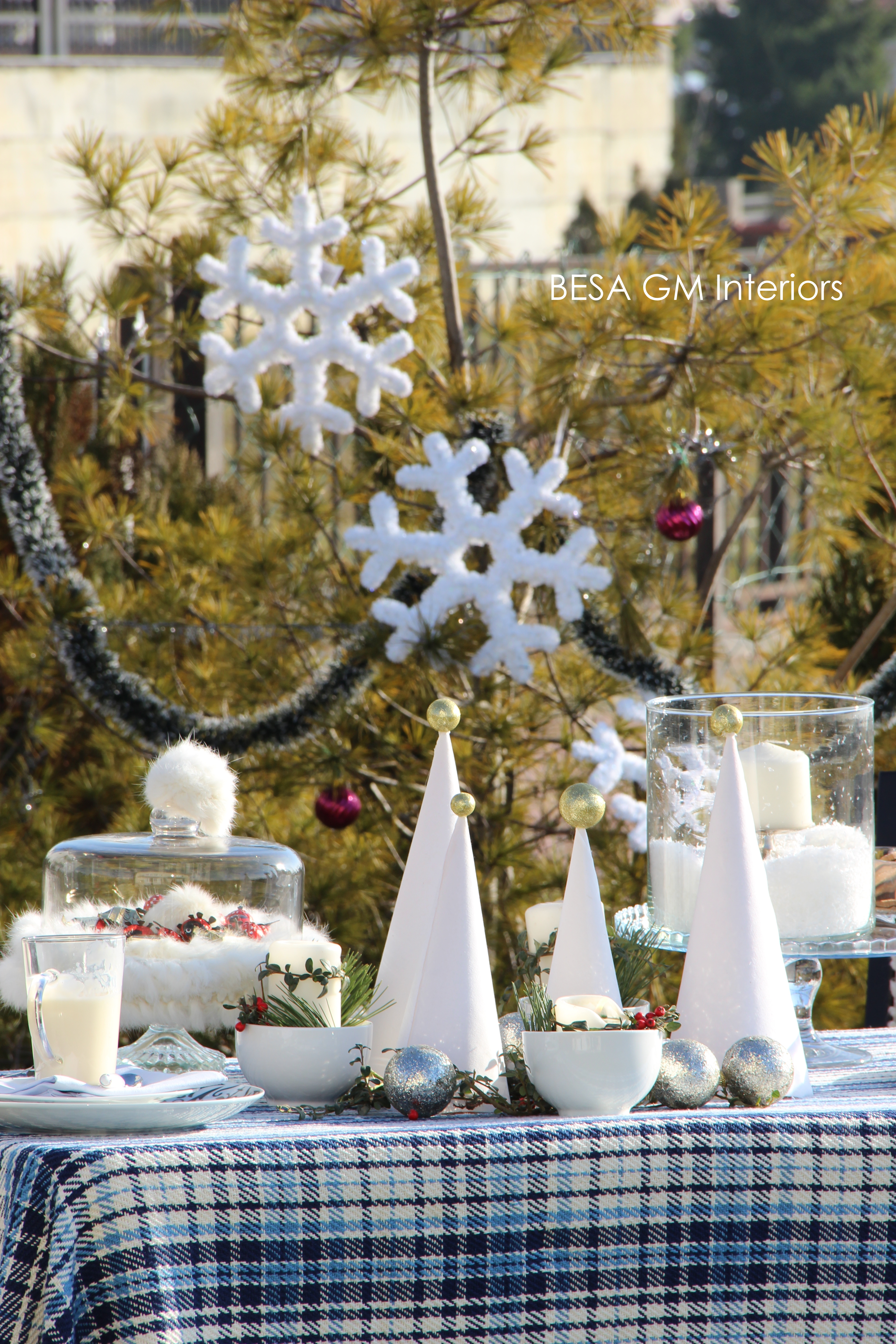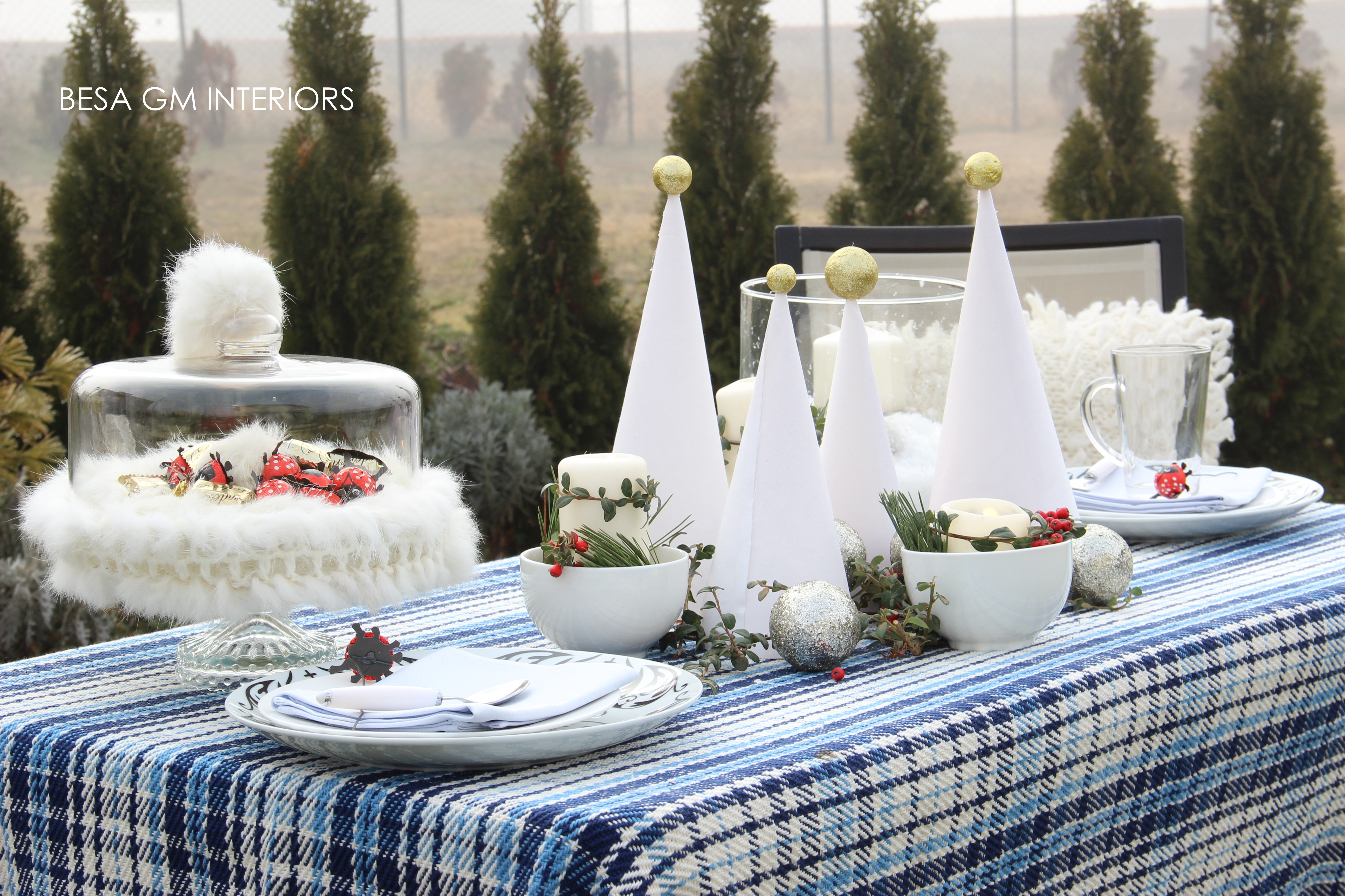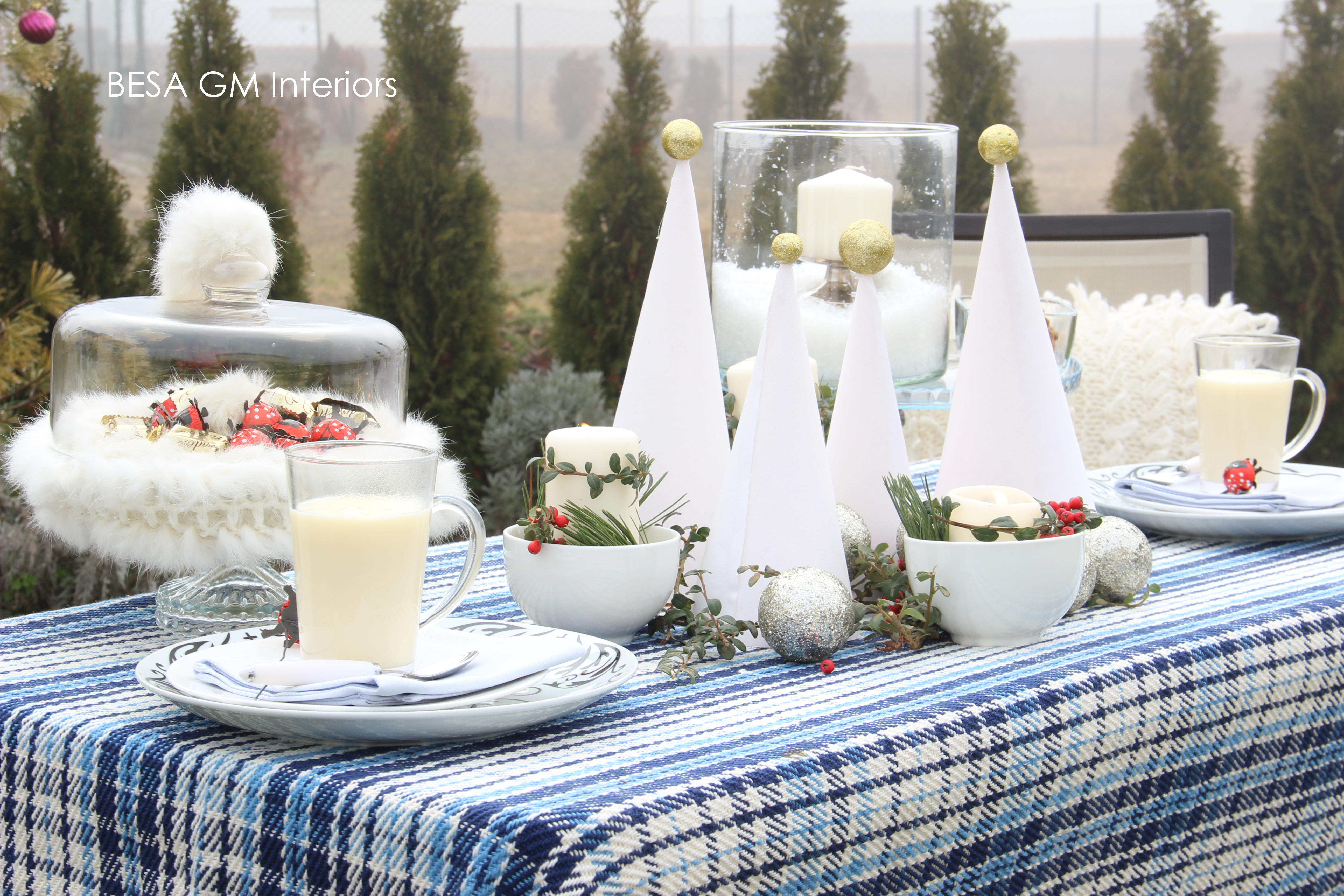 Si mbulese te tavolines e perdora nje plaf te holle pambuku me te kaltert te cilin e kisha blere enkas qe t’a perdorja si mbulese, dhe ne enet ne te cilat e sherbejme kosin ose fluskat e mengjezit, i futa qirinjet e bardhe. Enen e kekut e mbulova me nje copez gezofi te bardhe dhe siper vendosa disa qokolata te vogla, ndersa ne enen tjeter te kekut e vendosa nje tjeter qiri dhe xhenxhefil gurabit e mija te preferura. Si perfundim, cdo gje dukej shume dimerore dhe shik, keshtu qe une bera foto deri ne “pafundesi” dhe te cilat po i ndaj me ju.