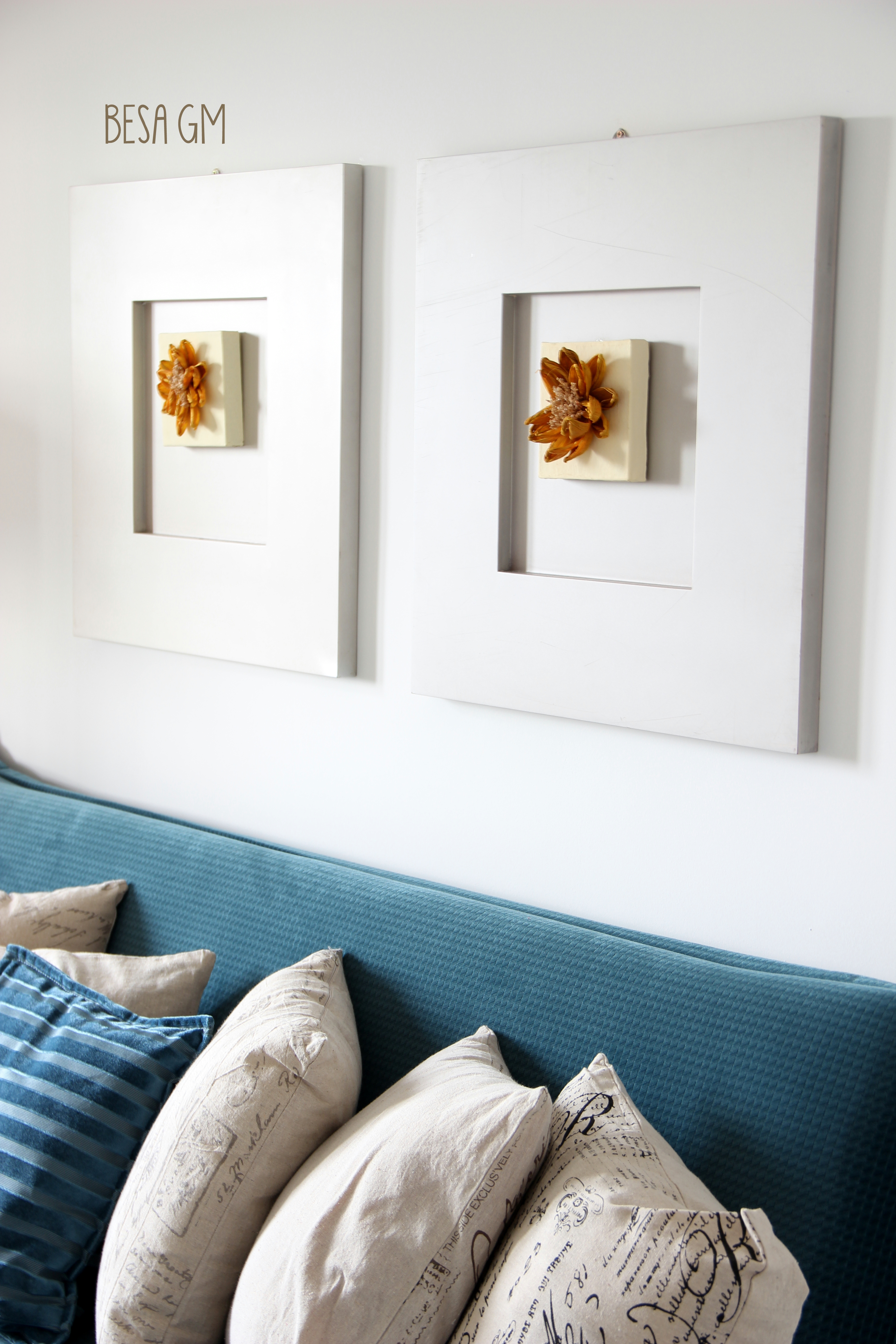 Two identical large frames with flowers in their centre added charm and personality to the room.