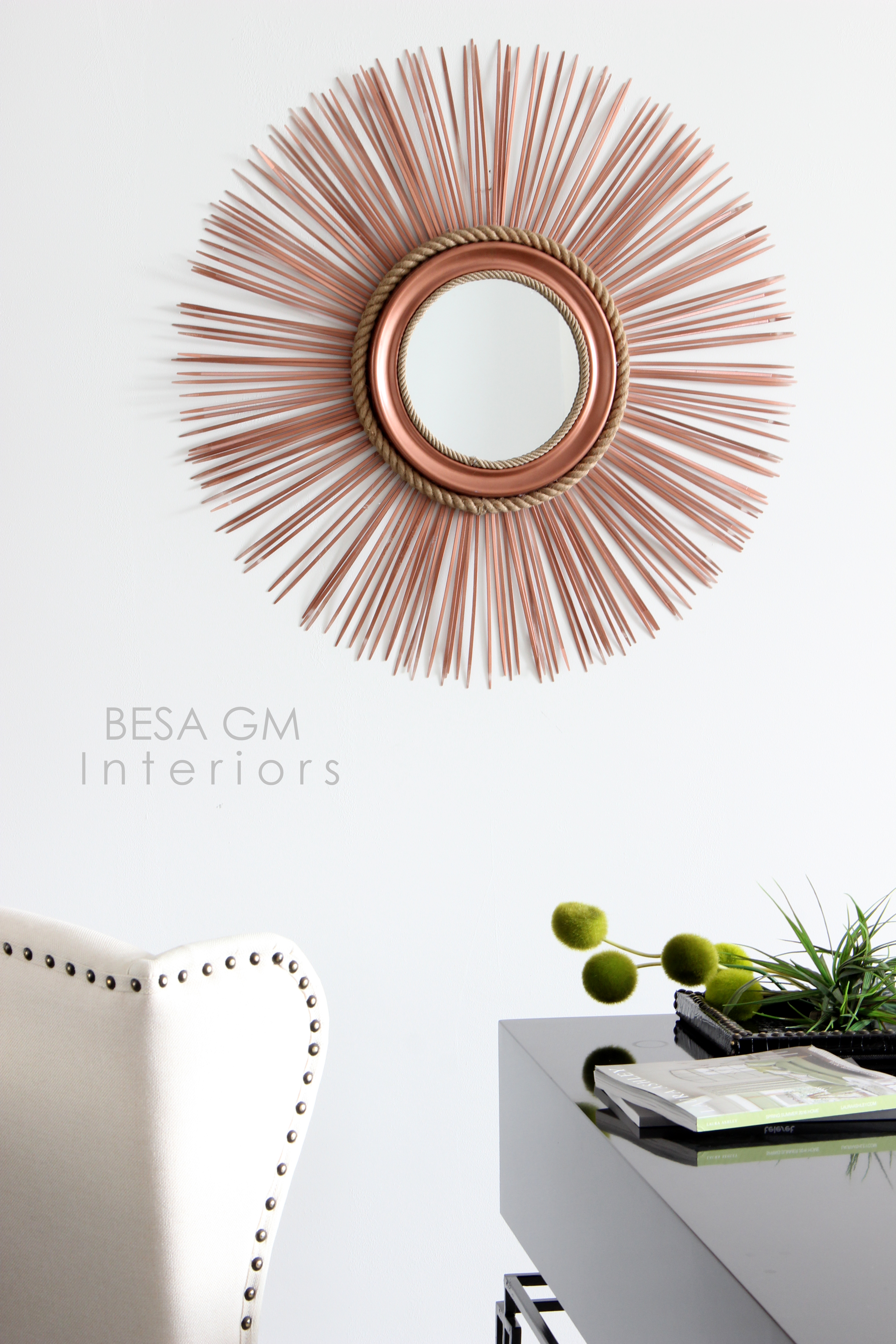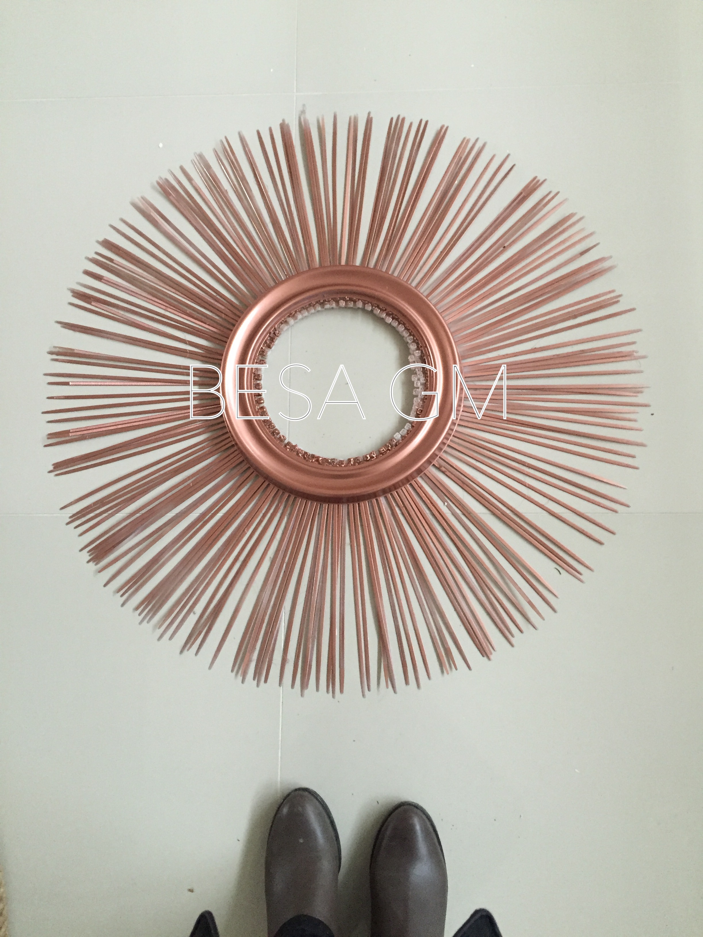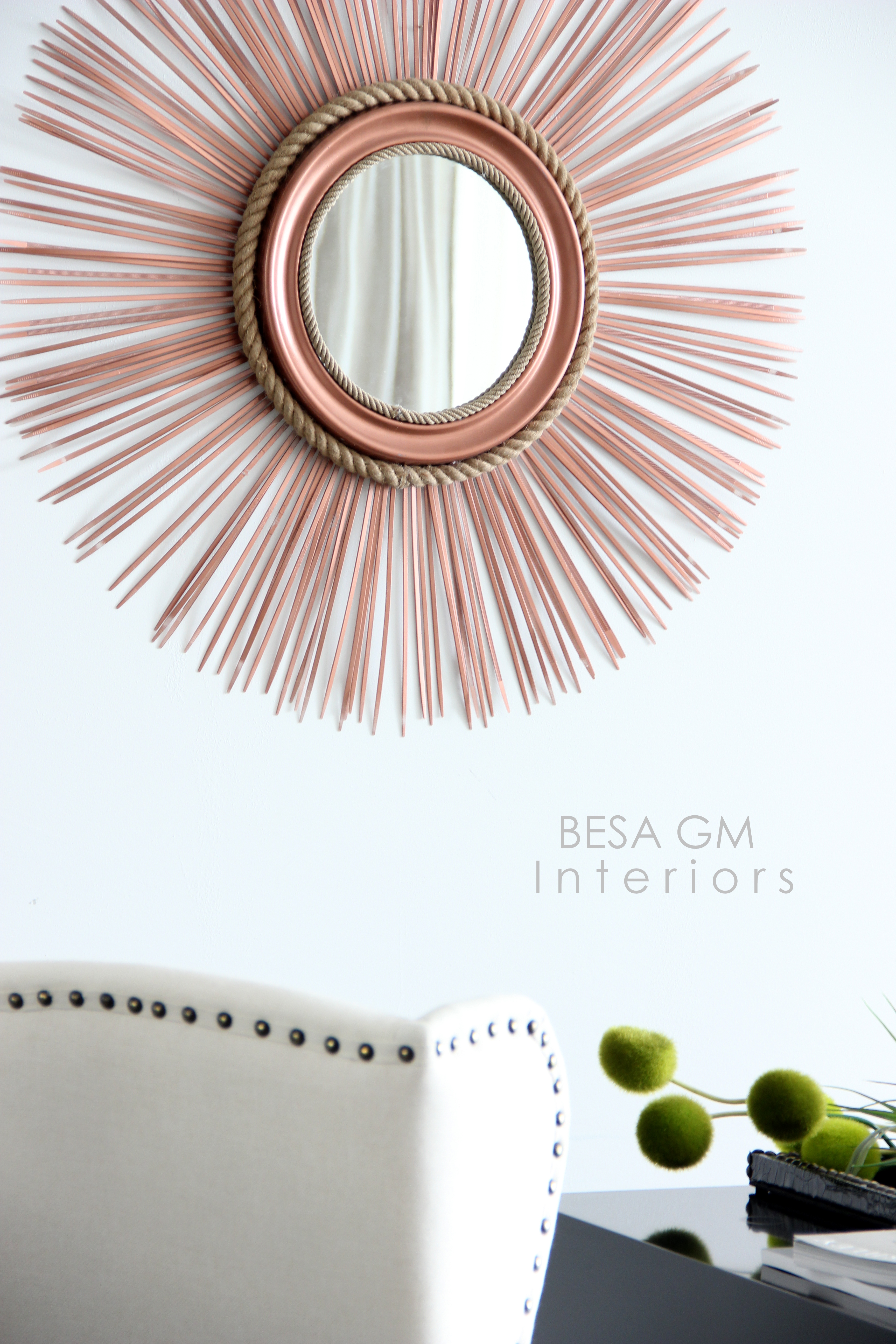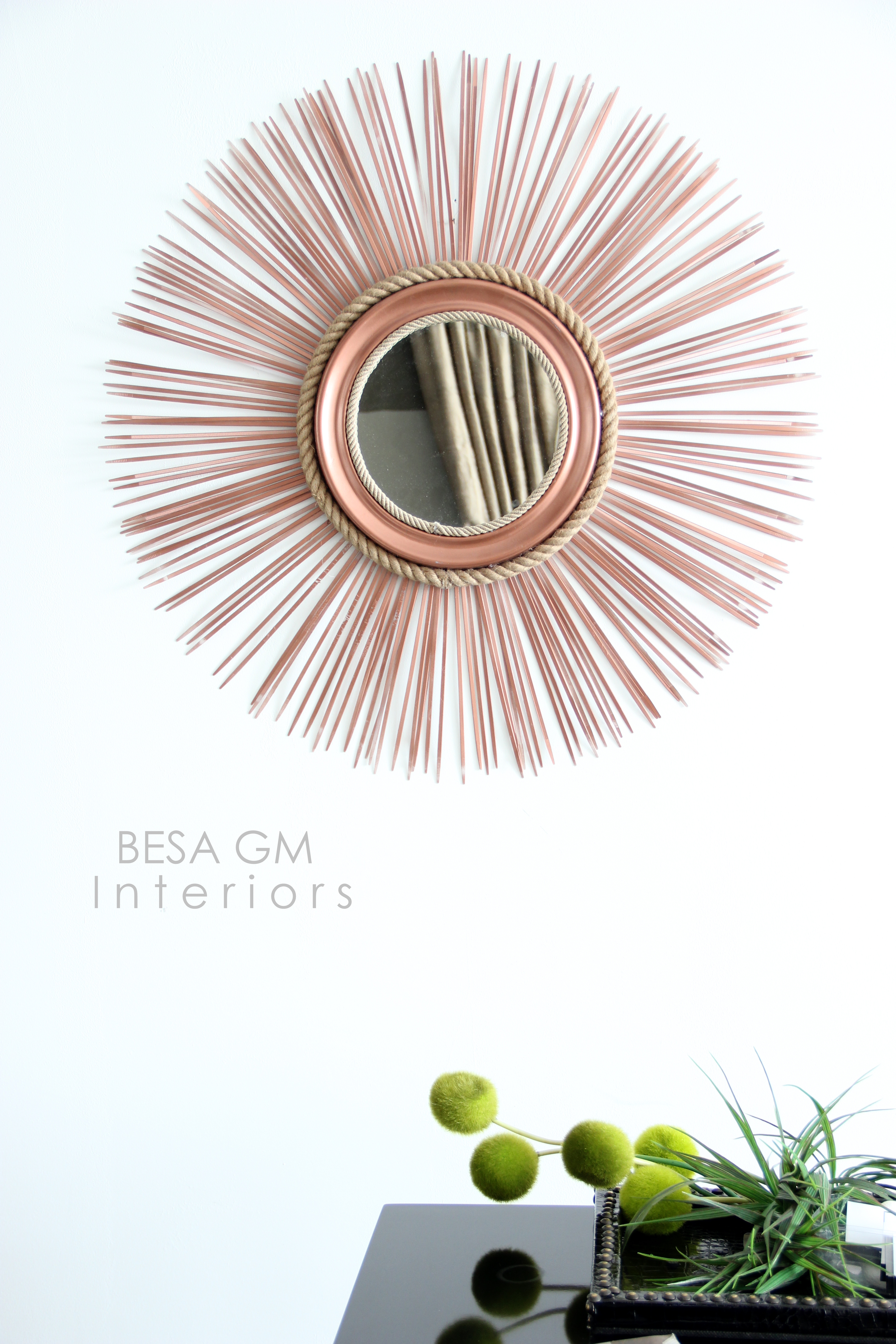 P.S. The DIY starburst mirror using rope and plastic ties also known as zip ties first appeared on BESA GM blog and it is my original idea, work and design. If using this idea please make a reference to this post. Thank you.
