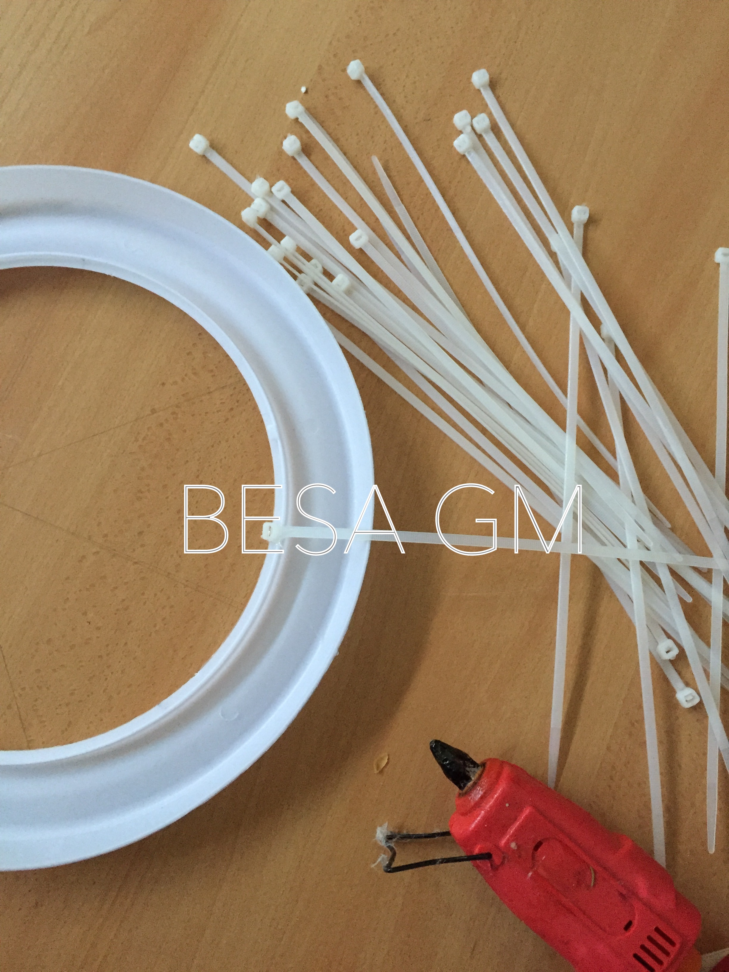 I was working on a project and I needed a starburst kind of mirror. Since it was impossible to find one in the area we live, I had to turn to my DIY skills and make one. However, I wanted to challenge myself during the process, and started looking for unusual materials for this project; so decided that the plastic zip ties would fit the definition of “unusual” in this case.