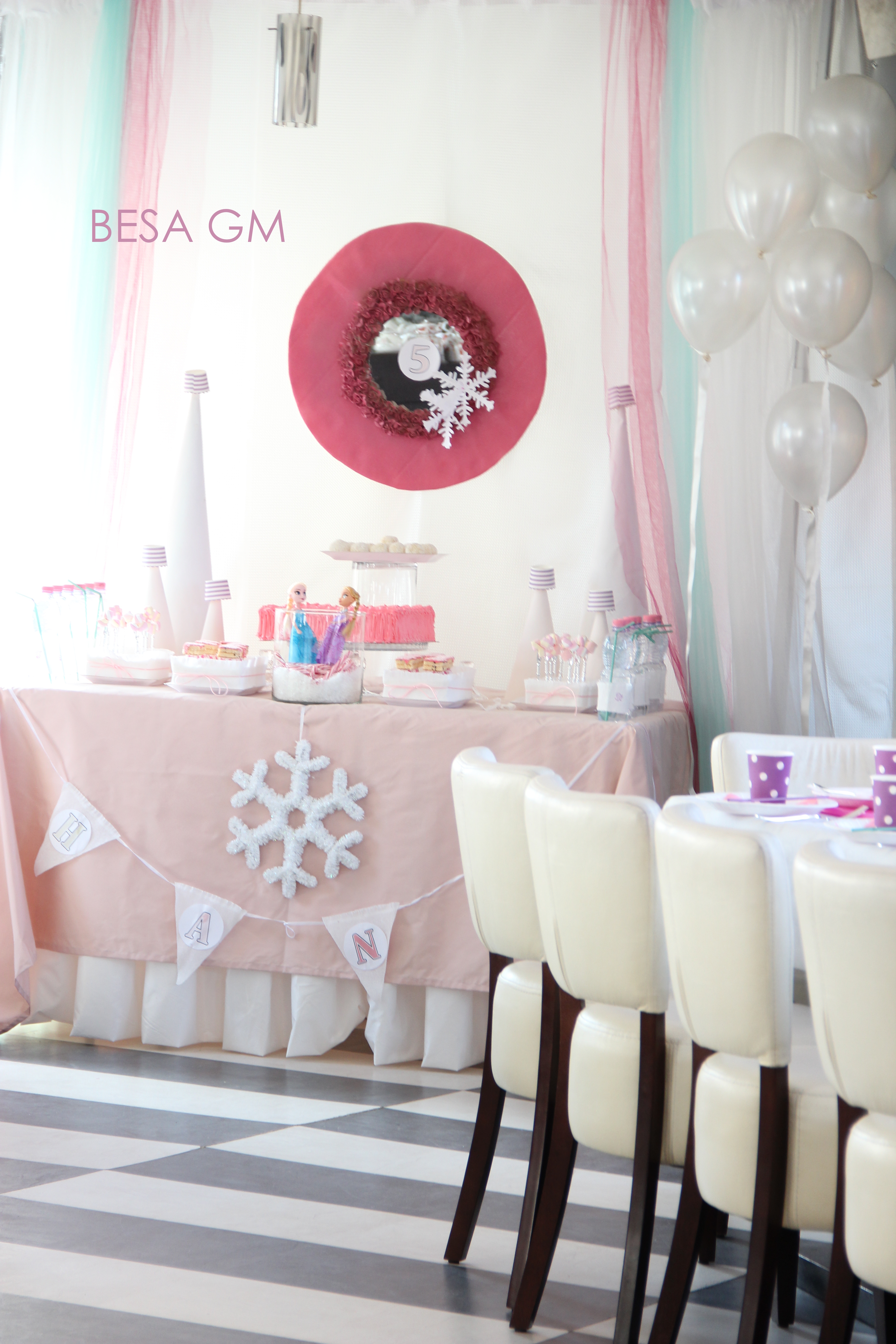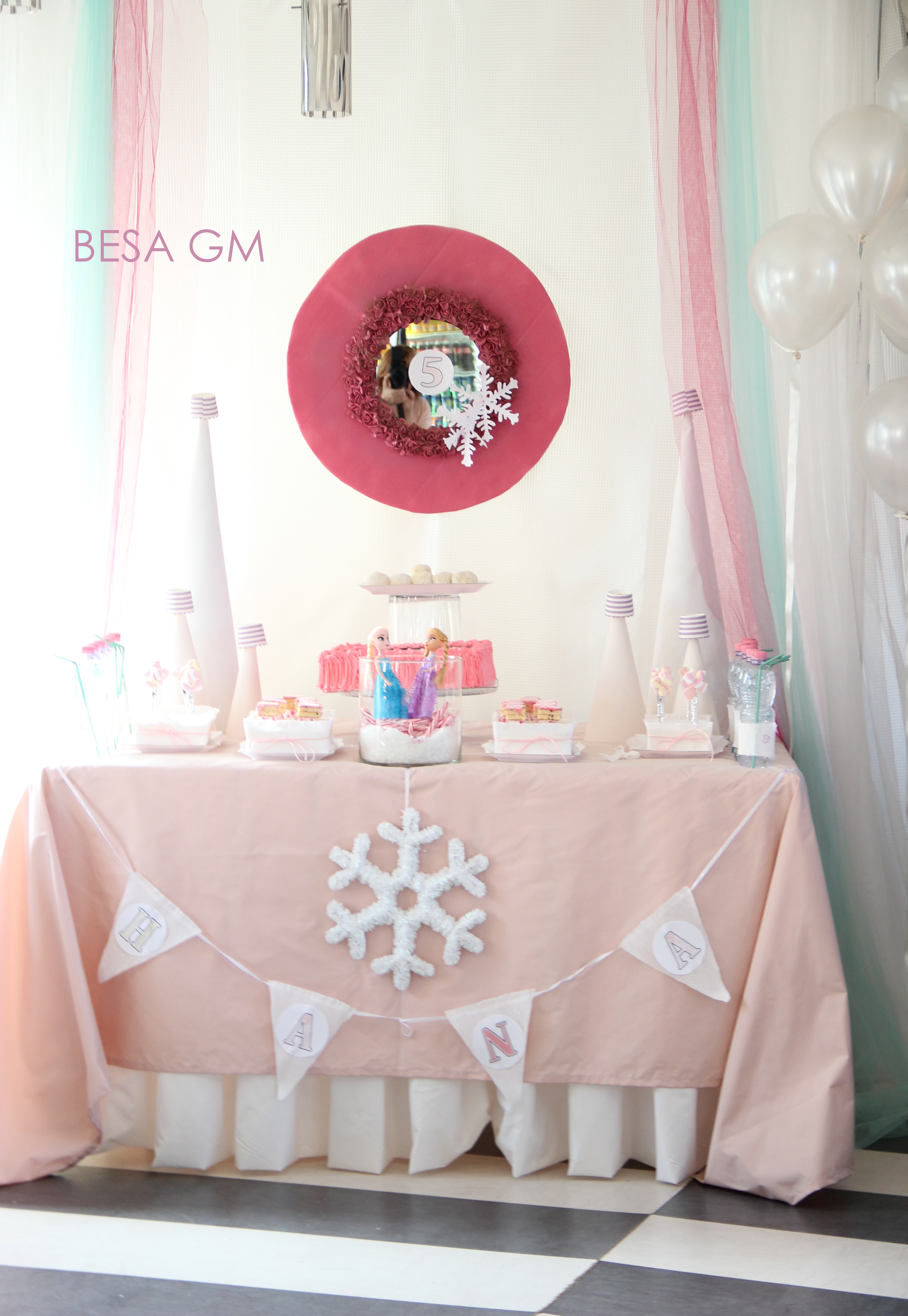 Nipesha ime simpatike Hana dje i mbushi plot pese vjet dhe ajo i admiron karakteret nga FROZEN -Annen dhe Elsen. Nena e saj dhe une deshiruam qe ti bejme suprize duke ja dekoru eventin e ditelindjes se saje me ngjyren e saje te preferuar ROZE, si dhe kukullat e saje te dashura Anna dhe Elsa. Si rezultat ne perfunduam me nje teme shume elegante te FROZEN ku dominoj ngjyra e preferuar roze, si dhe e gjithe tema u admirua nga vajza qe festonte si dhe te gjithe te vegjlit e ftuar.