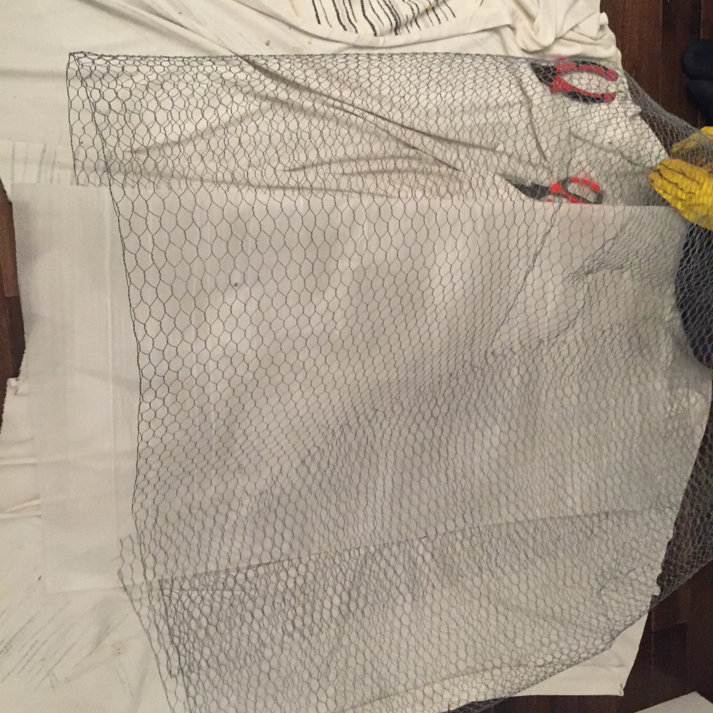 The upper part of the wire skirt was cut open to 50-60 cm slits on every 25-30 cm. Ends of each slit were put on top of one another making sort of darts.