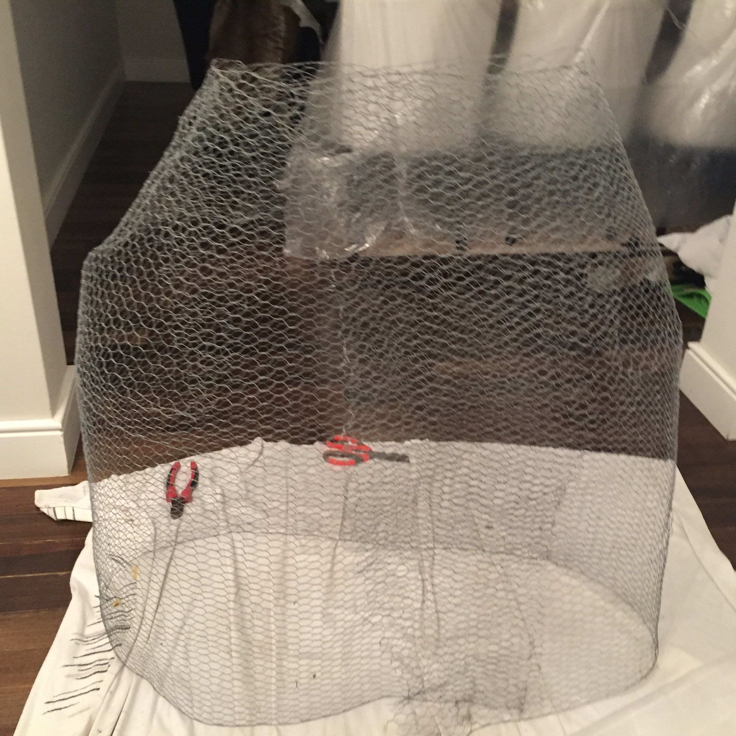 This step was done in order to take in the wire and make it fit for the waist line of the mannequin.
