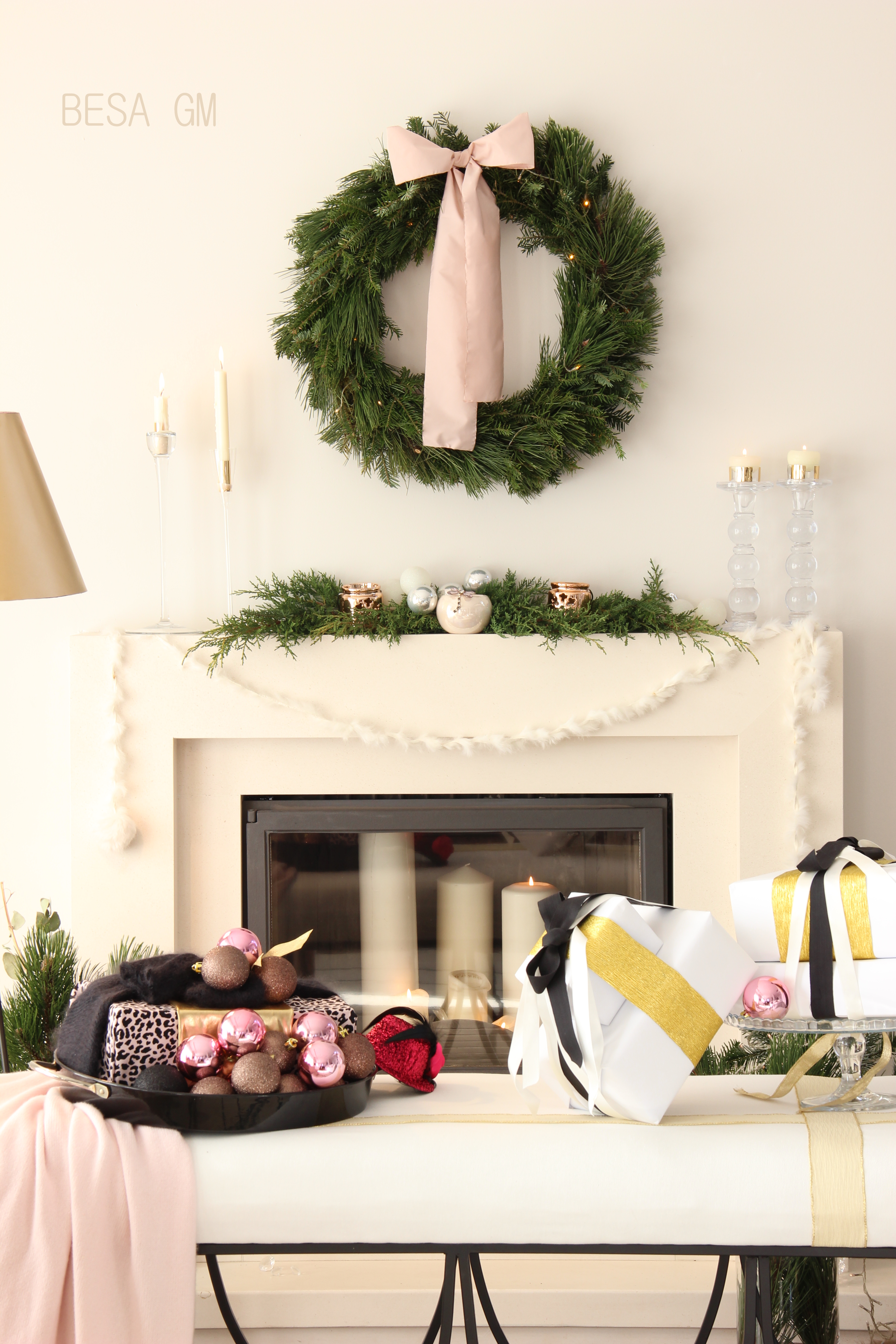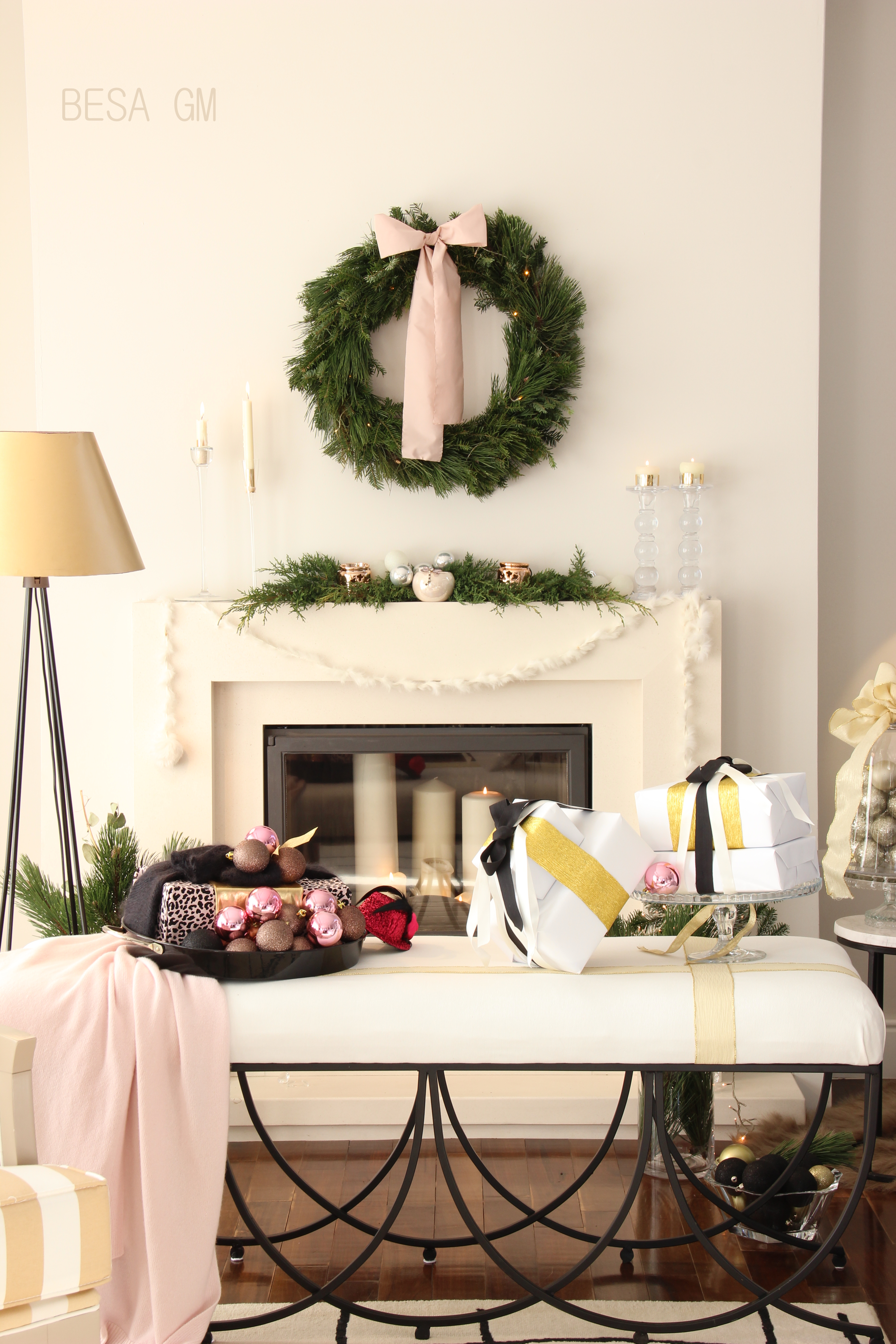 Per nje pamje dramatike, perpara kaminit vendosa ulesen ne form banke dhe siper saje vendosa dhuratat si dhe disa rnamente. Prapa bankes vendosa dia vazo qelqi te mbushura me dege te fesketa pishe sidhe nje llamp spot.