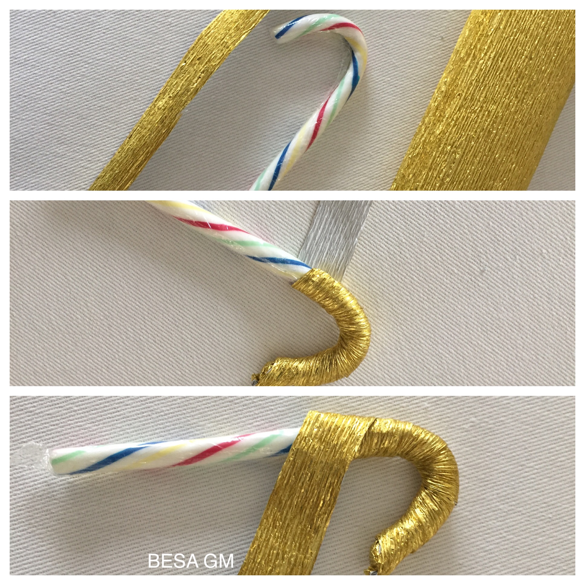 Ne vend qe te perdori unazat per salvetat e ushqimit, une thjeshte i lidha ato me nje shirit te shkurter pambuku te zi dhe siper tyre vendosa nje sheqerke ne forme shkopi te cilen poashtu e mbeshtolla me leter dekoruese metalike.