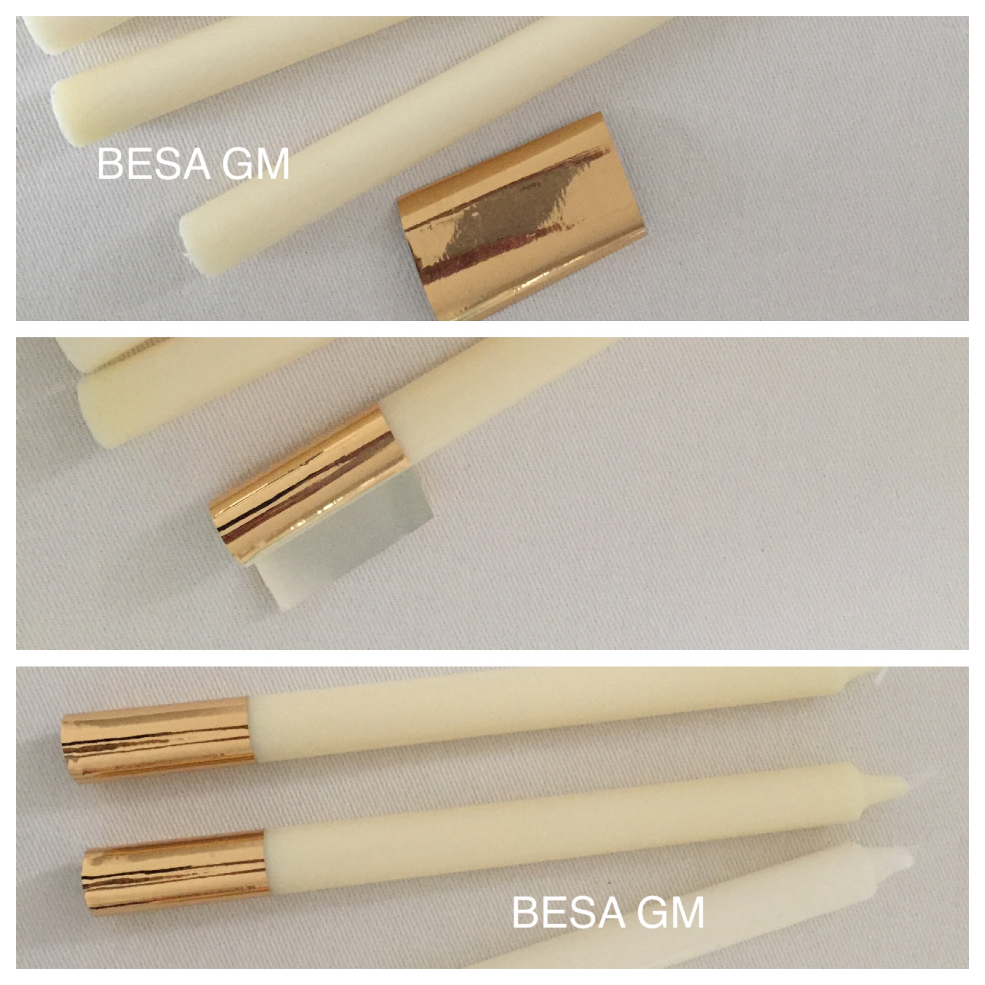 Dukja e qirinjeve gjithashtu ka te involvuar metoden Beje Vet (DIY). Deshiroja qe qirinjet e bardhe te kishin pake shkelqim ngjyre ari, andaj edhe e mbeshtolla pjesen e poshtme te qiriut me nje folie ngjitese ngjyre ari, dhe krijova nje dizajn vertete unik te qirinjve.