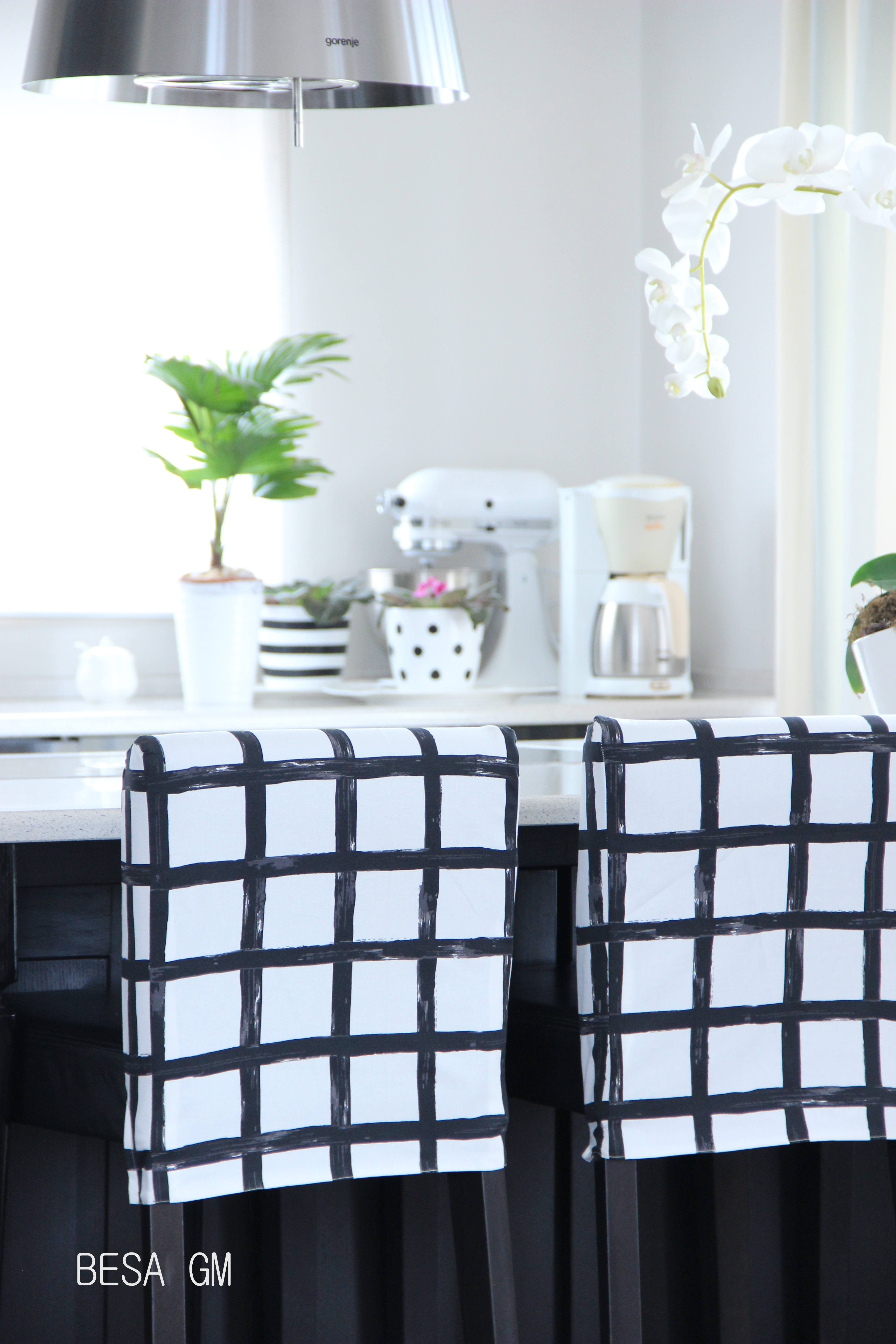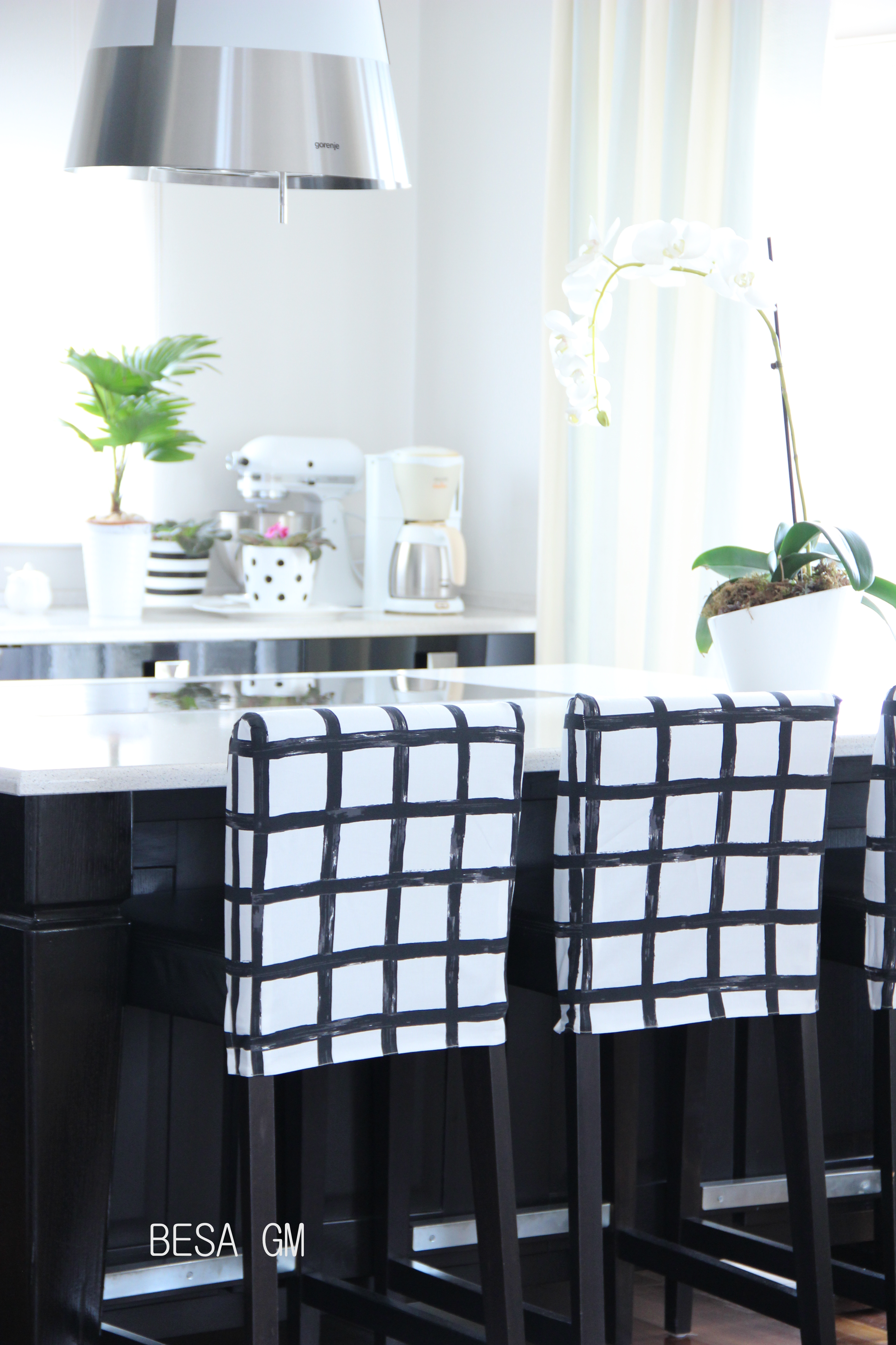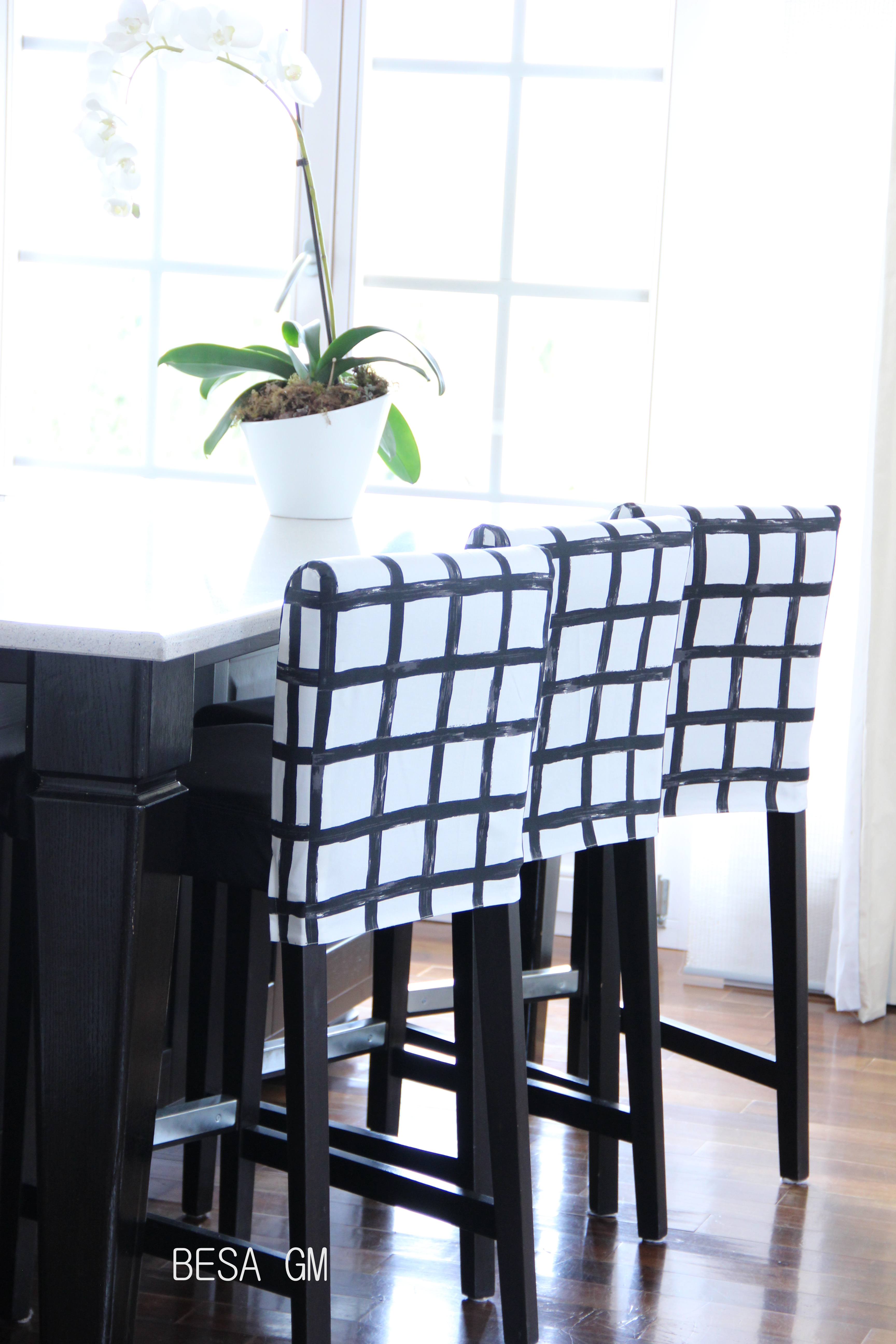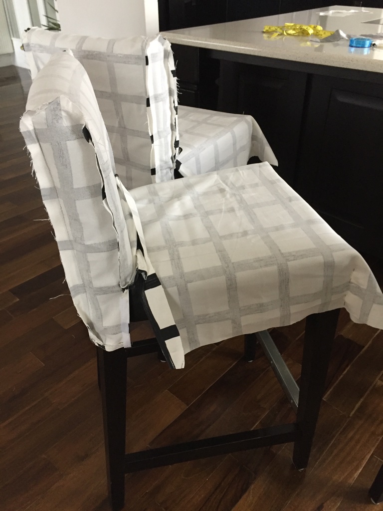 To make slipcovers I used pin fit method for each stool, and then I sew them together. They came perfect and really brought a new vibe to my kitchen.