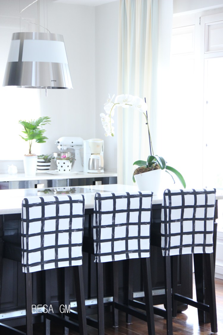 I came up with a solution; making separate slipcovers for my leather kitchen stools. I made separate slipcovers for the backs and the seats of the stools. I will be using slipcovers for the backs most of the times and, depending on the mood, i will be using those for the seats also.