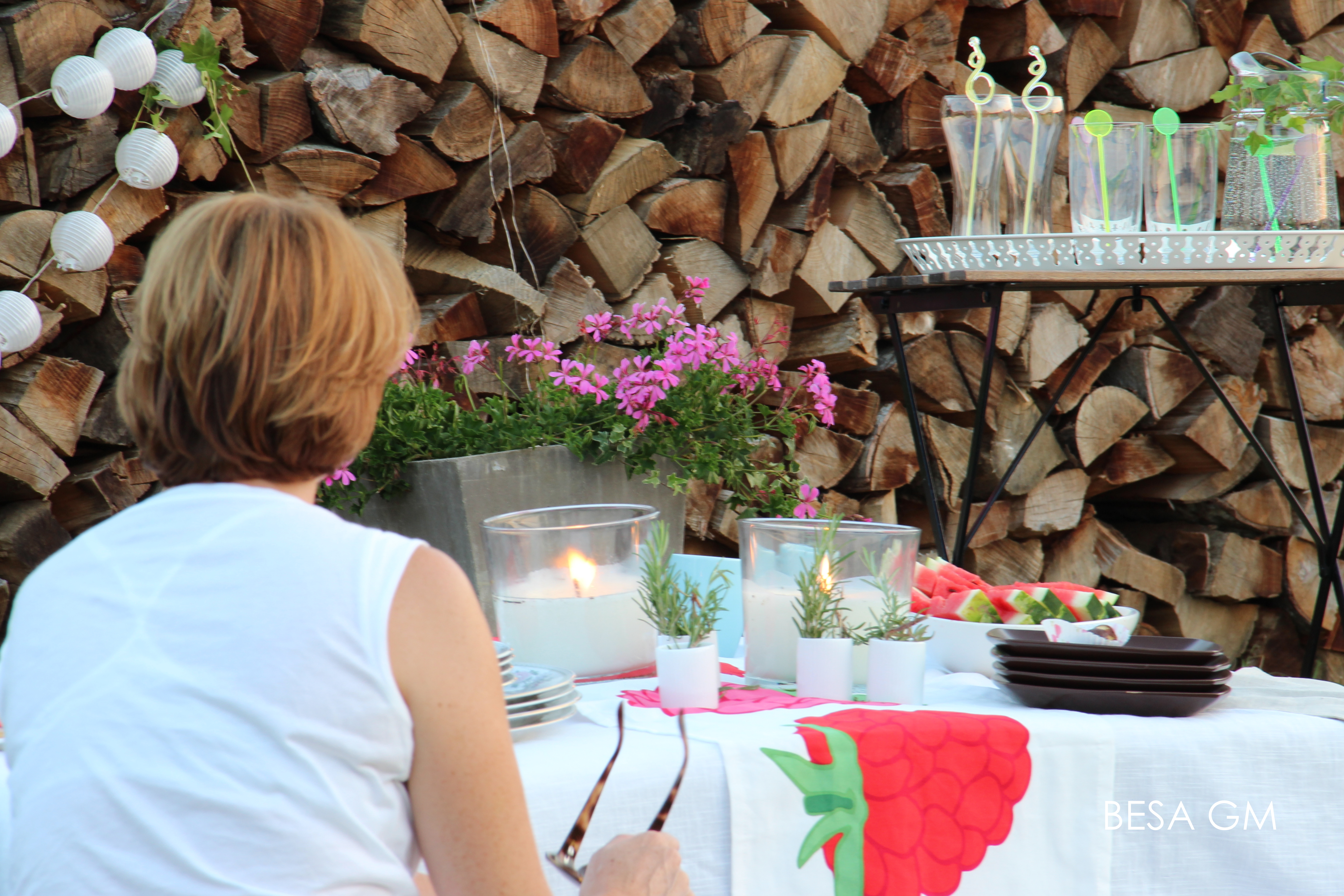 Fill a vase with your favourite flowers and serve up a batch of your favourite drink in a cool carafe. Put a string of solar lights, just in case you will stay longer until it gets dark.