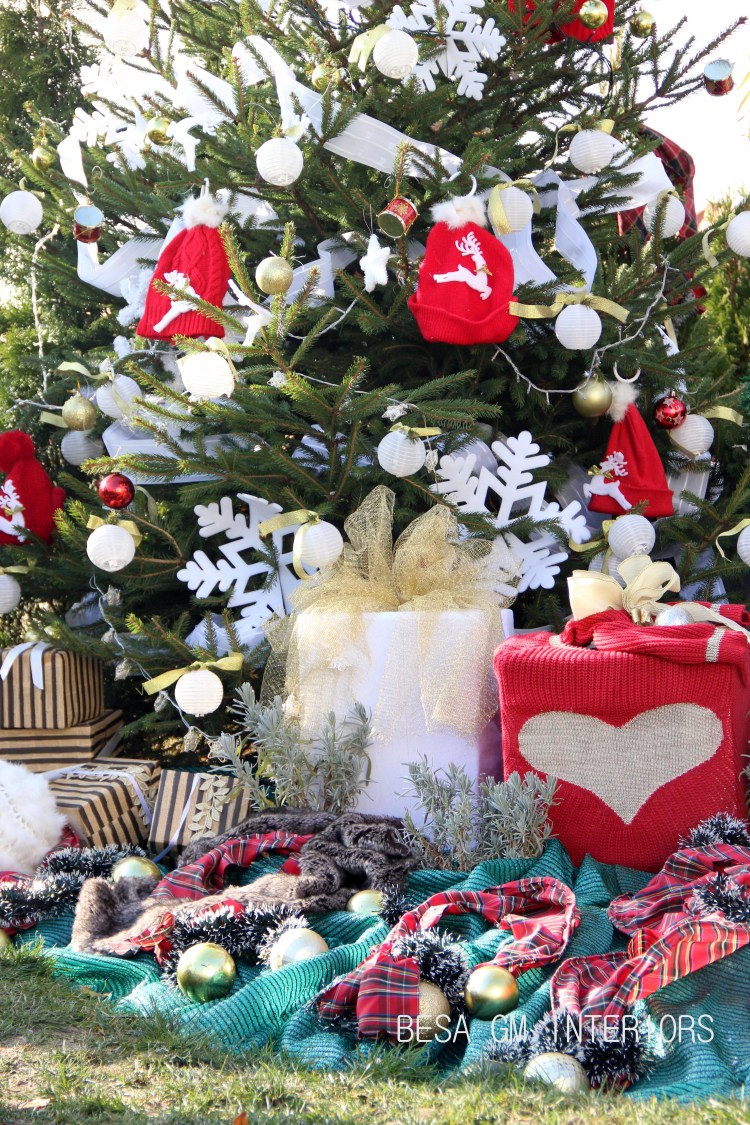 So my friends, this is how I came up with the decorating theme for my outdoor Christmas tree. I thought that knitted hats for outside decor make sense. They reflect warmth and relaxation, just what we need during a Holiday season.