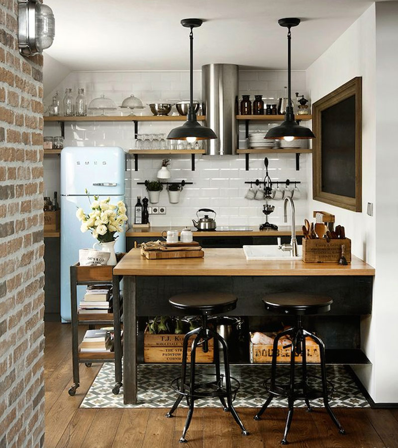 Poashtu, eshte karakteristike edhe perdorimi i rafteve te ndryshme nga metali, kryesisht me pamje te vrazhde, te paperpunuar.