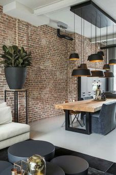 Stili industrial karakterizohet me perdorimin e materialeve te paperpunuara si dhe inkorporimin e siperfaqeve te zhveshura ne dizajn.