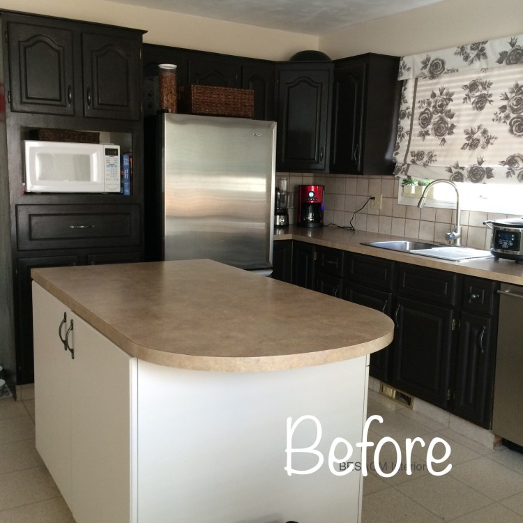 My sister’s kitchen is an old builder grade kitchen of a good quality. Originally, it was an oak kitchen or a wood stained in oak finish which 10 or 15 years ago everyone who had one of those kitchens started hating its colour, my sister being among the first ones.