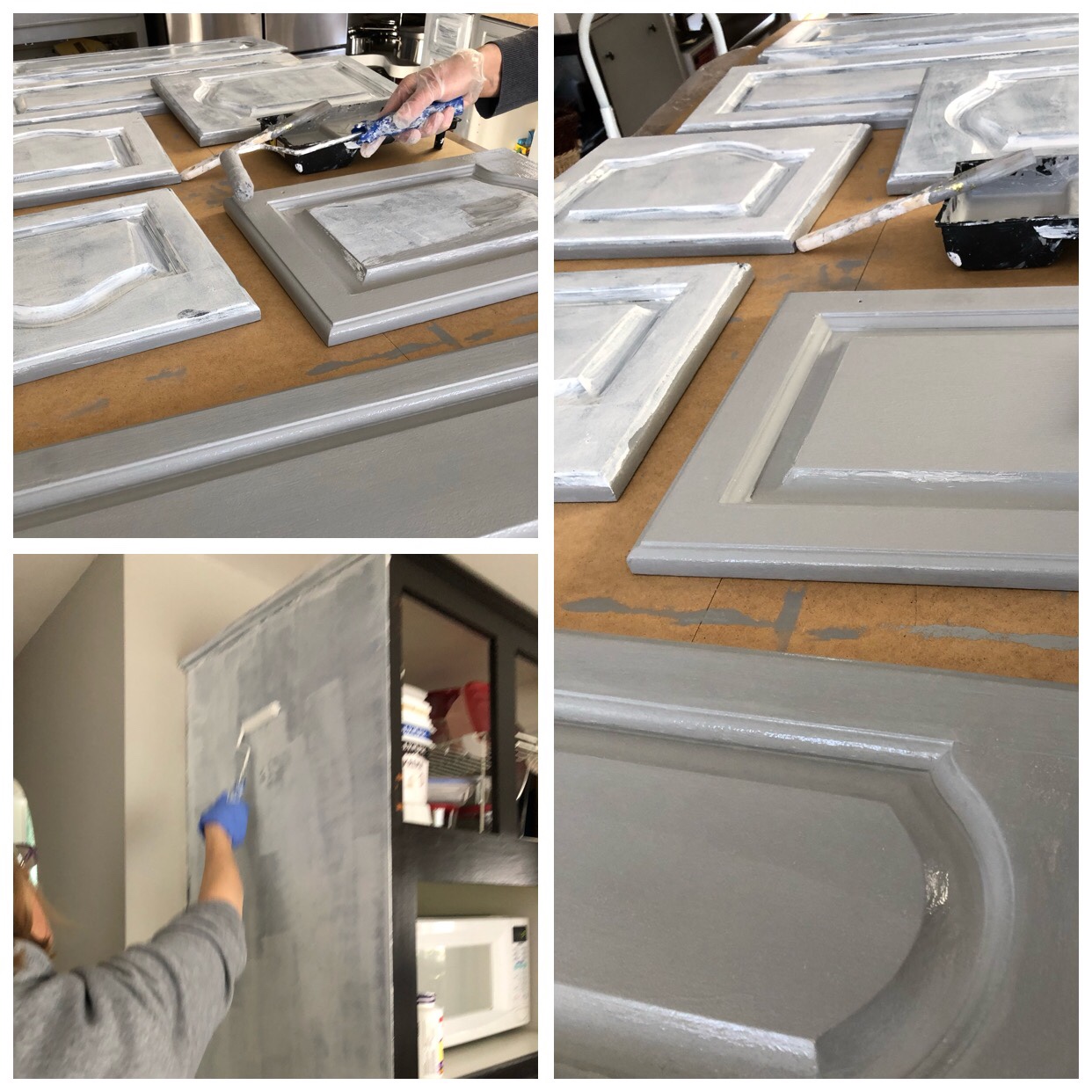 My sister did the painting of the kitchen cabinets. My brother in law and nephew helped with unscrewing the hinges from the cabinet doors, and this step really helped for an even application of one coat of primer and two coats of paint. At the time we did the painting, the weather outside was most of the time cold so most of the paint job was done in the kitchen.